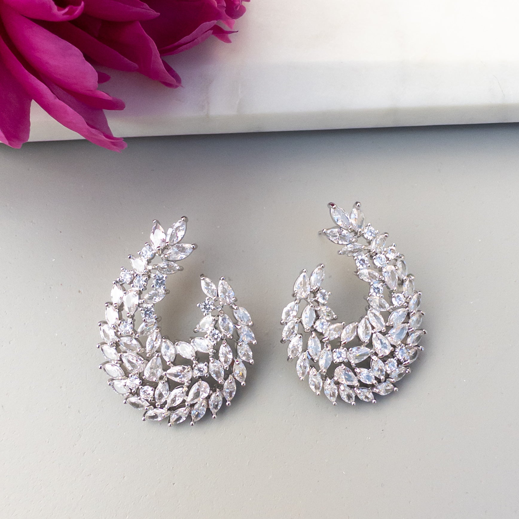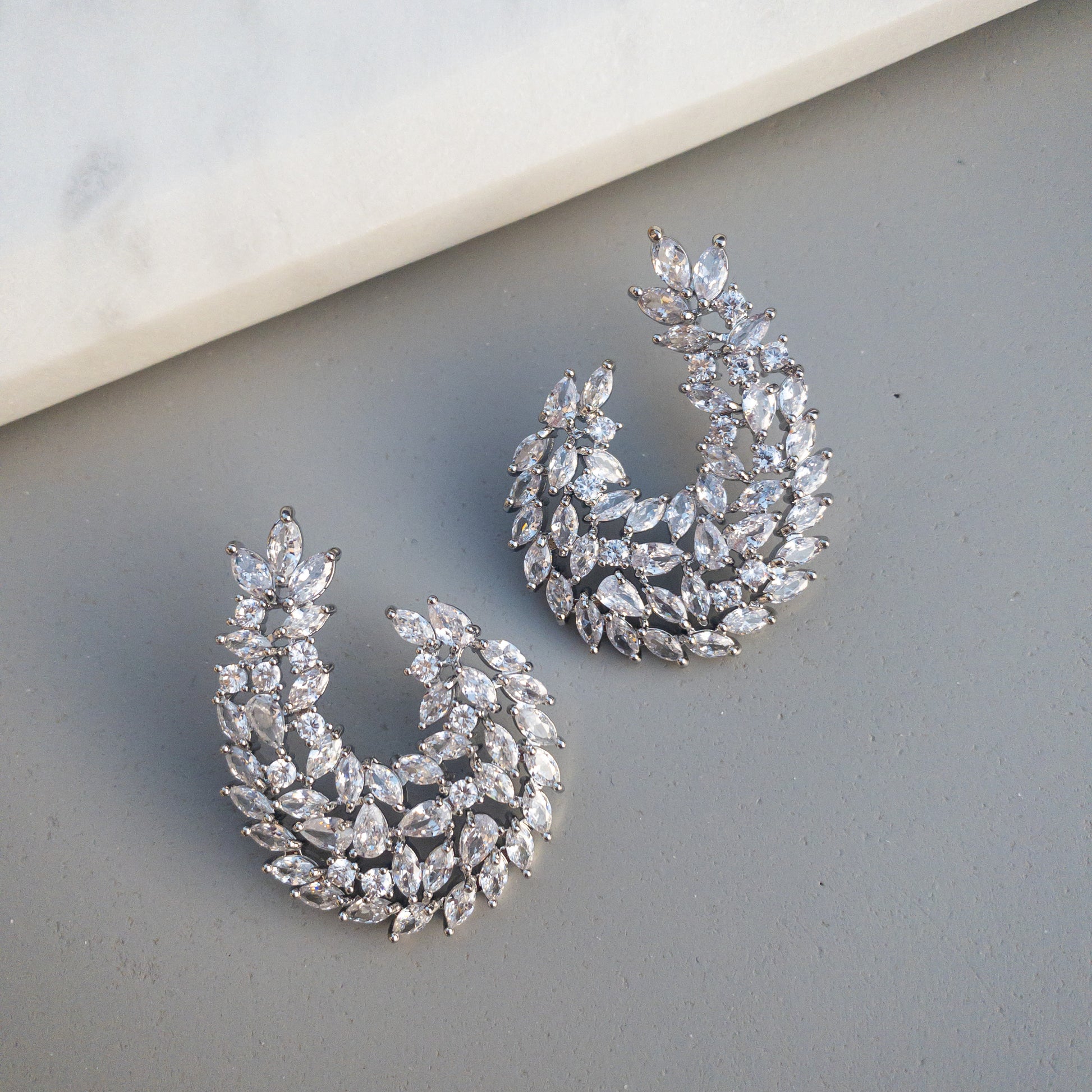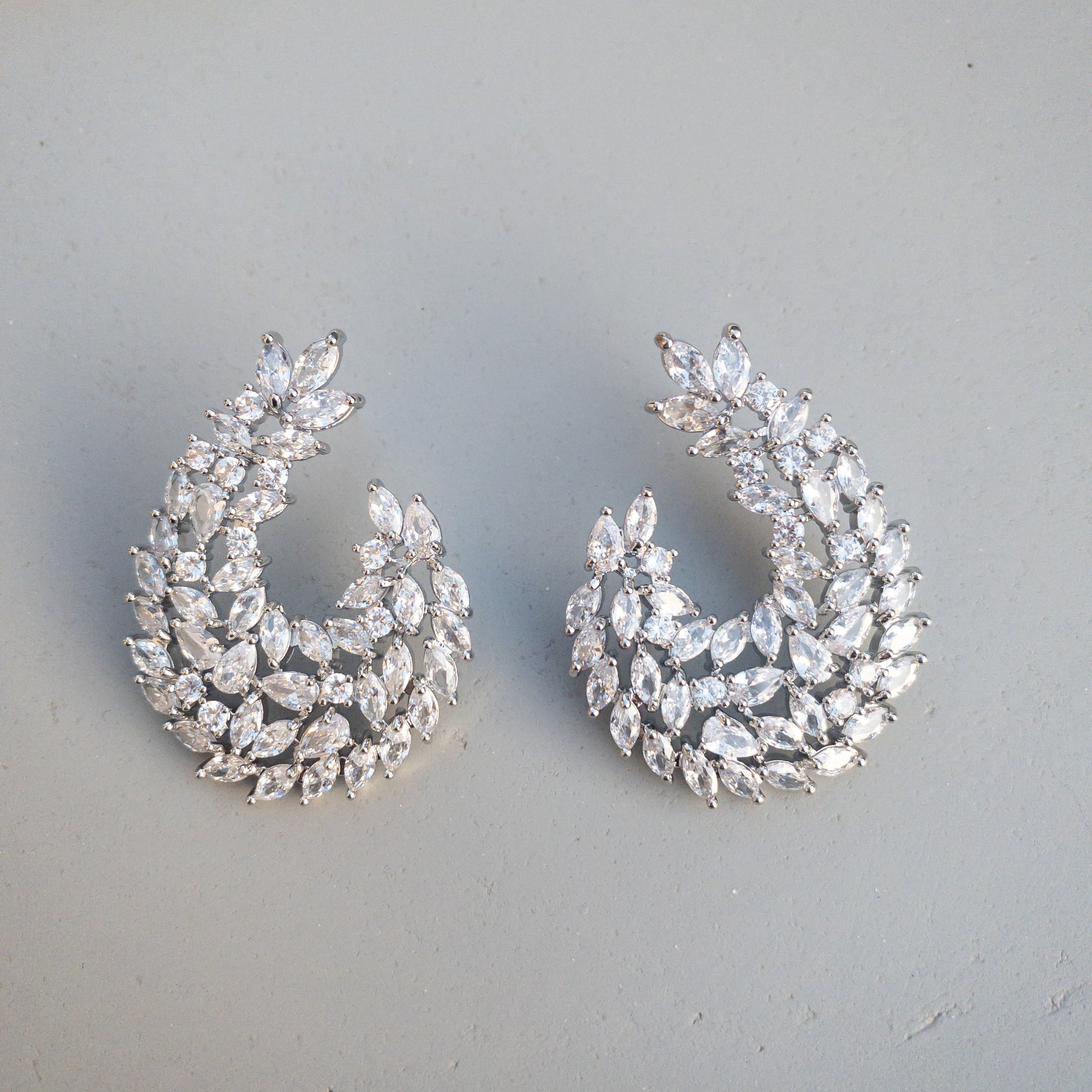 - Cercei fabricati din metal, placati cu rodiu,cu cristale de zirconiu aplicate.
