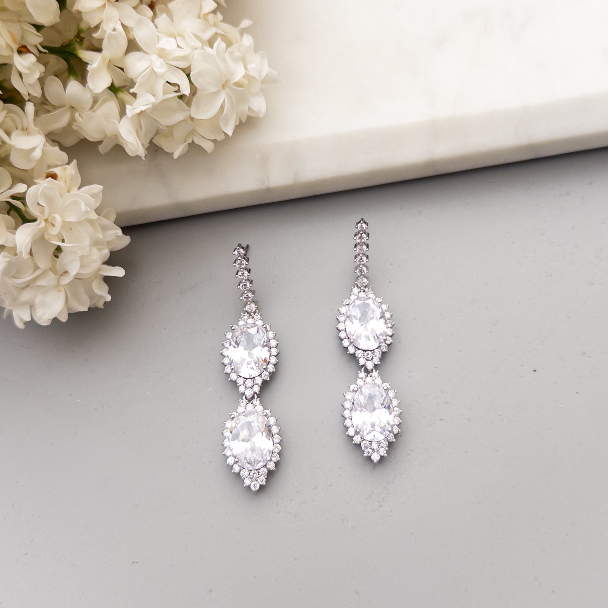 - Cercei fabricati din oțel inoxidabil, placati cu rodiu, cu cristale de zirconiu aplicate.