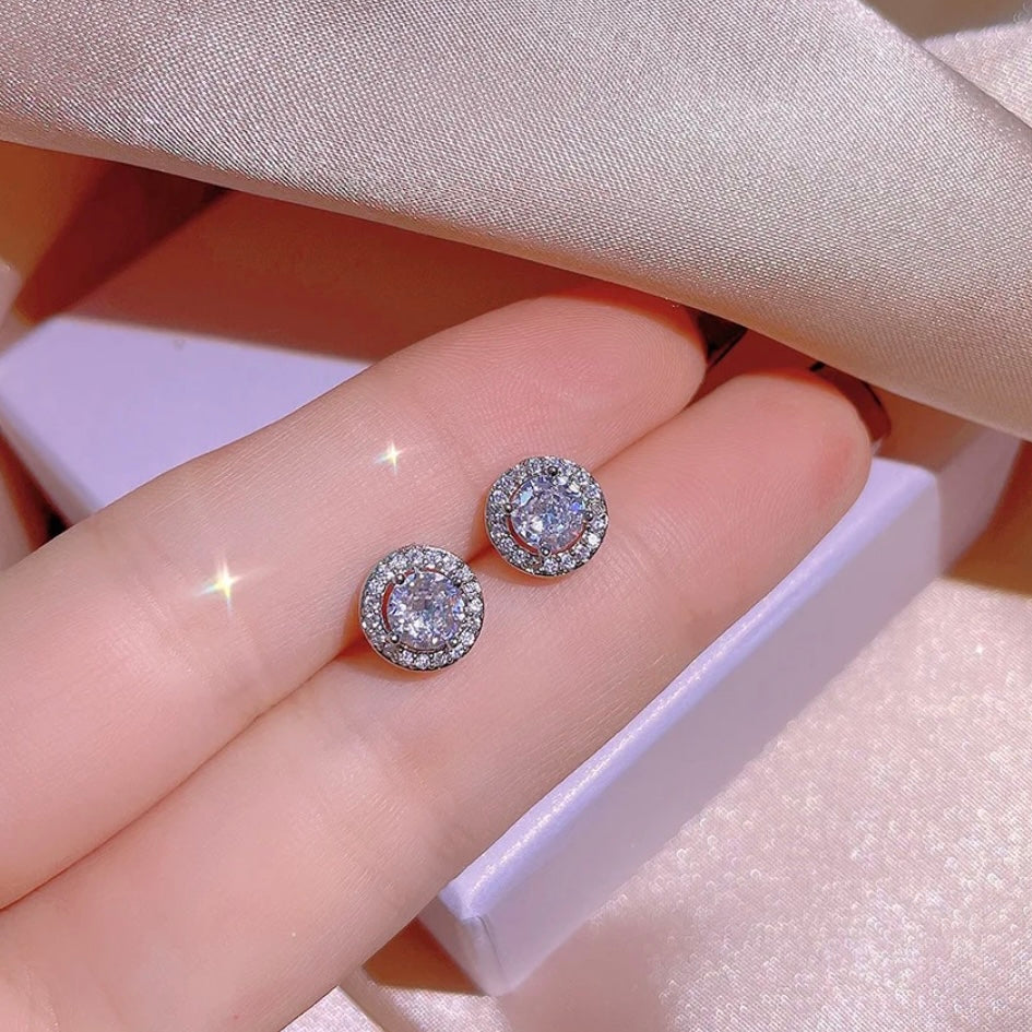 - Cercei fabricati din cupru, placat cu rodiu, cu cristale de zirconiu aplicate.
