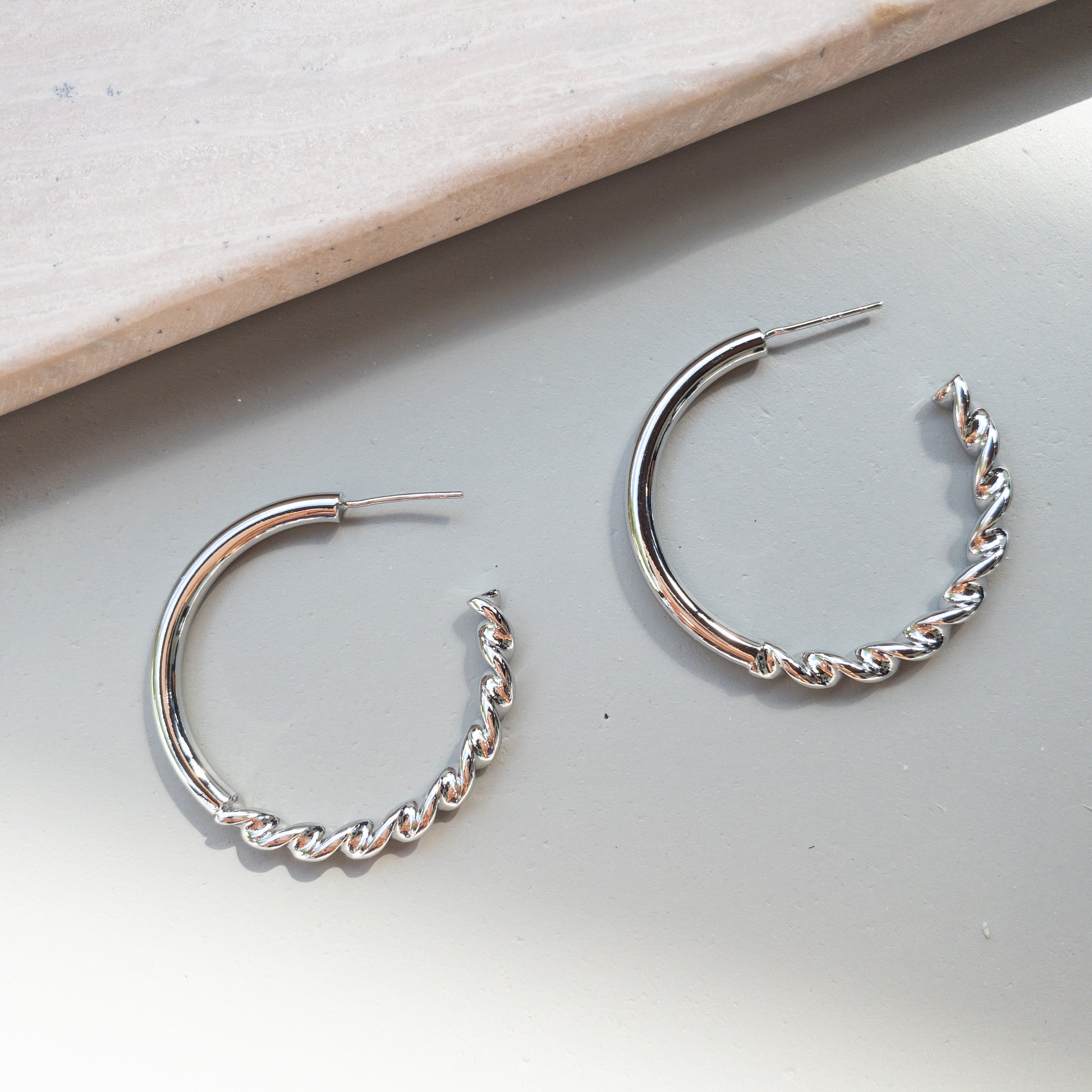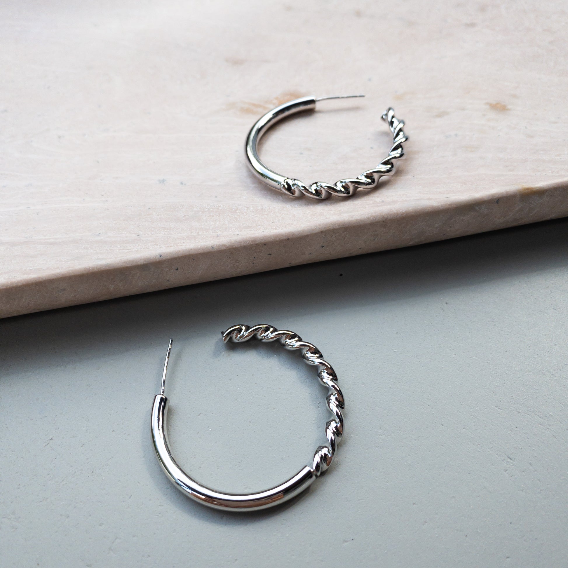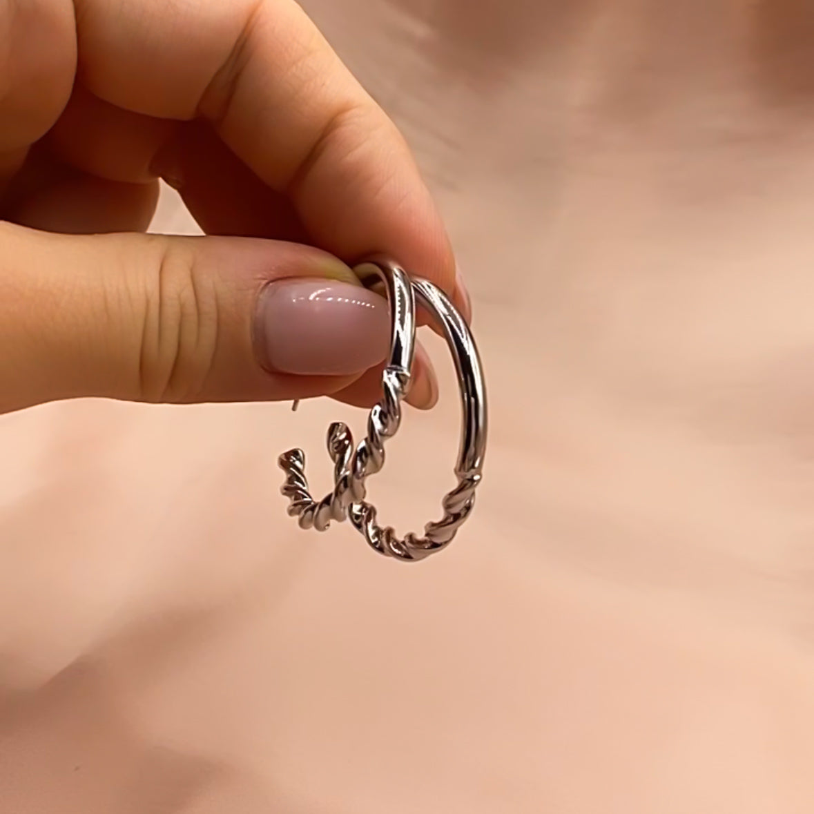 - Cercei fabricati din cupru, placat cu rodiu, cu tija din argint.