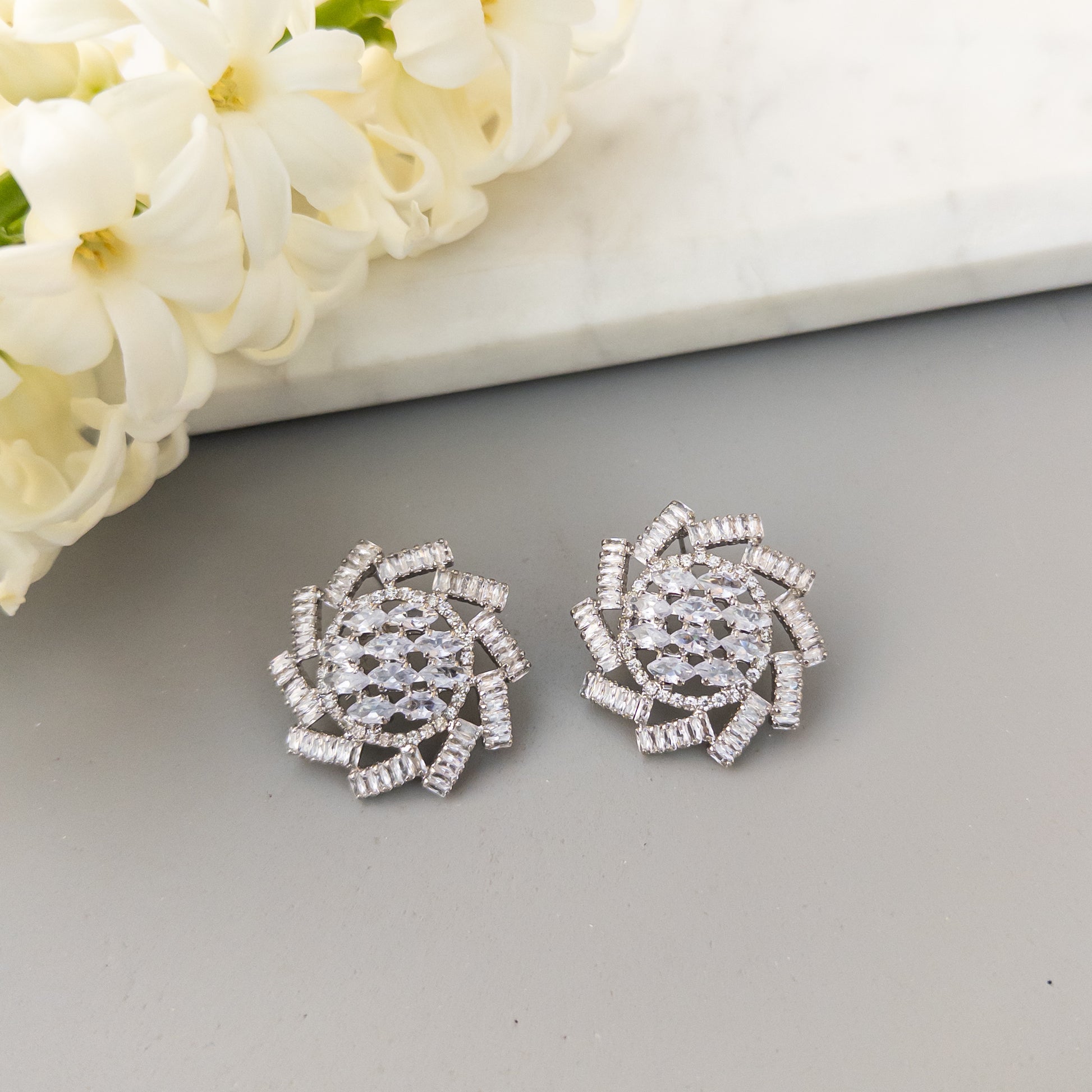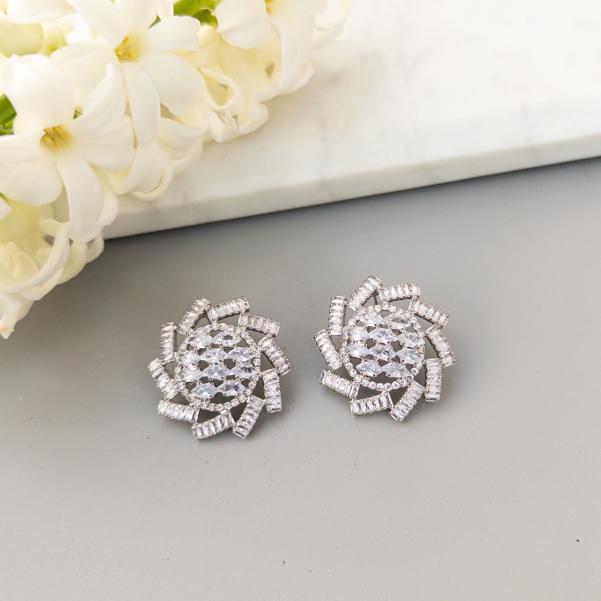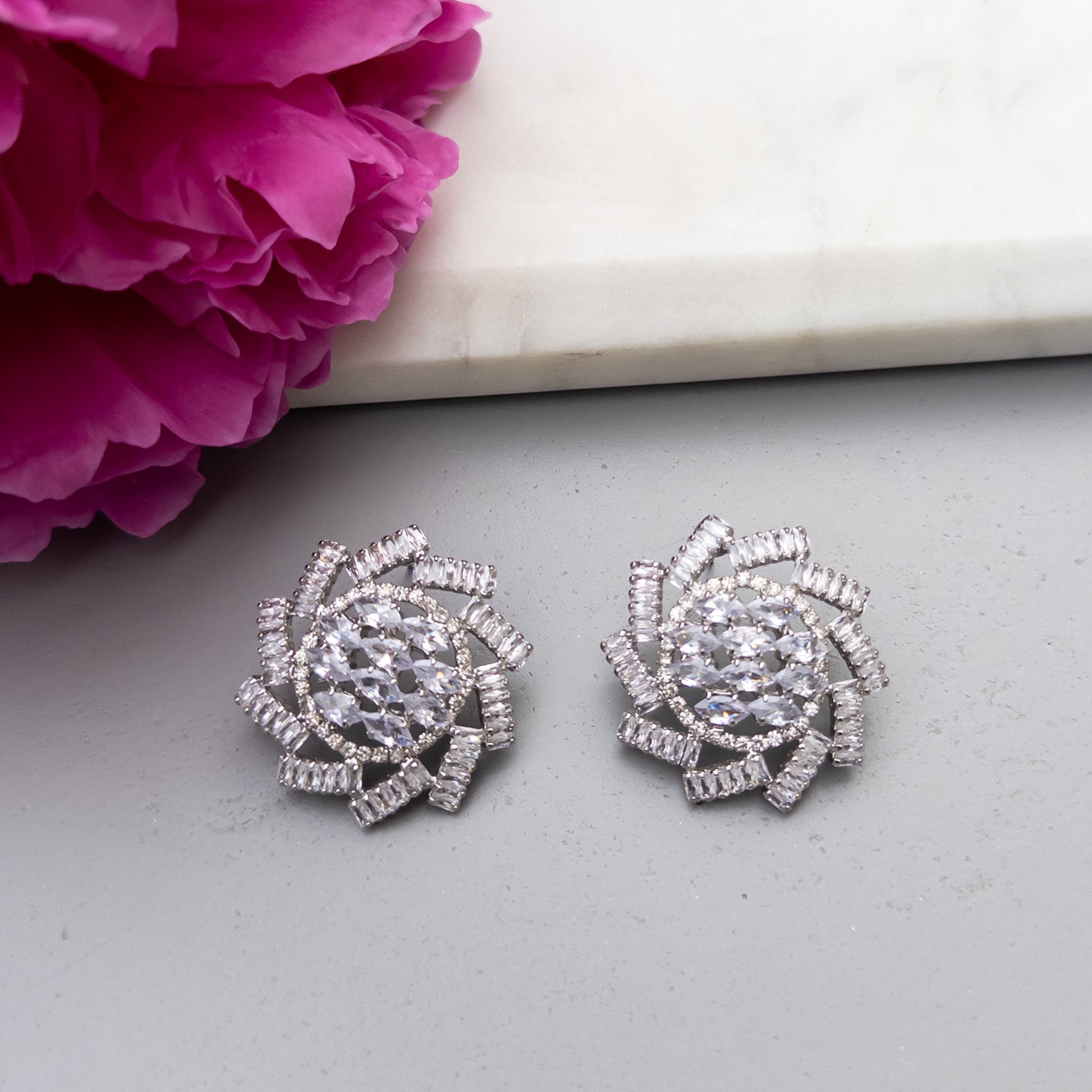 - Cercei fabricati din oțel inoxidabil, placat cu rodiu, cu cristale de zirconiu aplicate.