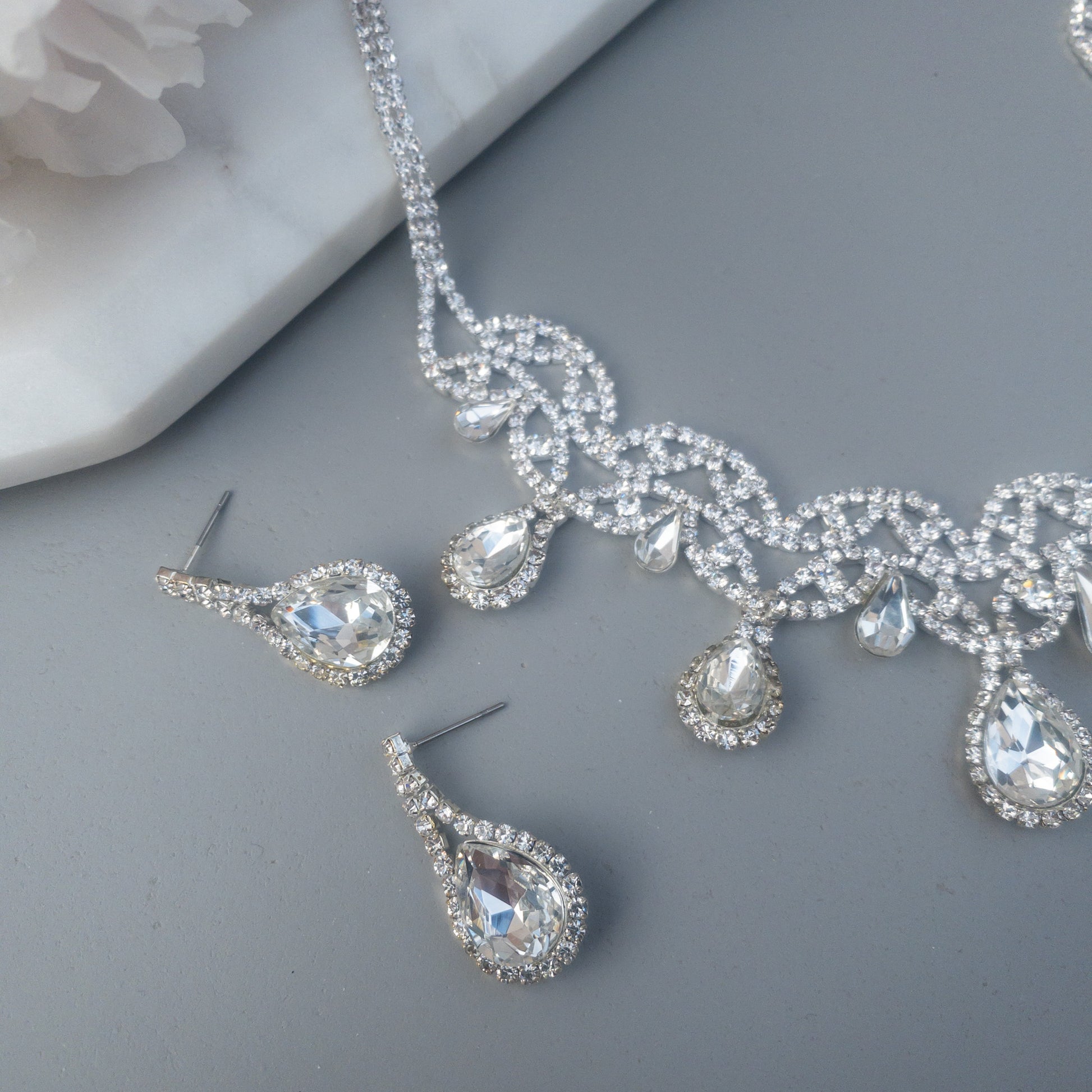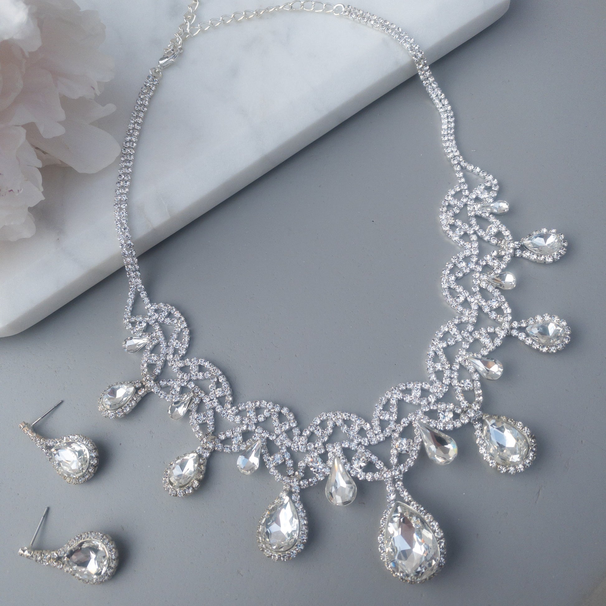 - Colier și cercei fabricati din metal, cu cristale de sticla aplicate.