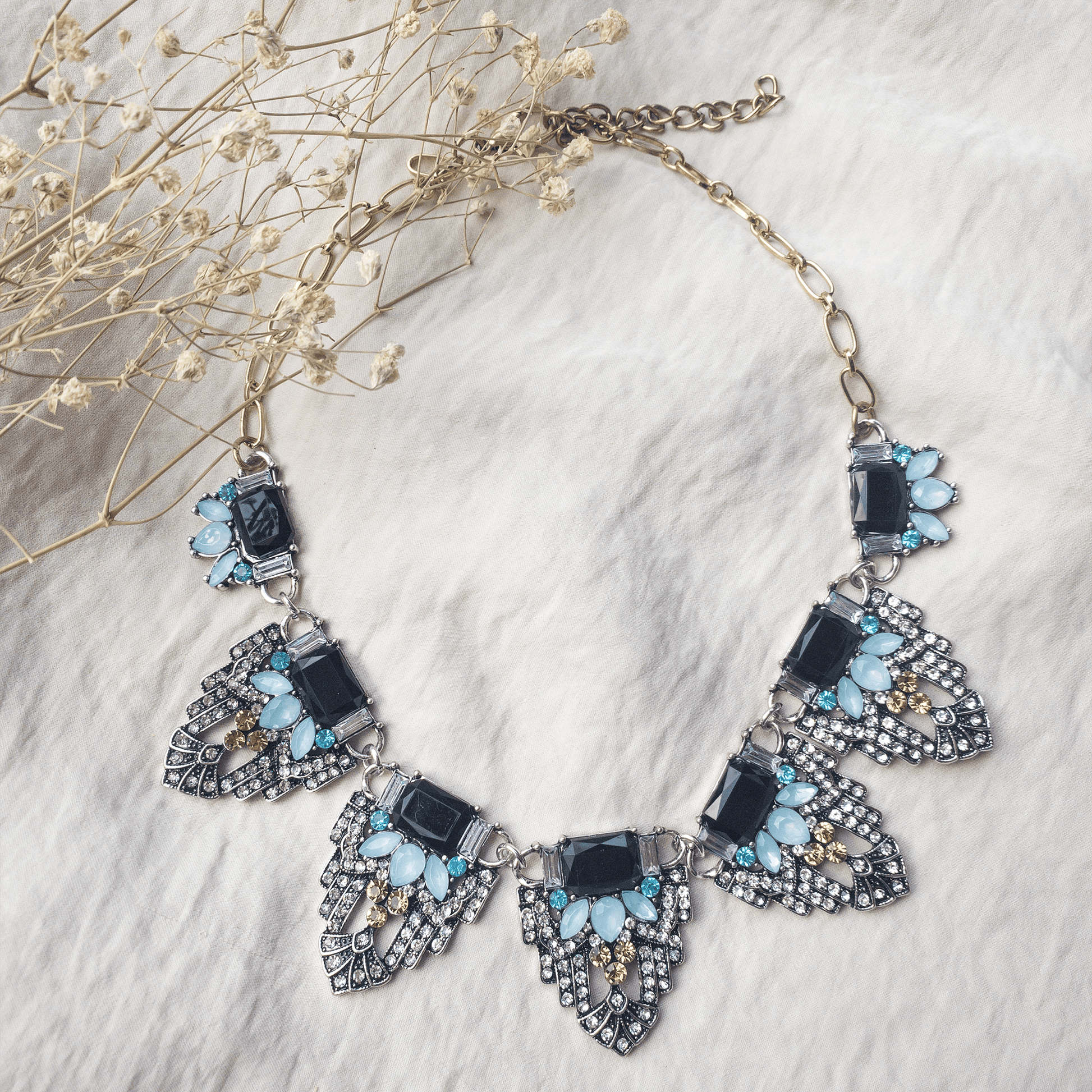 - Colier fabricat din metal, cu cristale de sticla aplicate, aliaj zinc.