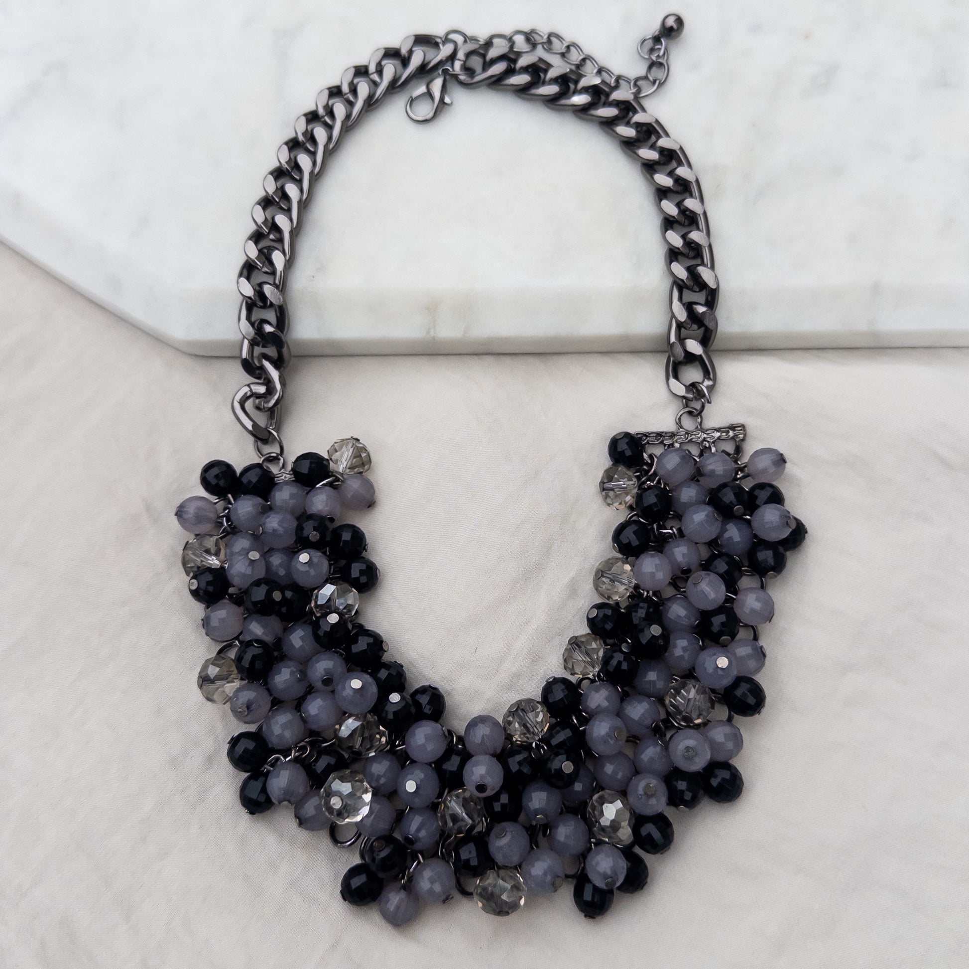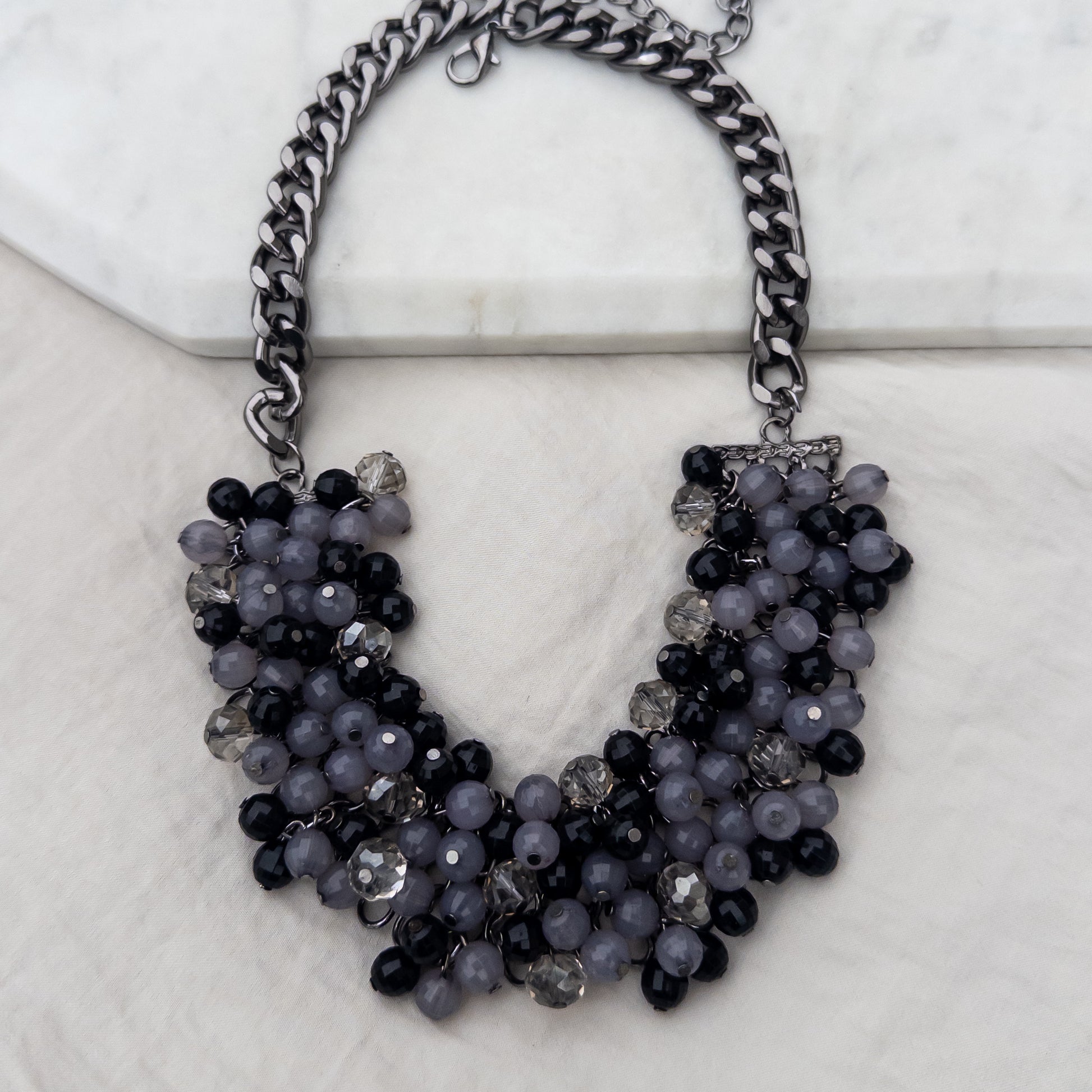 - Colier realizat din metal și material acrilic.