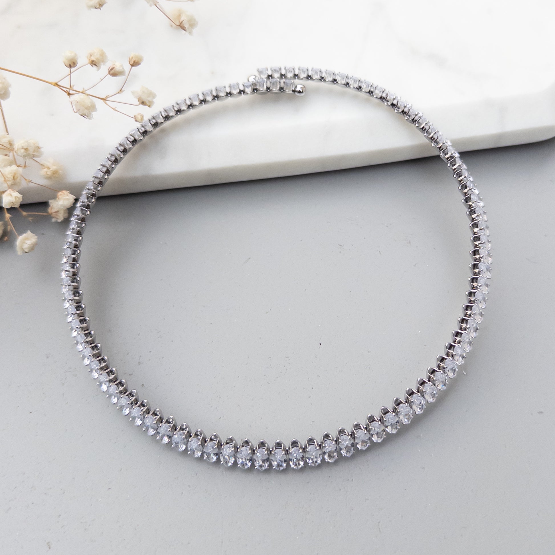 - Colier fabricat din oțel inoxidabil, cu cristale de zirconiu aplicate.