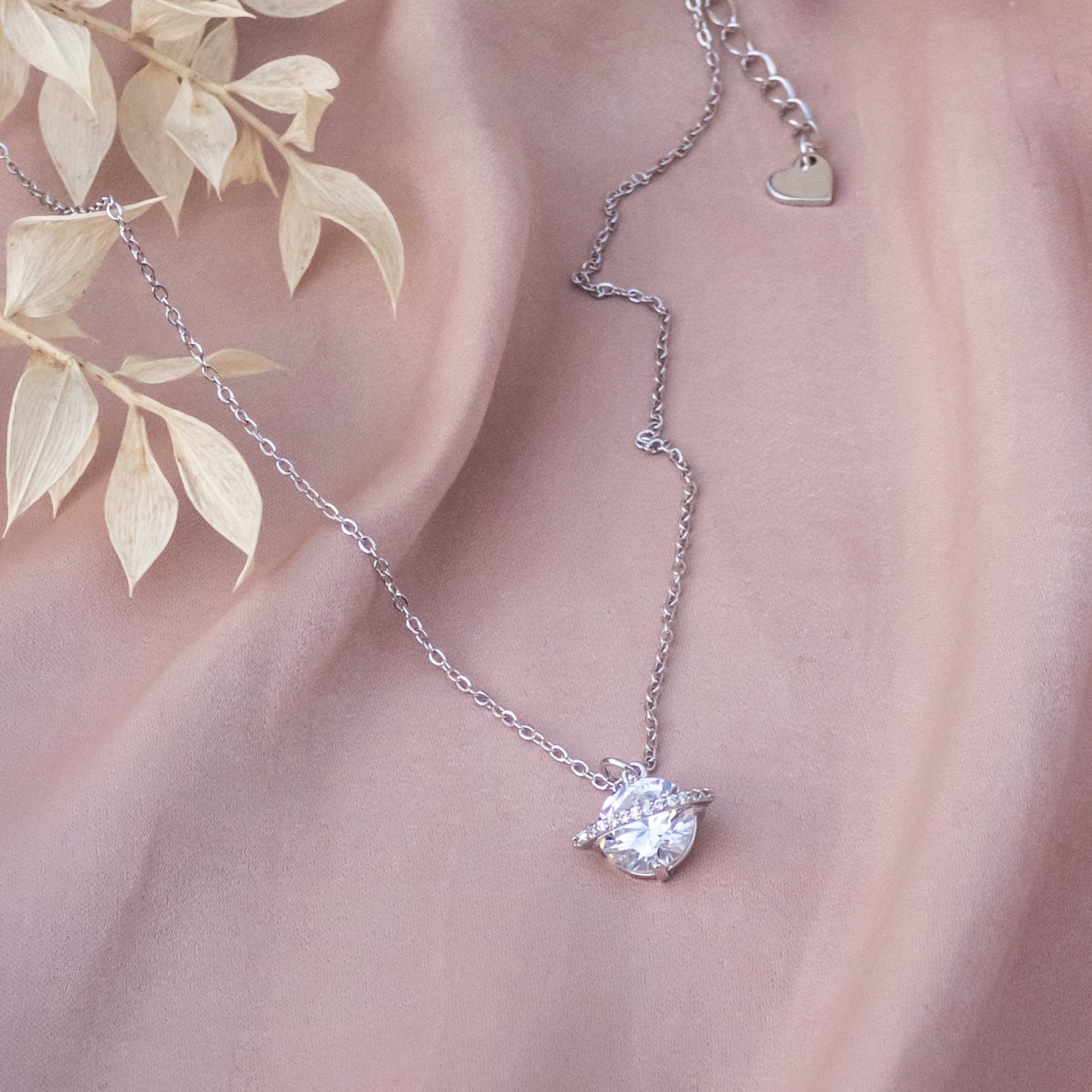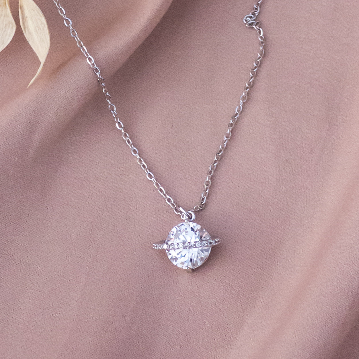 - Colier fabricat din oțel inoxidabil, cu cristale de zirconiu aplicate.
