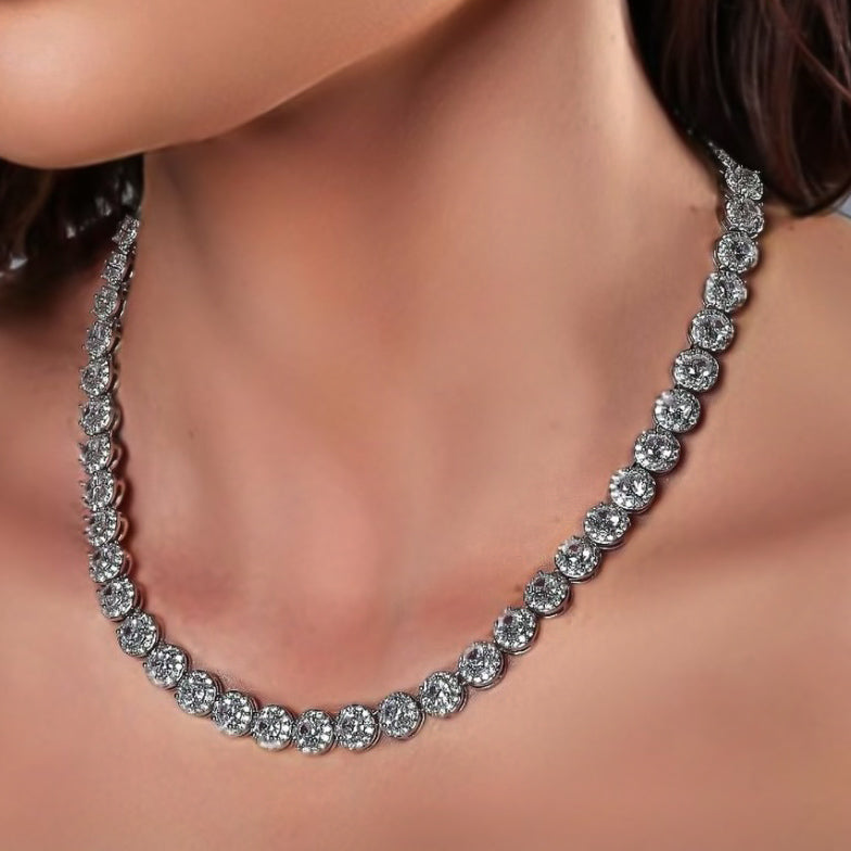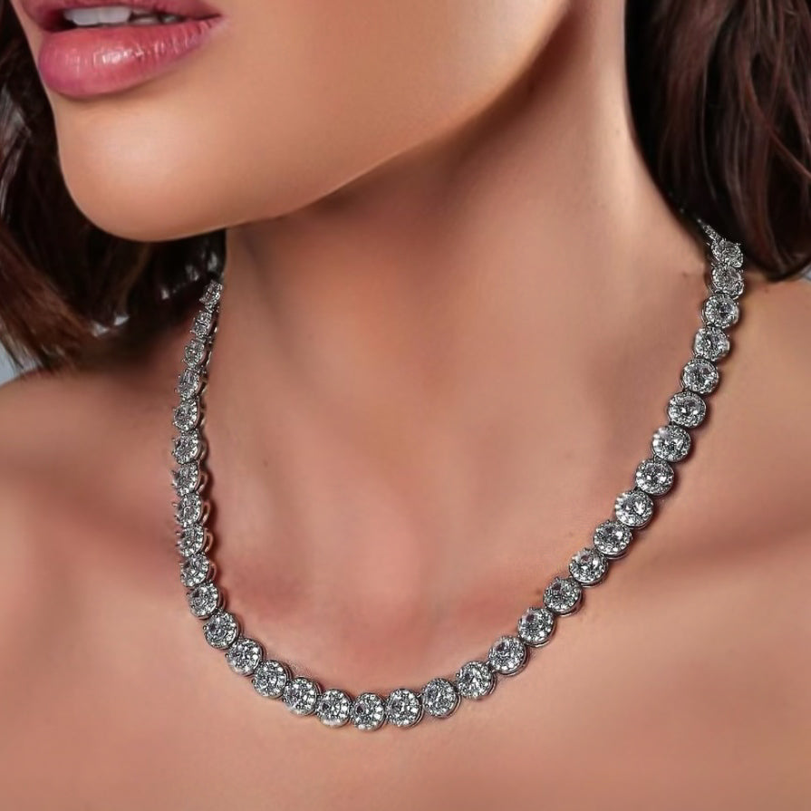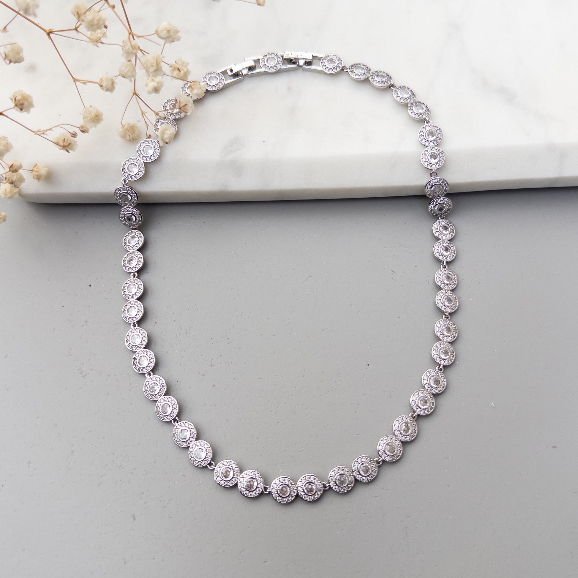 - Colier realizat din oțel inoxidabil, placat cu rodiu, cu cristale de zirconiu aplicate.