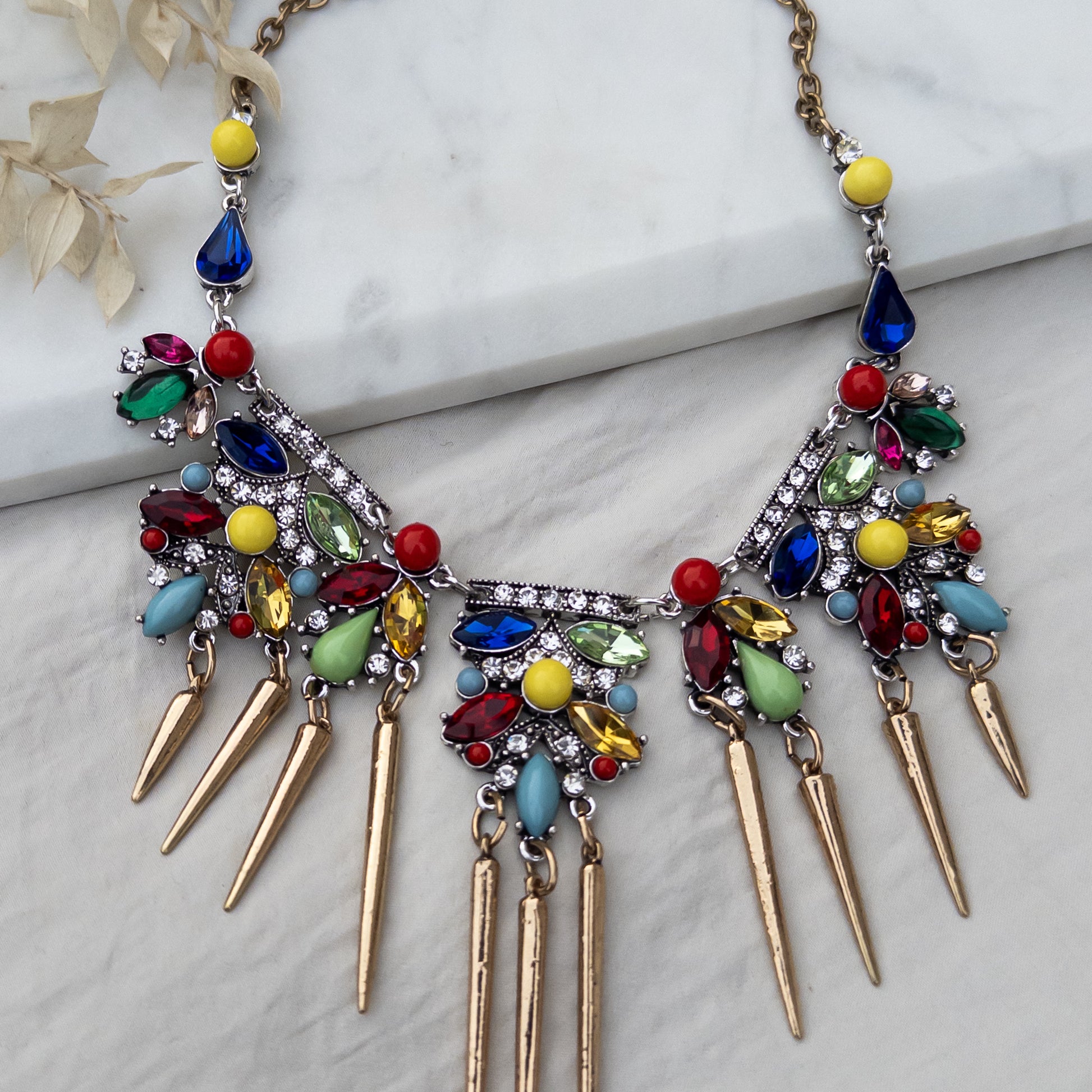 - Colier fabricat din metal, cu cristale de sticla aplicate.