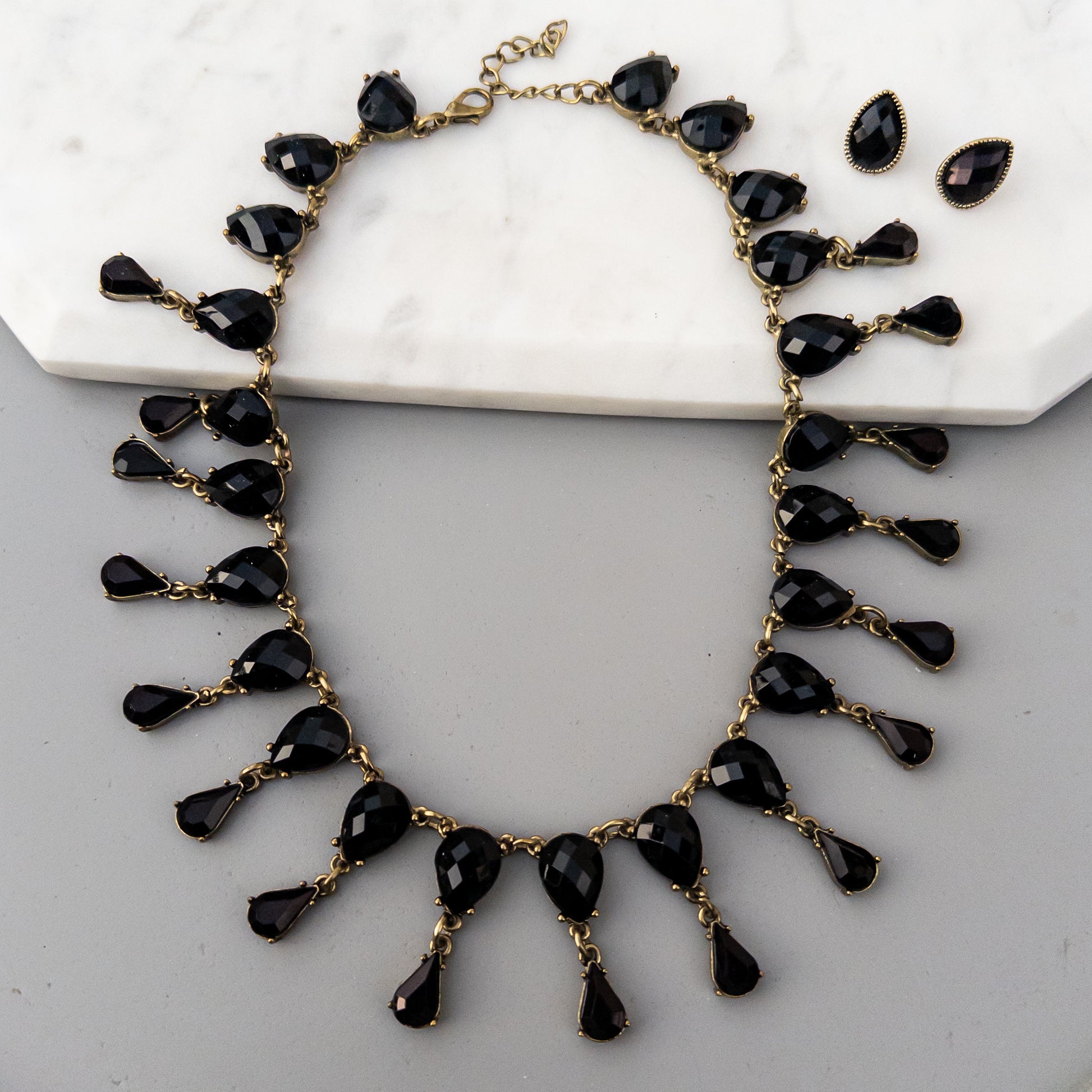 - Set de colier și cercei fabricat din metal și cristale de sticla.