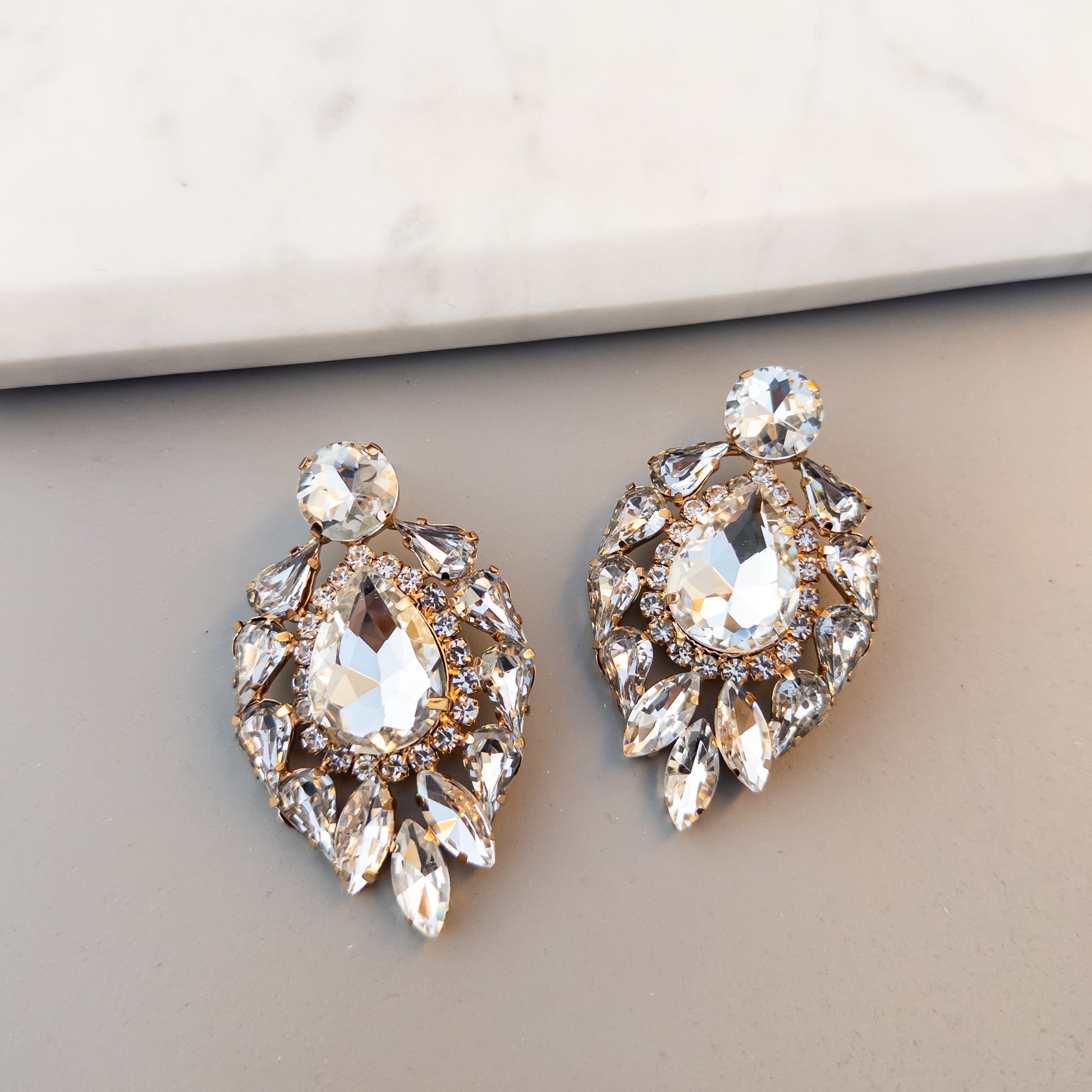- Cercei fabricati din metal, cu cristale de sticla aplicate.
