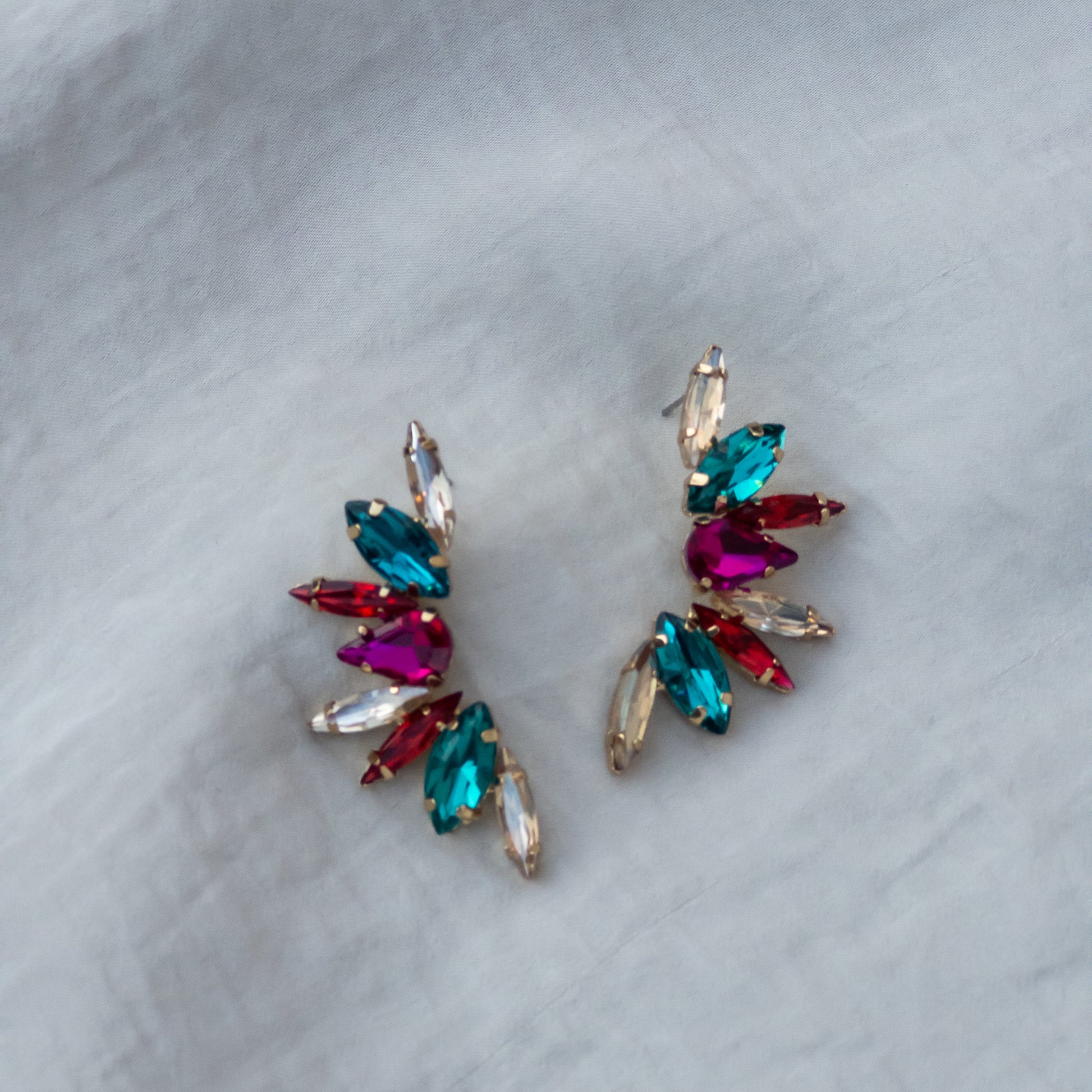 - Cercei fabricati din metal, cu cristale de sticla aplicate.