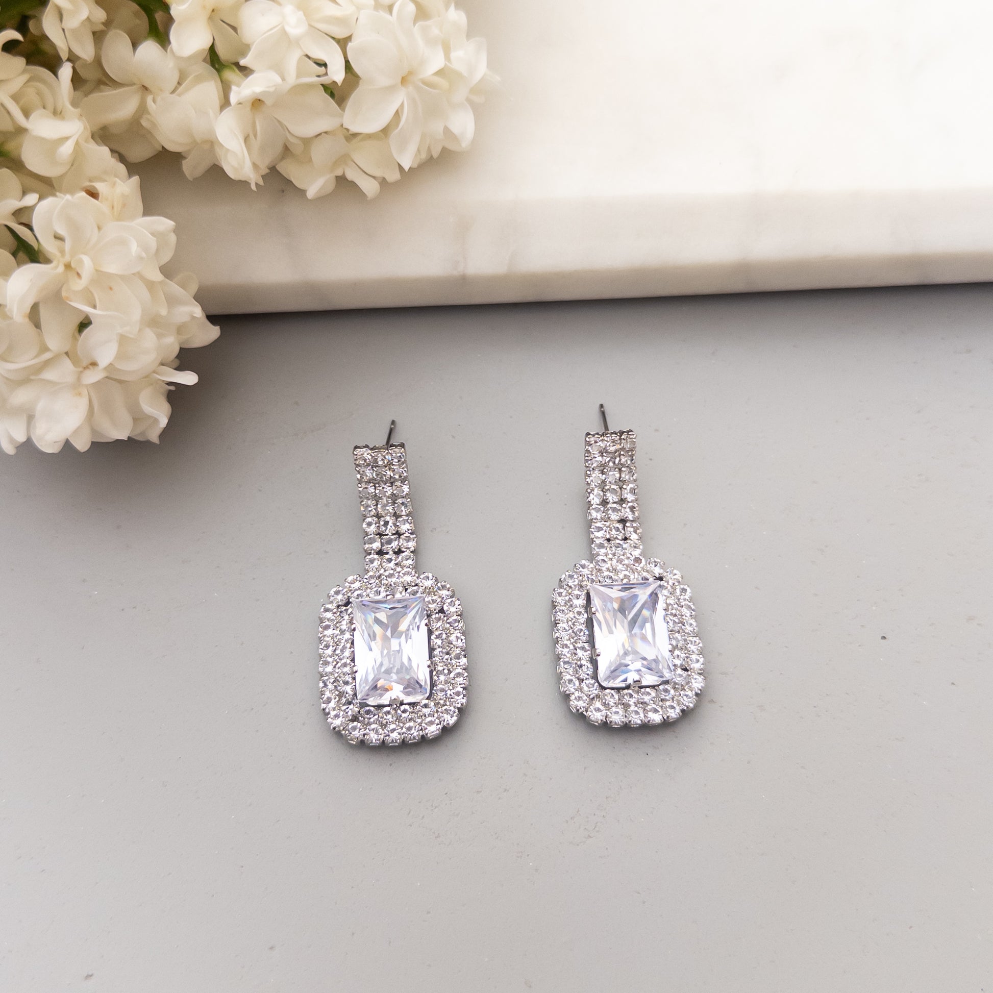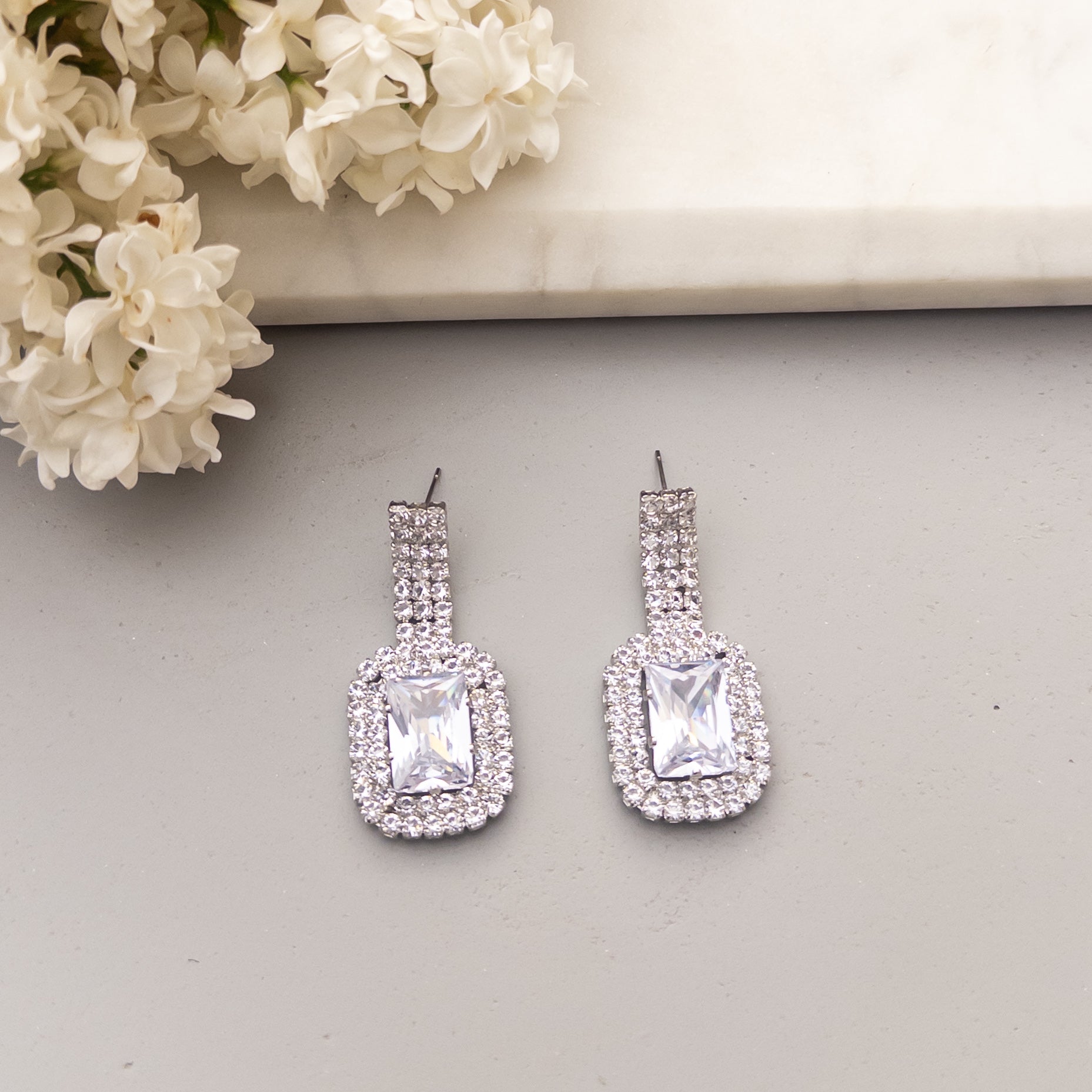 - Cercei fabricati din metal, cu cristale de zirconiu aplicate.