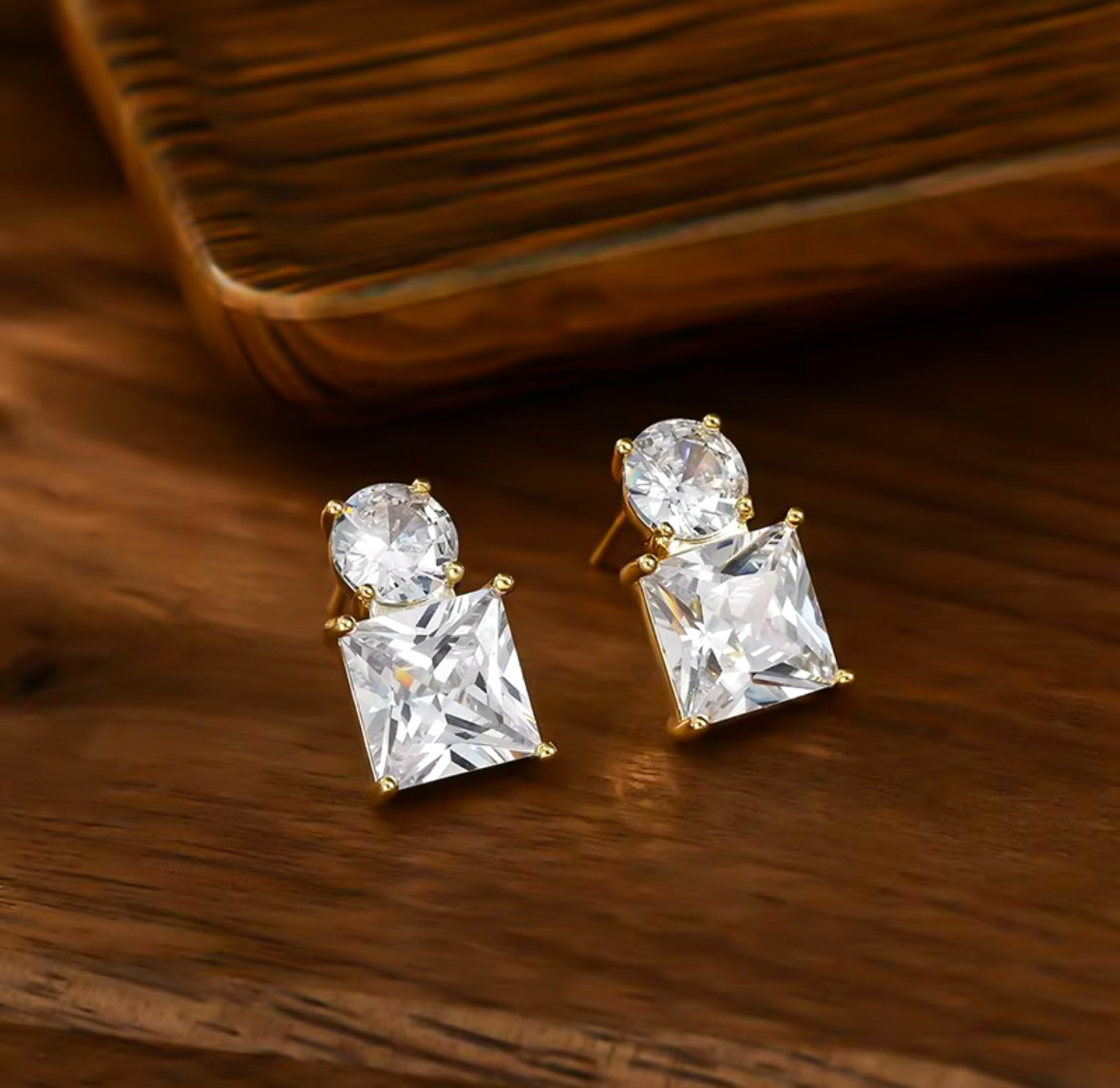 - Cercei fabricati din oțel inoxidabil, cu cristale de zirconiu aplicate.