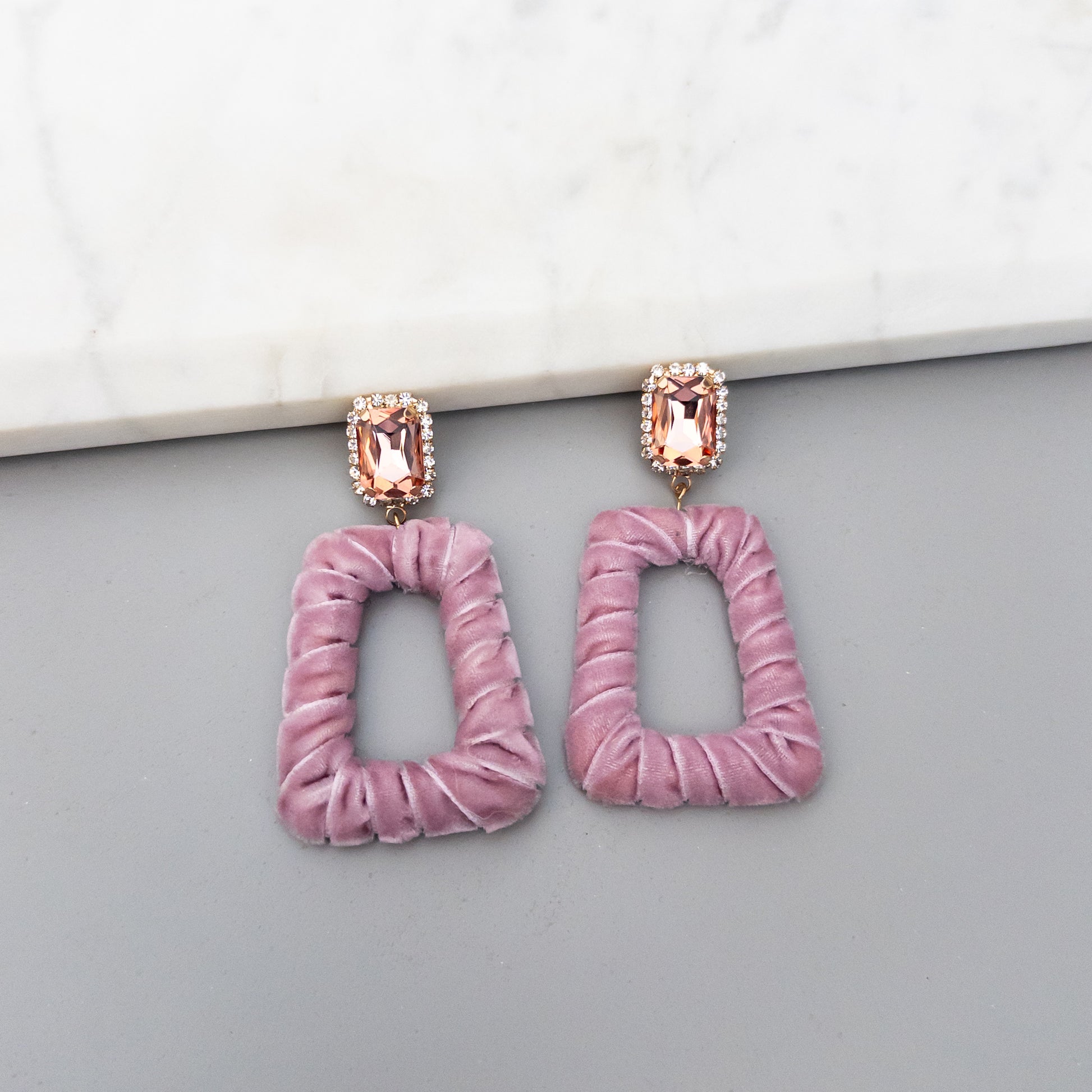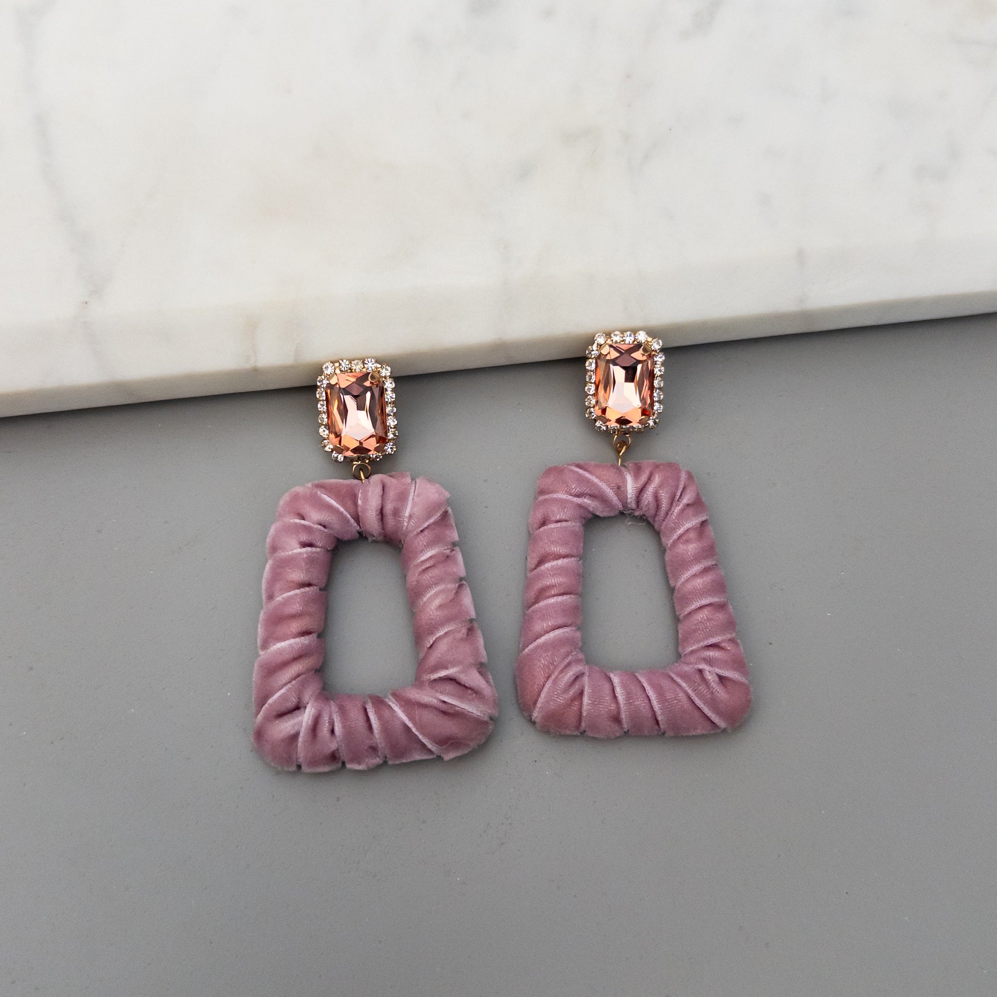 - Cercei fabricati din metal cu material textil aplicat și cristale de sticla.