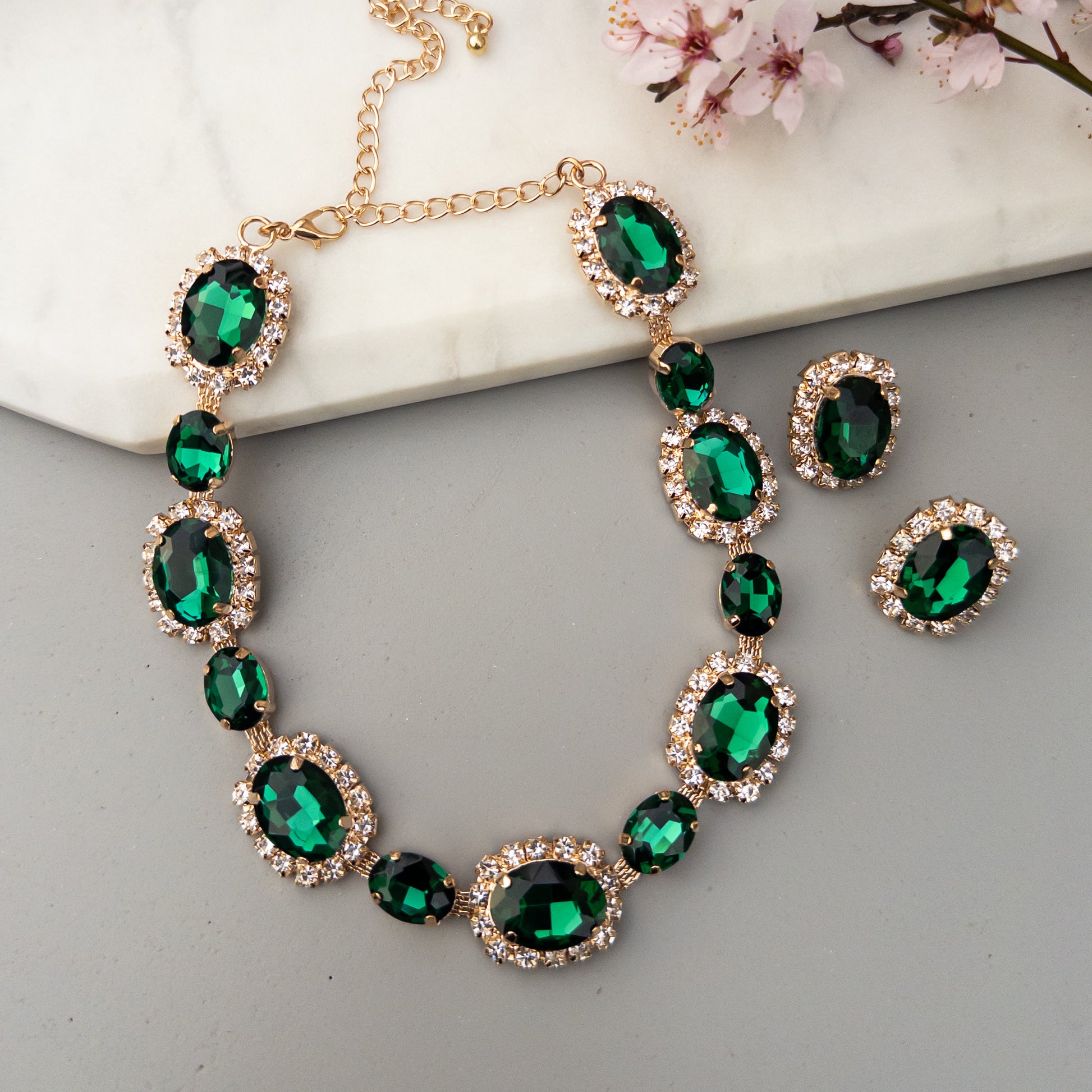 - Colier și cercei fabricati din metal, cu cristale de sticla aplicate.