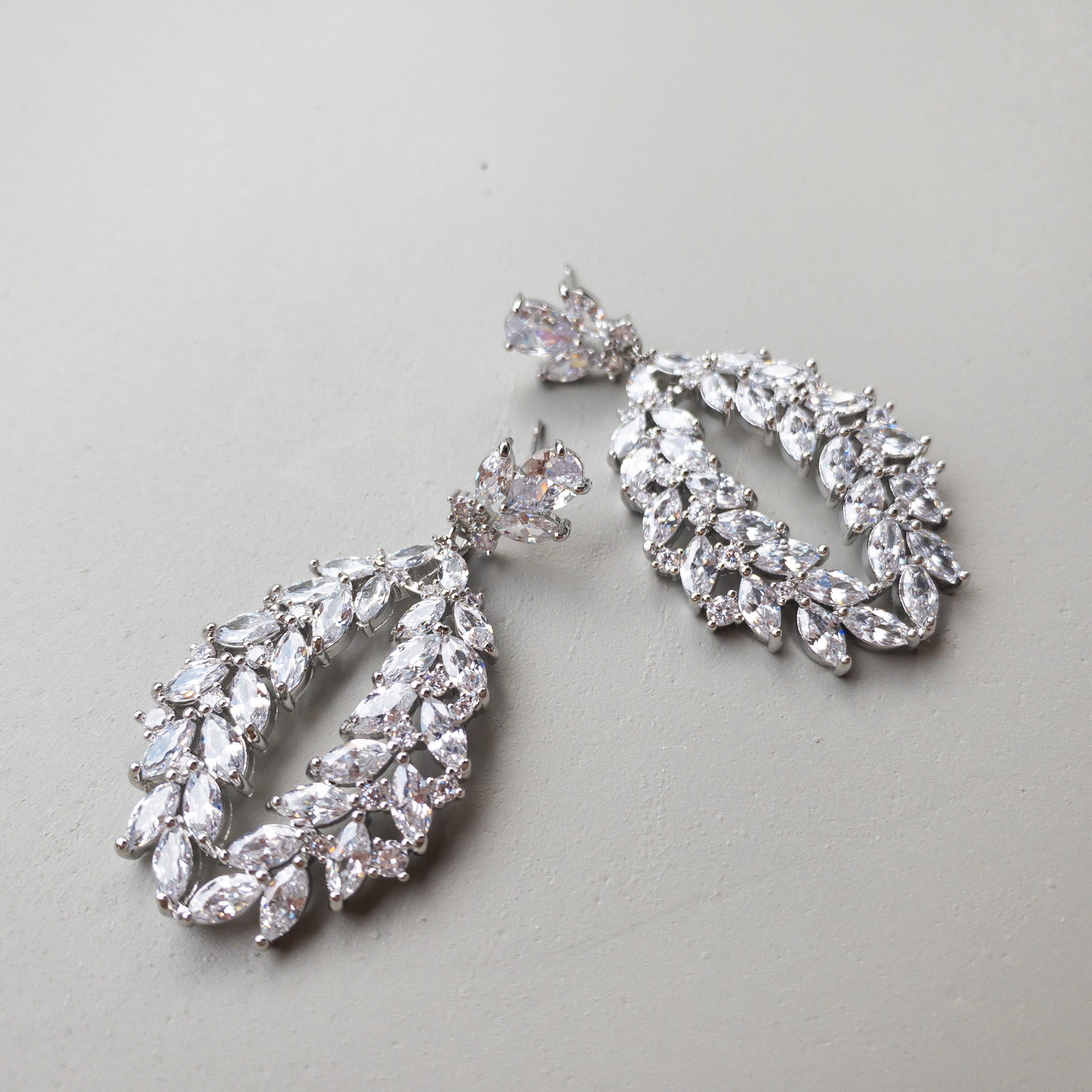 - Cercei din metal cu pietre de zirconiu, aliaj zinc, fara nichel
