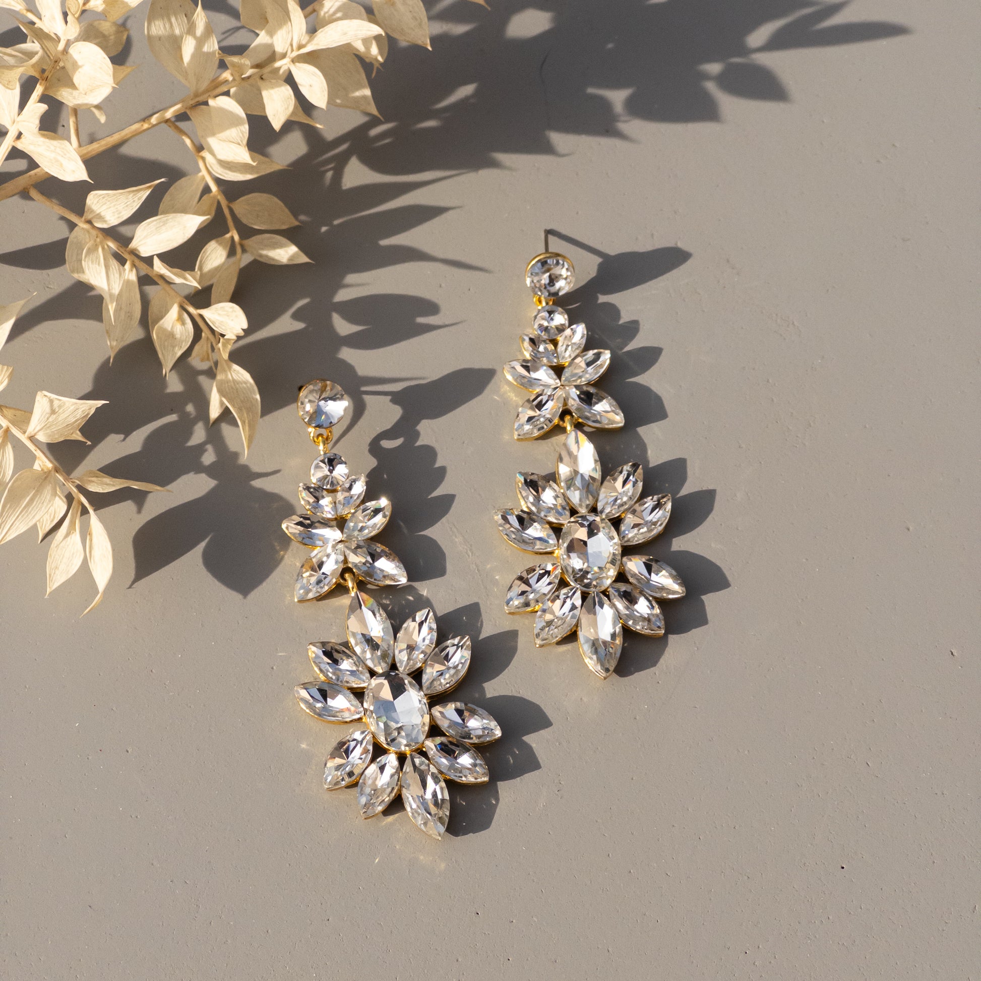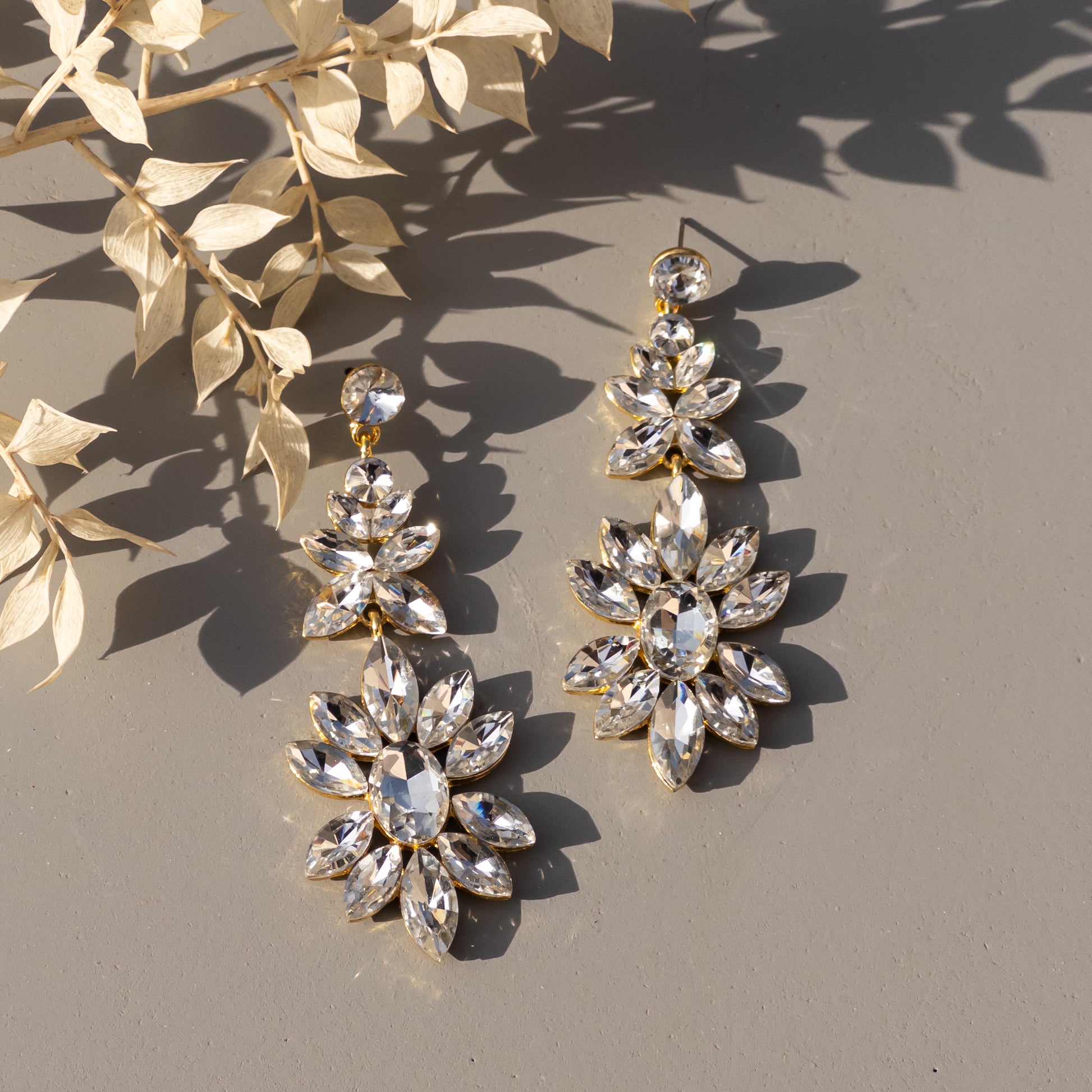 - Cercei fabricati din metal, cu cristale de sticla aplicate.