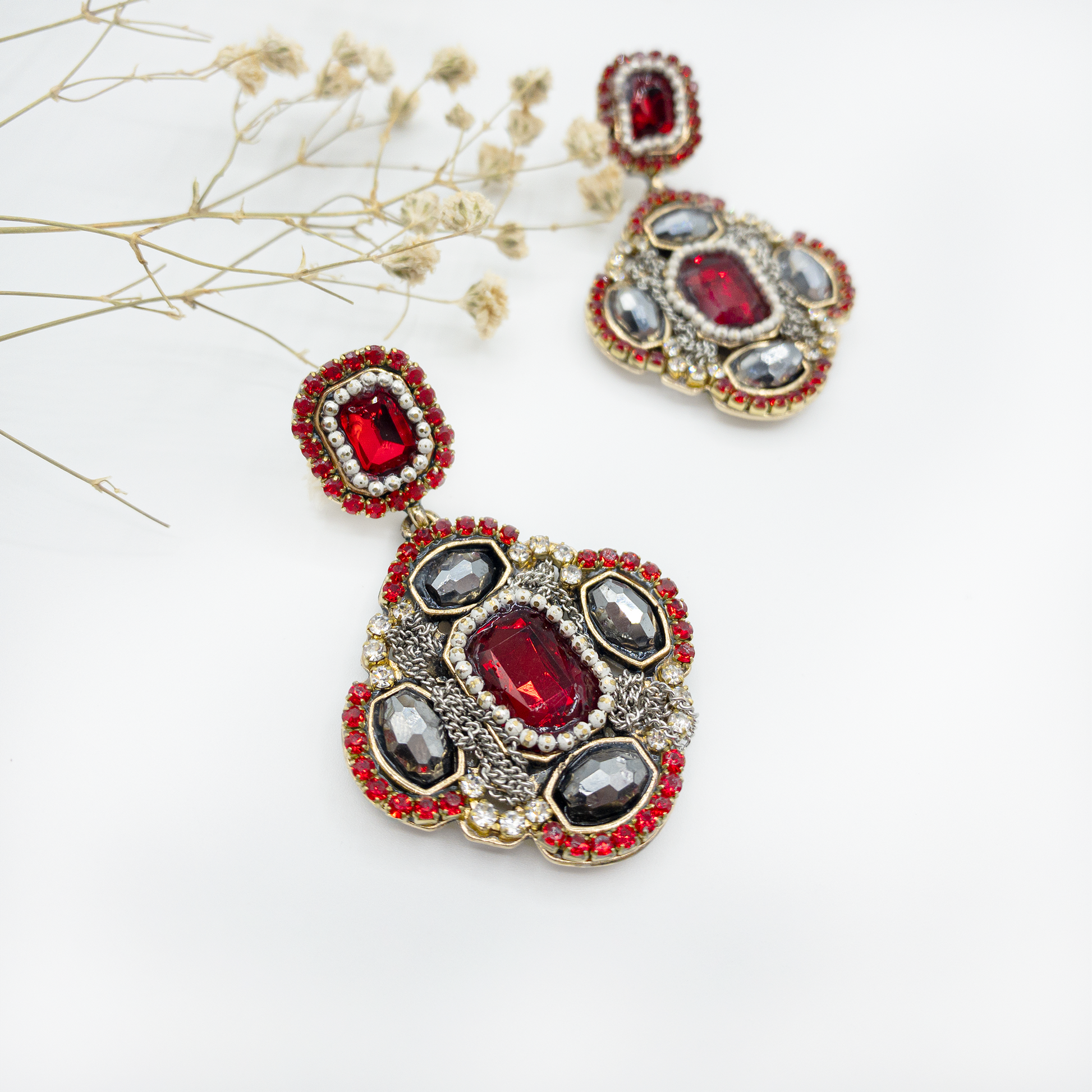 - Cercei din metal cu cristale si siraguri de lanturi aplicate, aliaj zinc