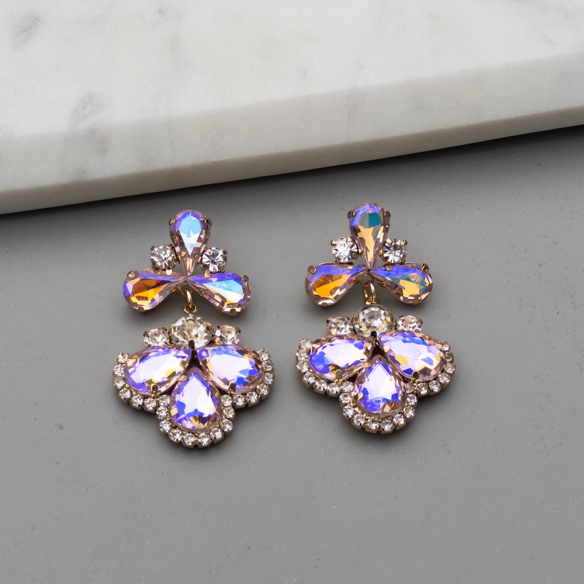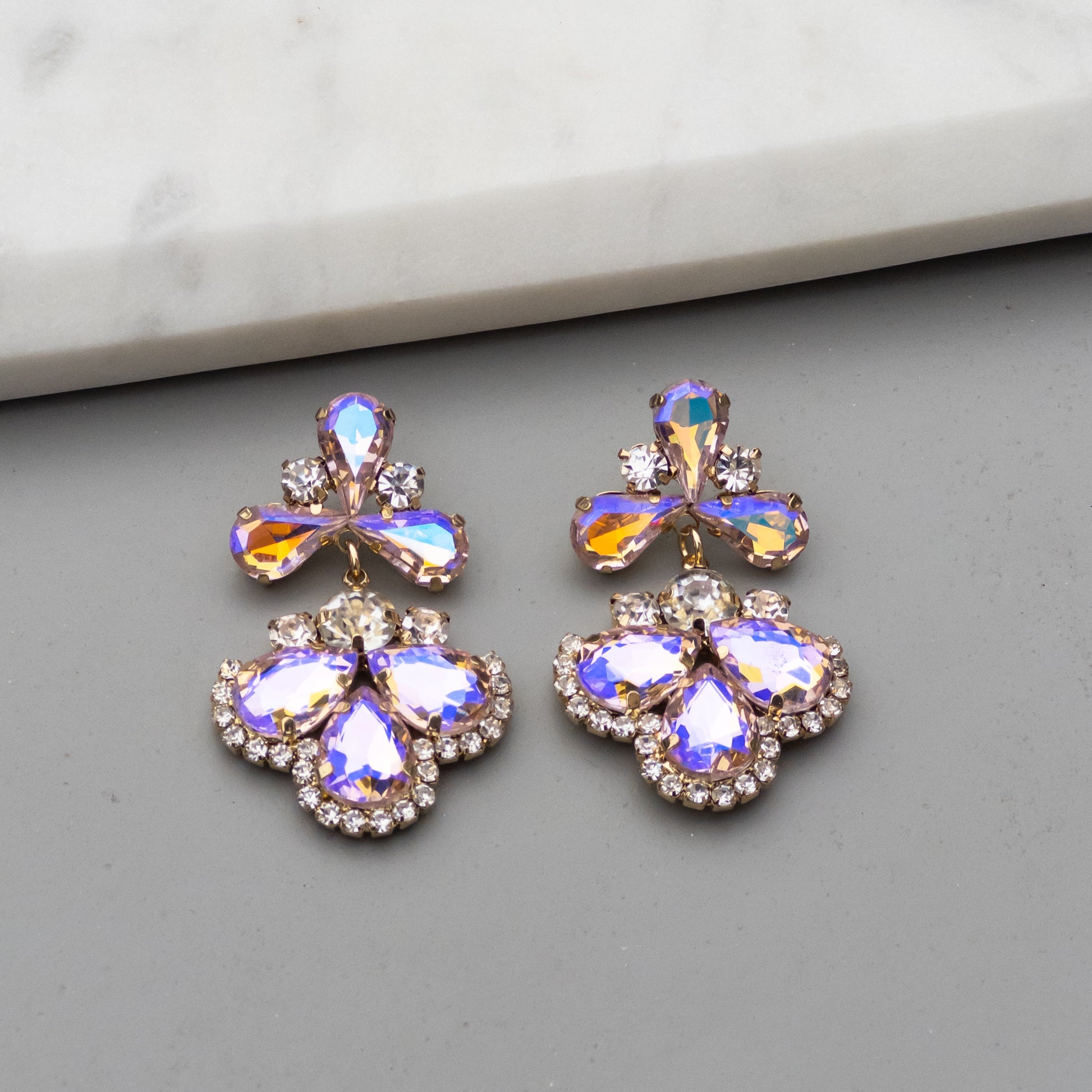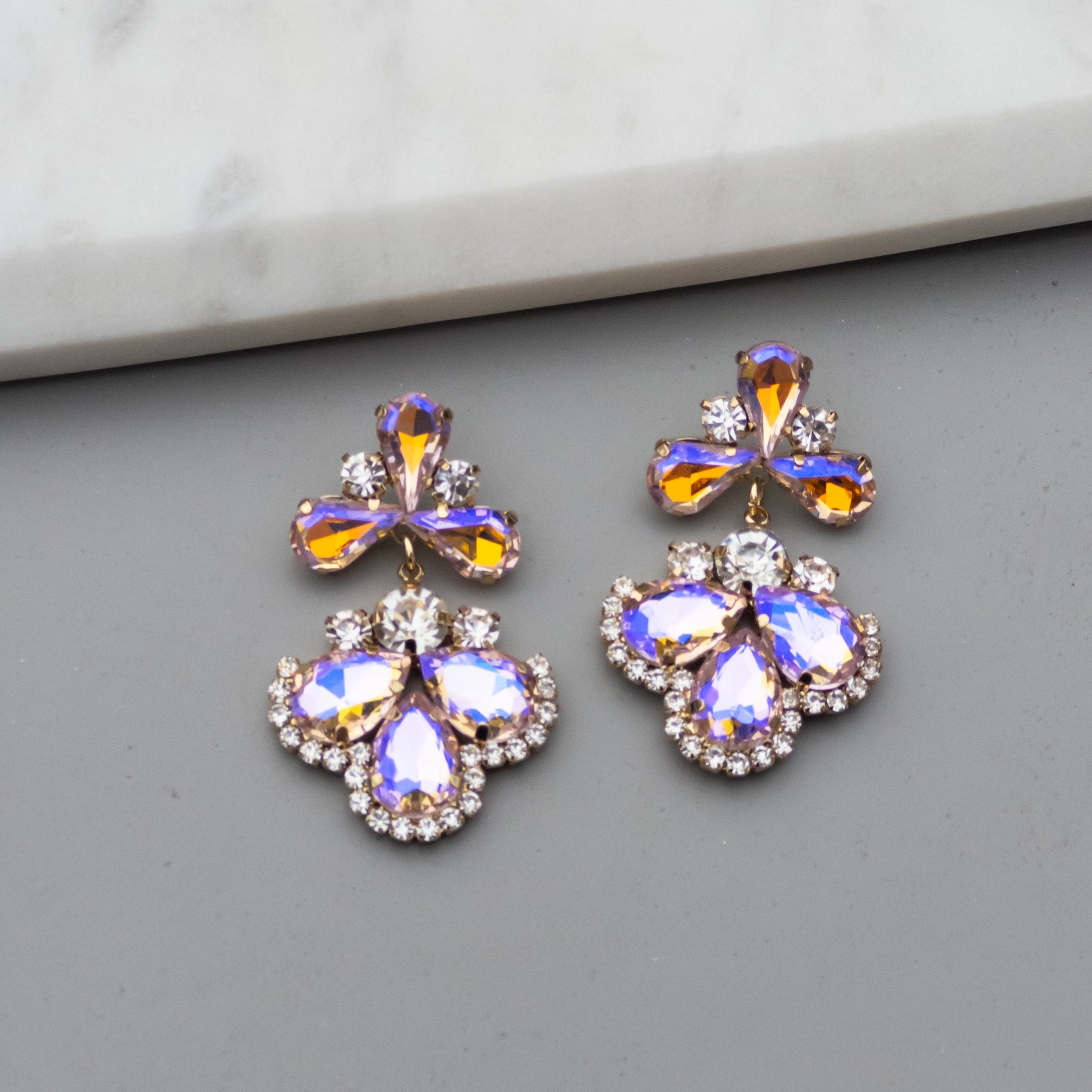 - Cercei fabricati din metal, cu cristale de sticla aplicate.