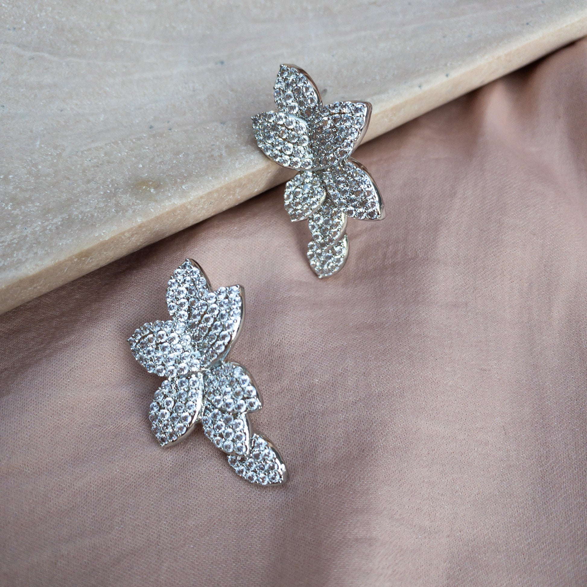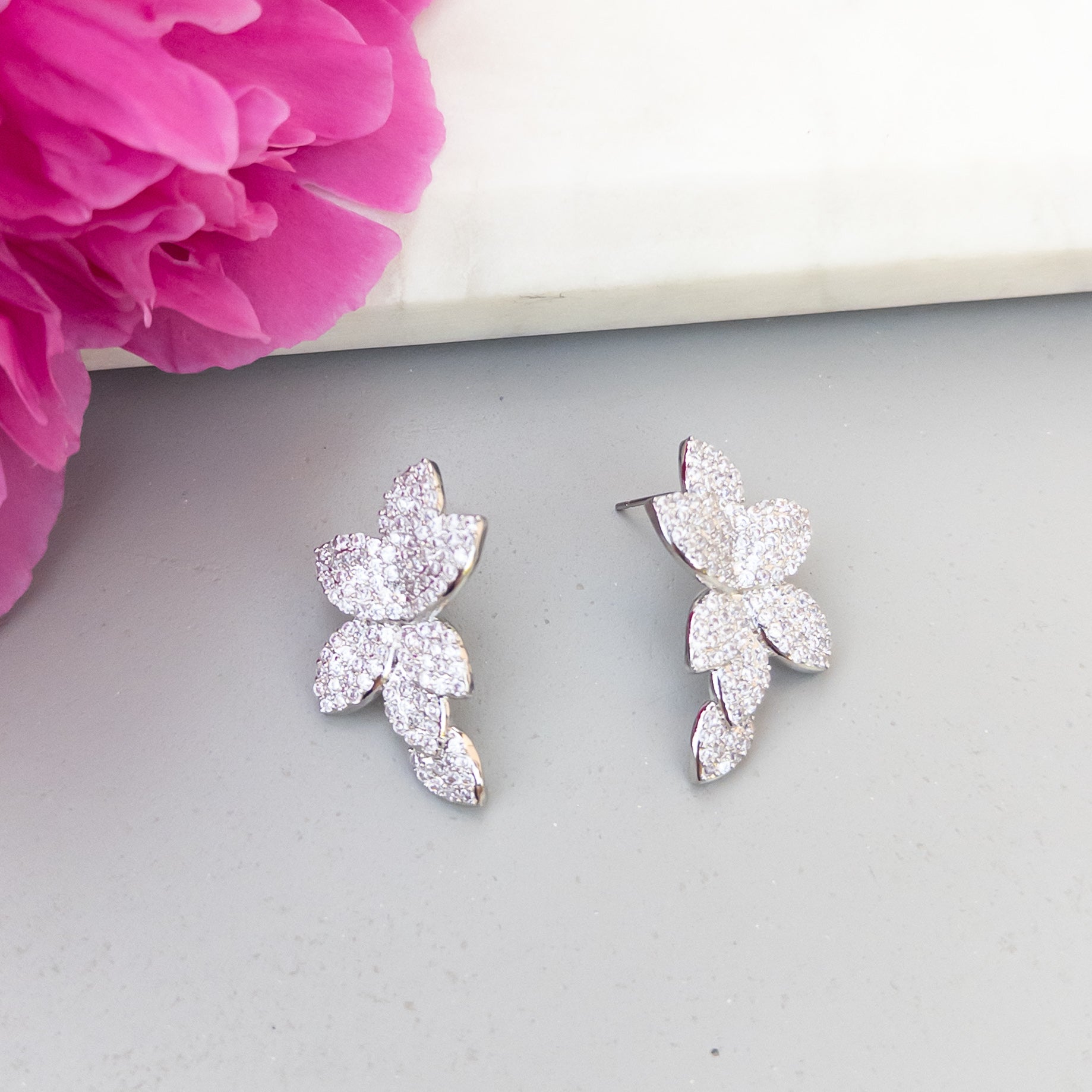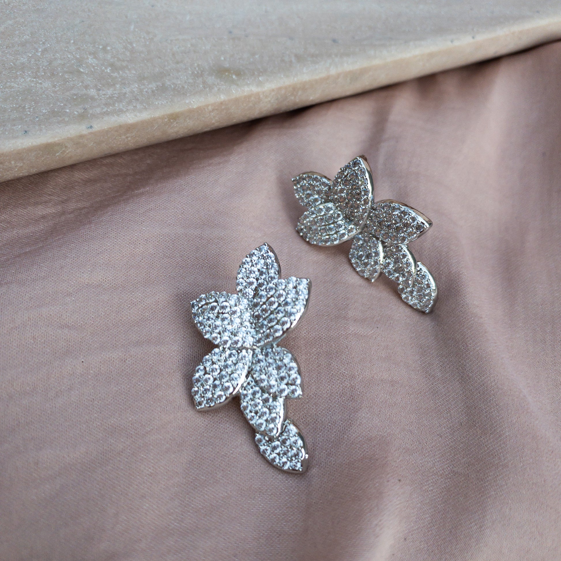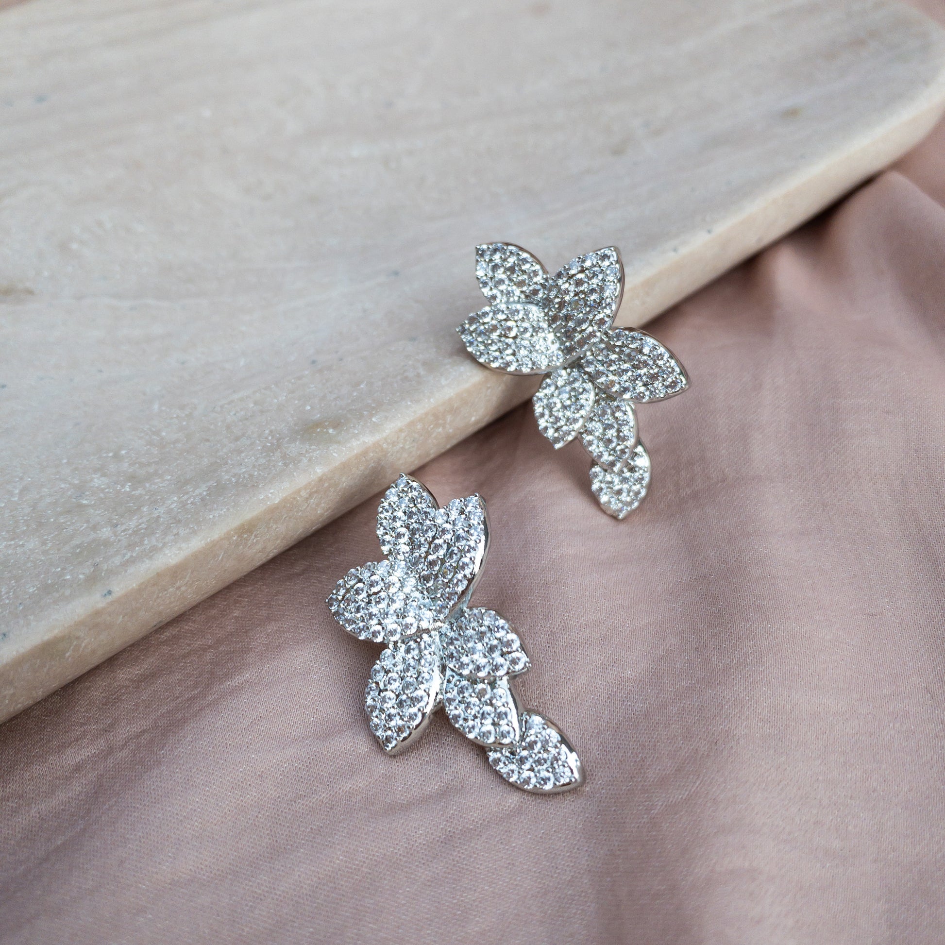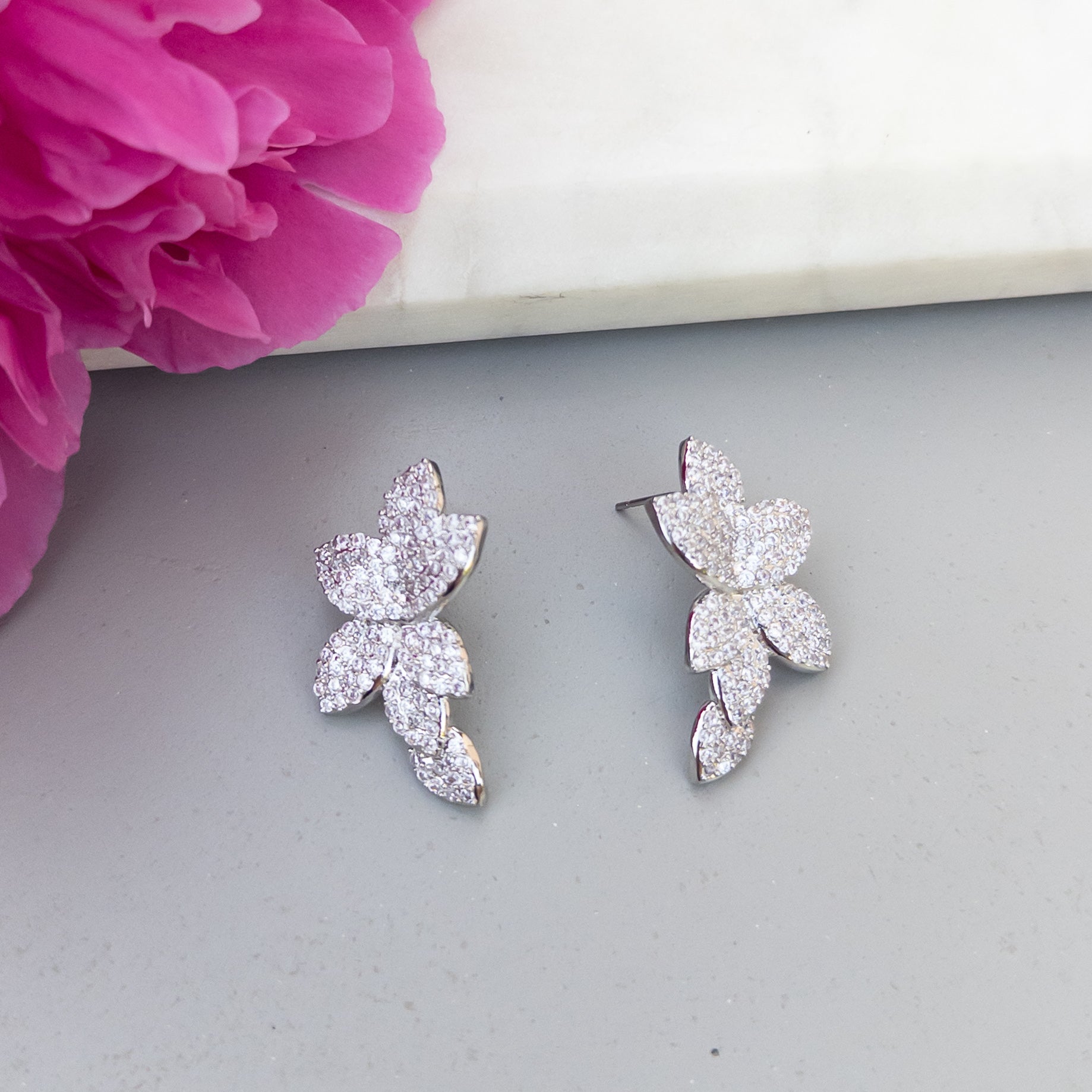 - Cercei fabricati din cupru, placati cu rodiu, cu cristale de zirconiu aplicate.
