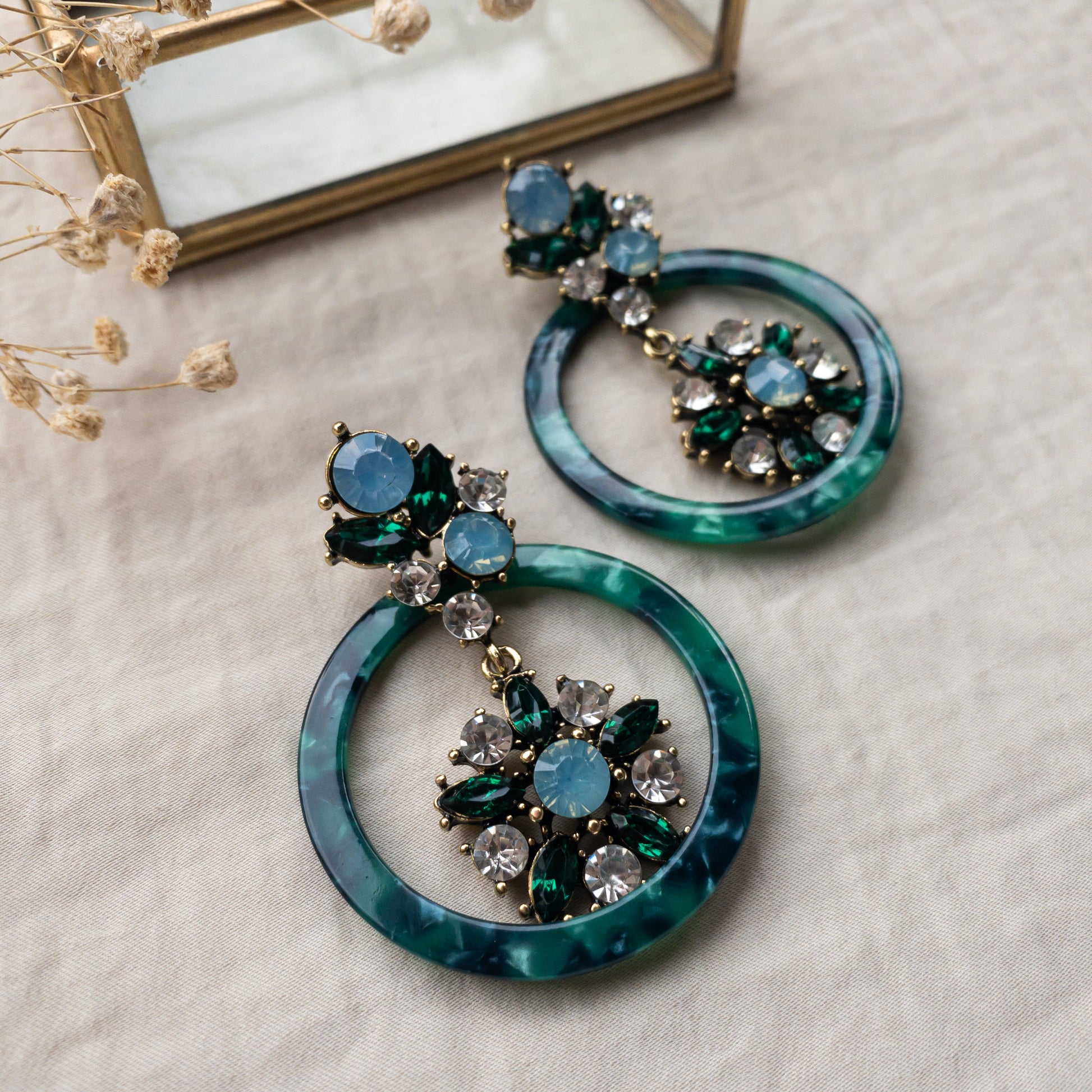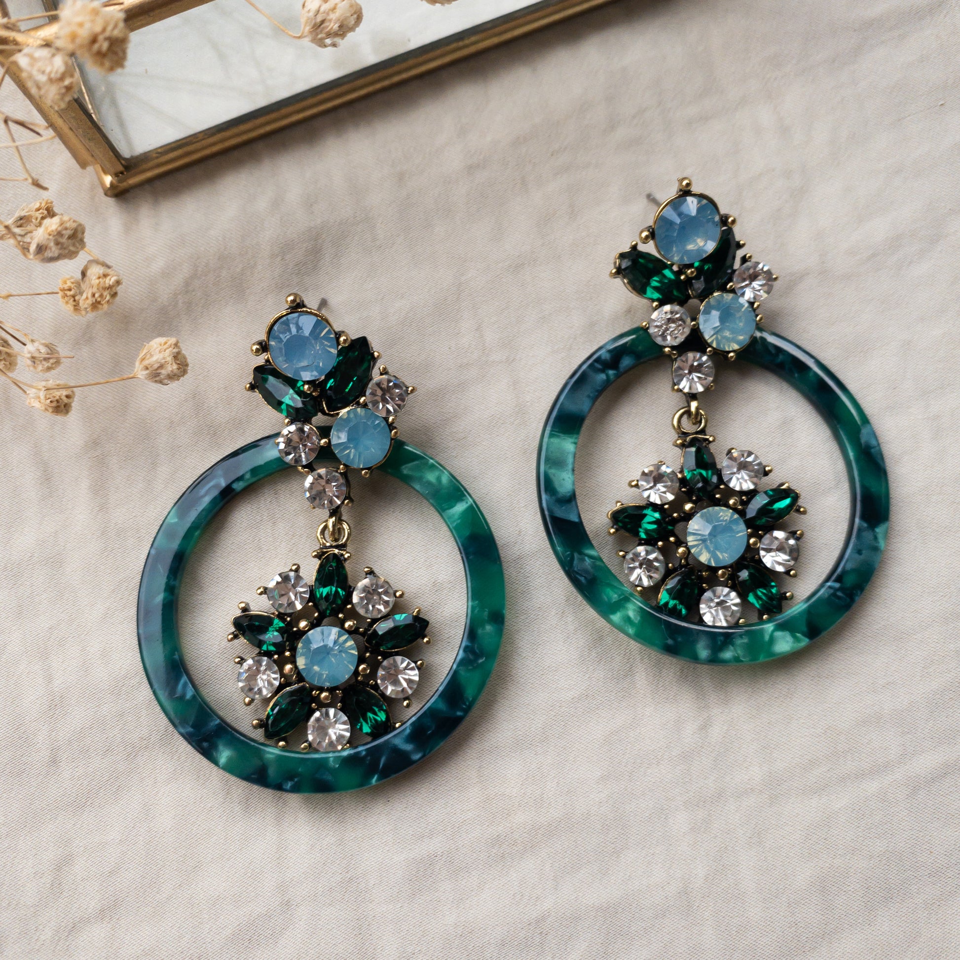- Cercei fabricati din metal, cu cristale de sticla aplicate, aliaj zinc.