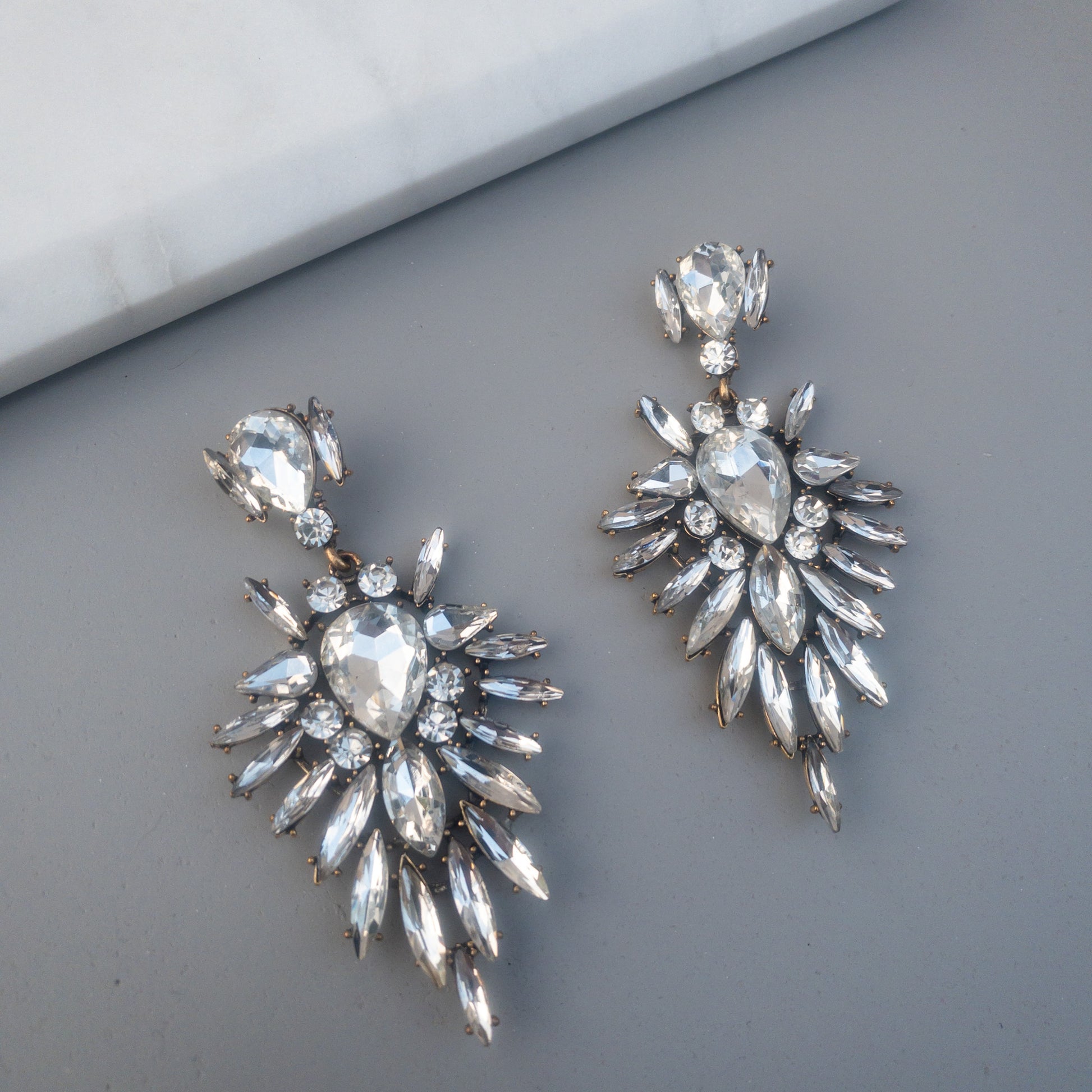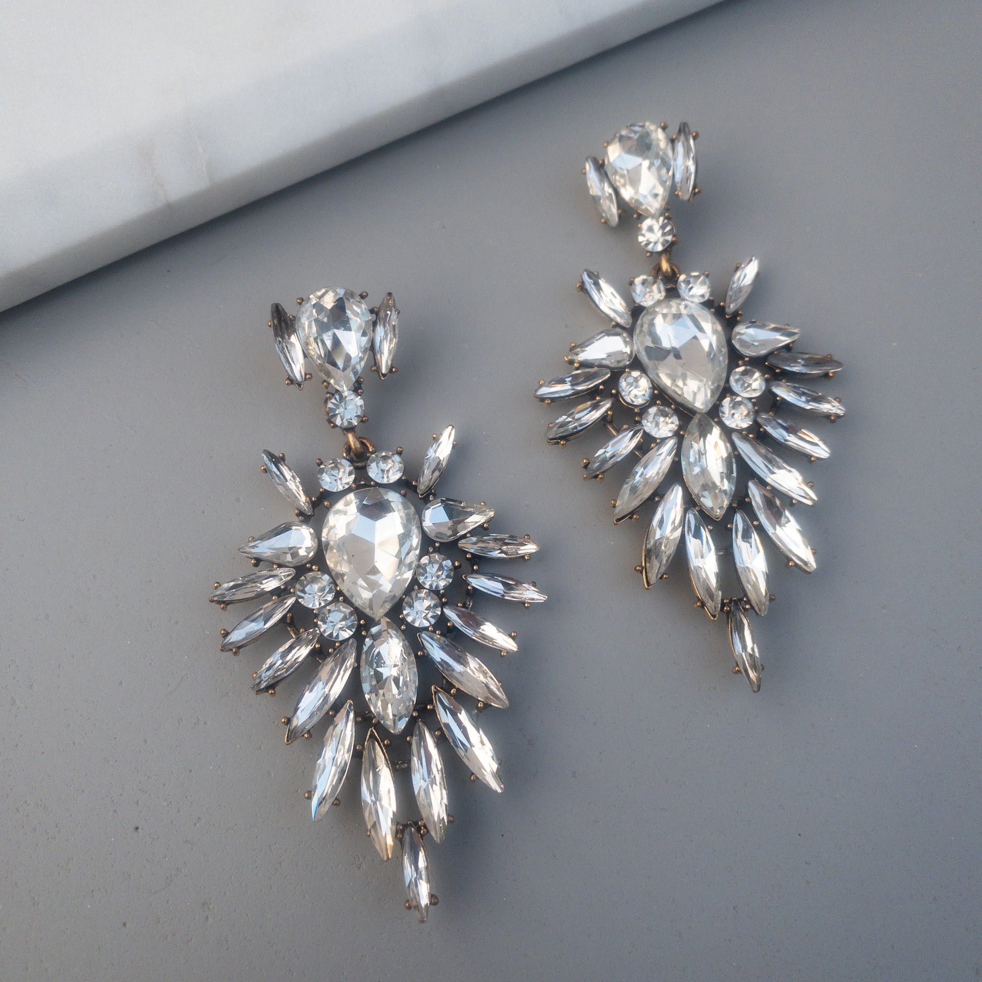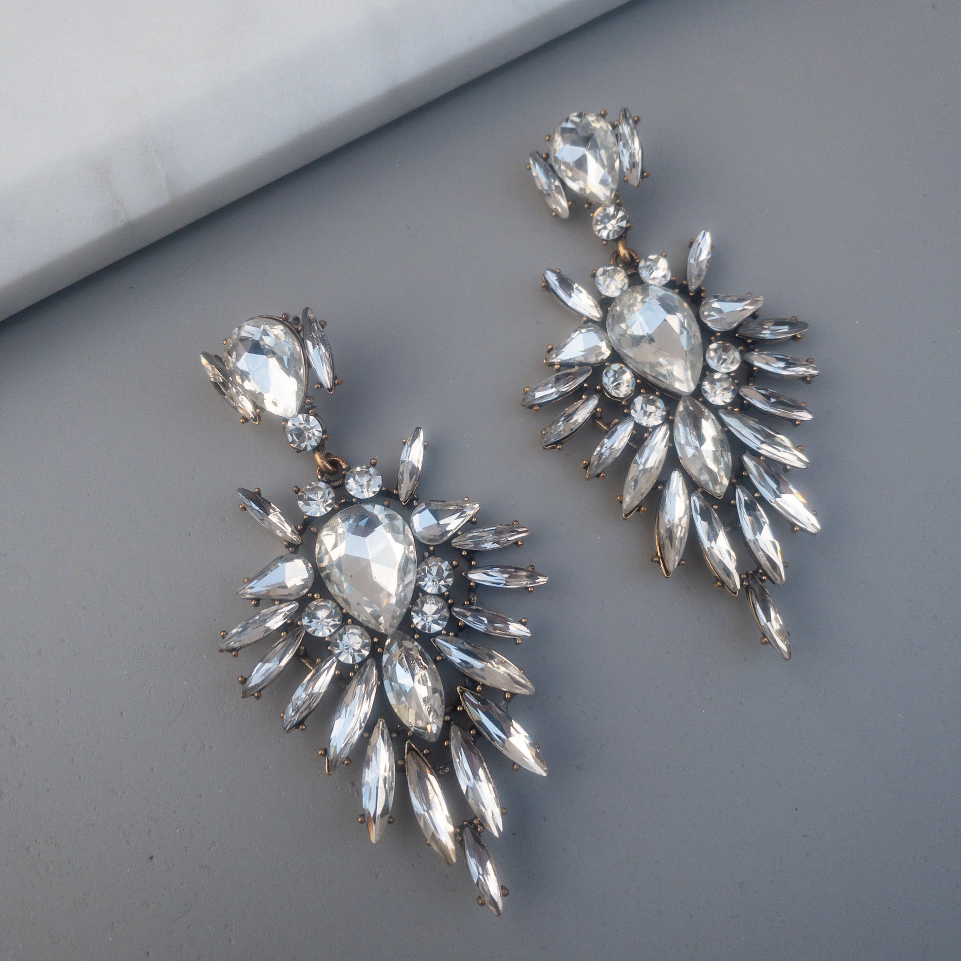 - Cercei fabricati din metal, cu cristale de sticla aplicate.