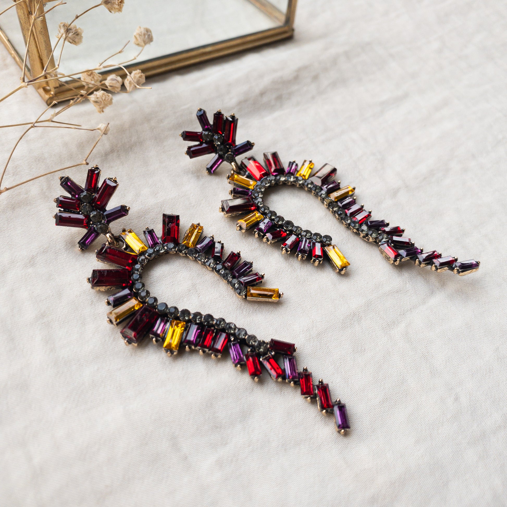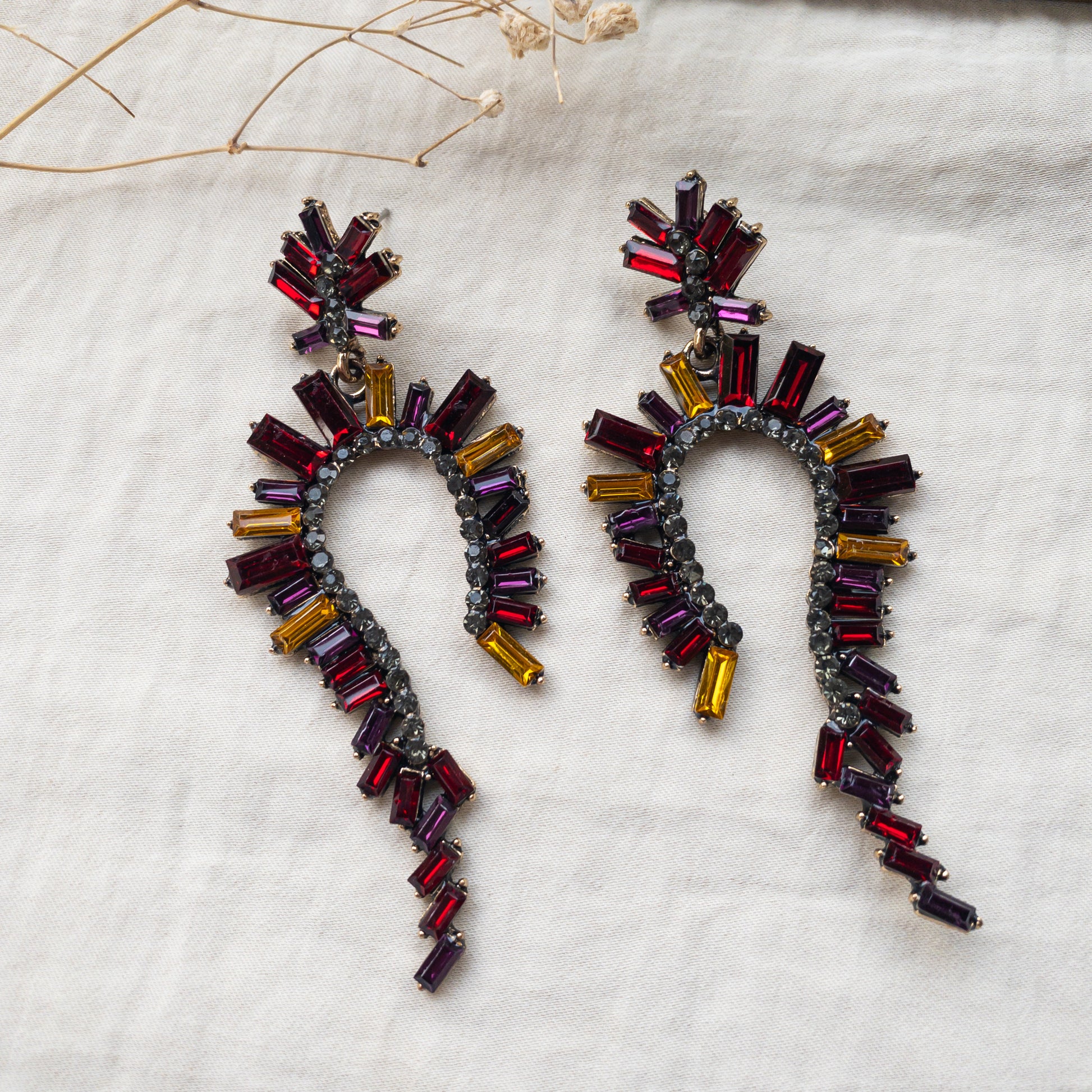 - Cercei fabricati din metal, cu cristale de sticla aplicate, aliaj zinc
