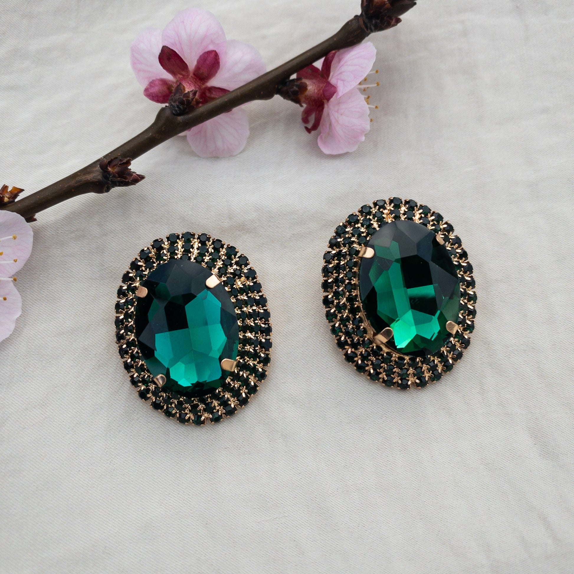 - Cercei fabricati din metal, cu cristale de sticla aplicate.