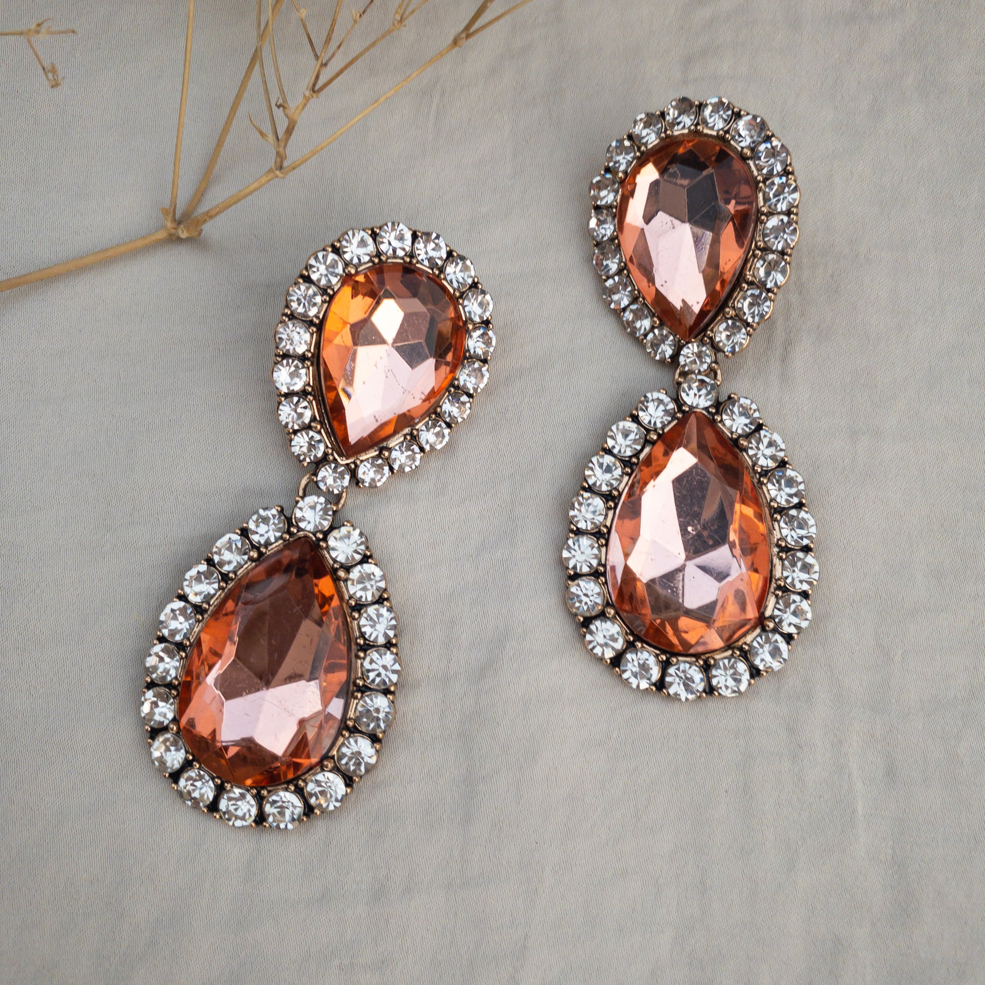 - Cercei din metal cu cristale de sticla aplicate, aliaj zinc, fara nichel.