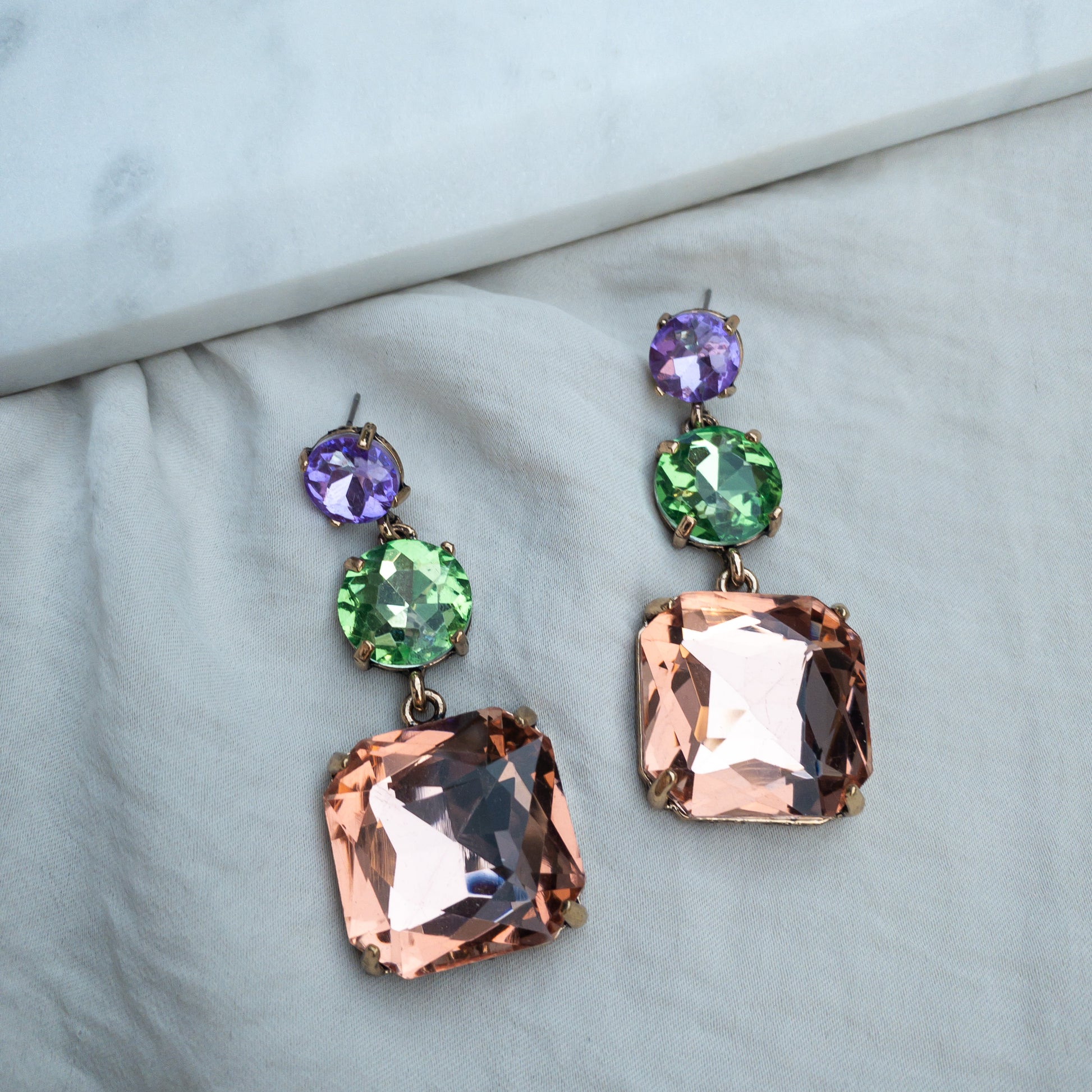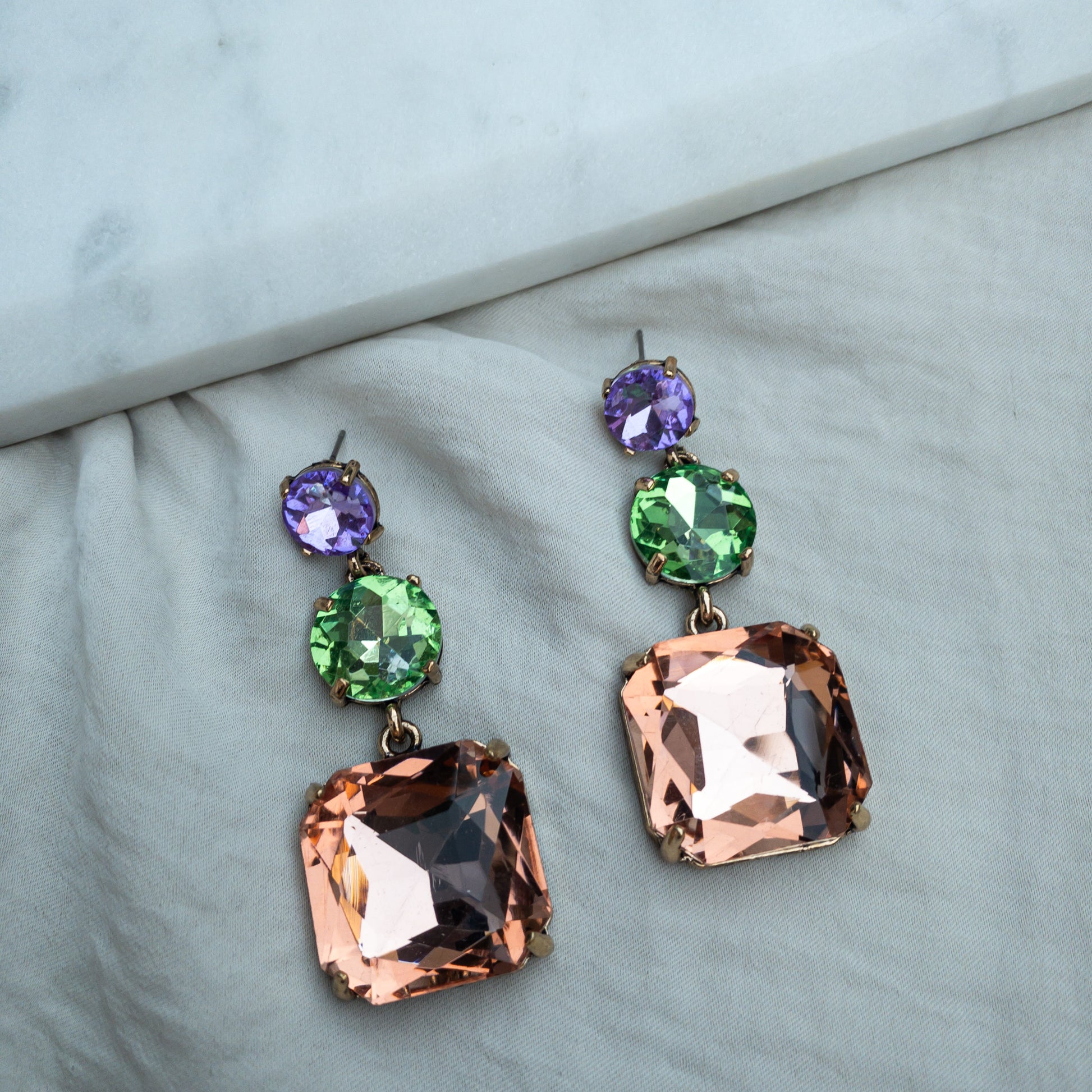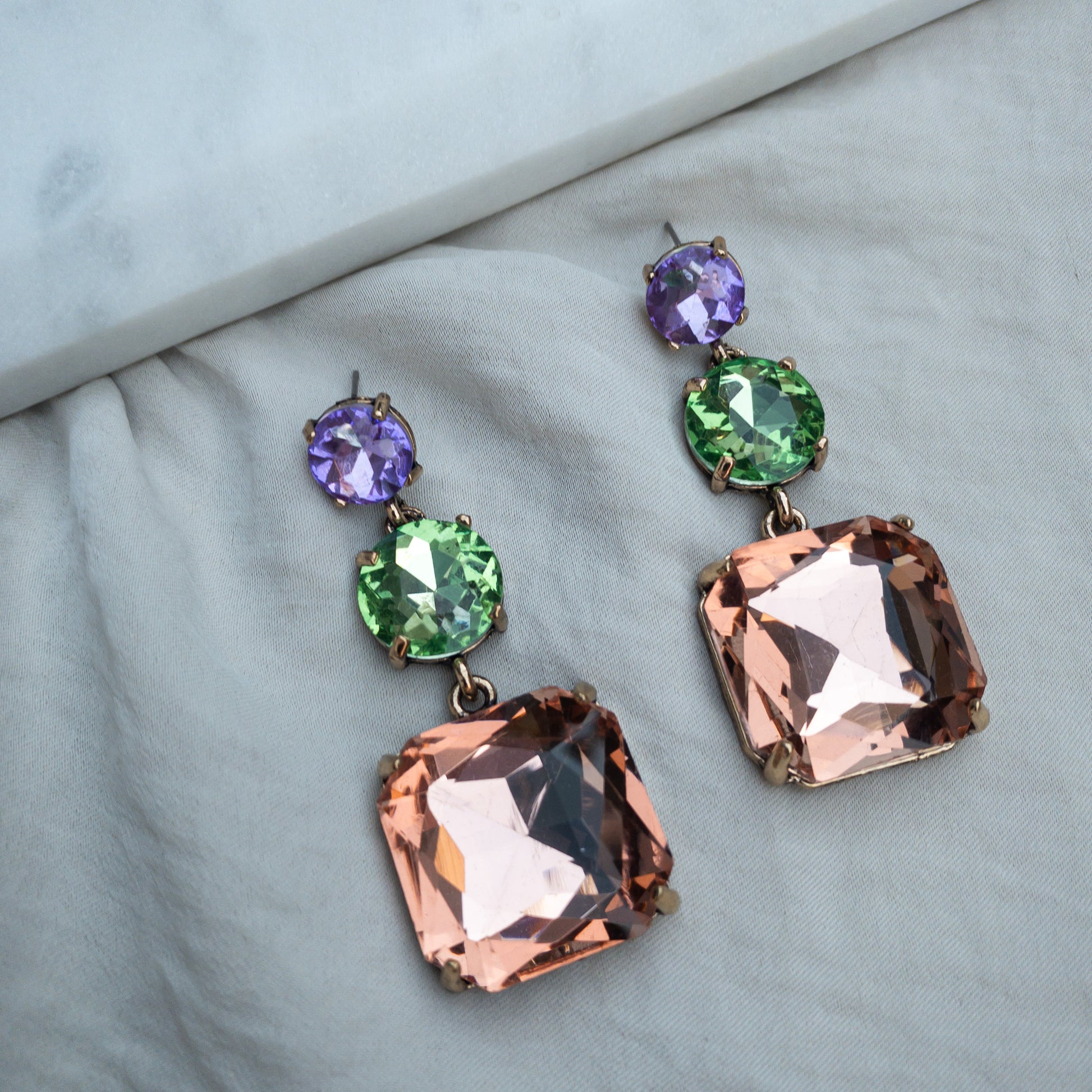 - Cercei fabricati din metal, cu cristale de sticla aplicate.