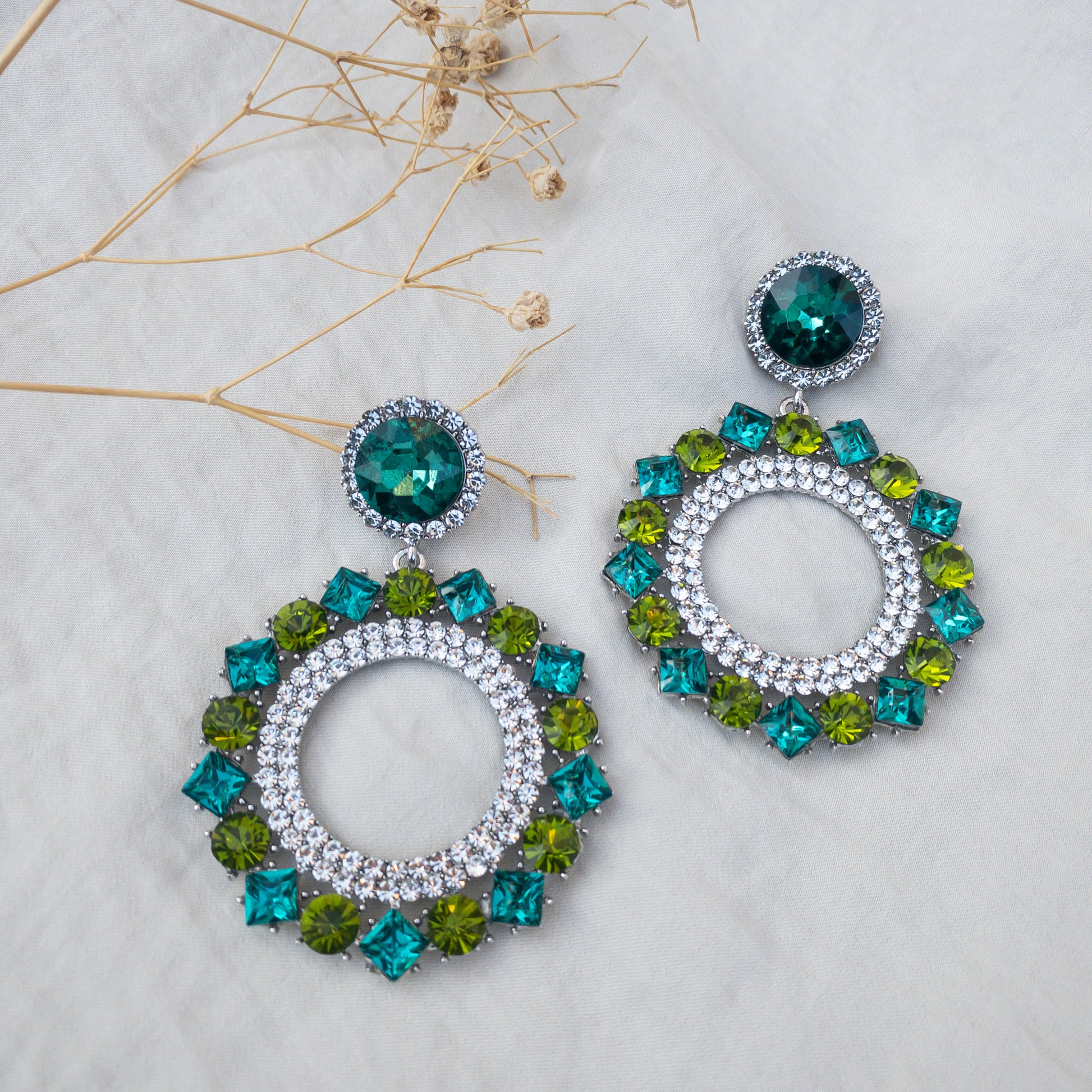 - Cercei fabricati din metal, cu cristale de sticla aplicate.