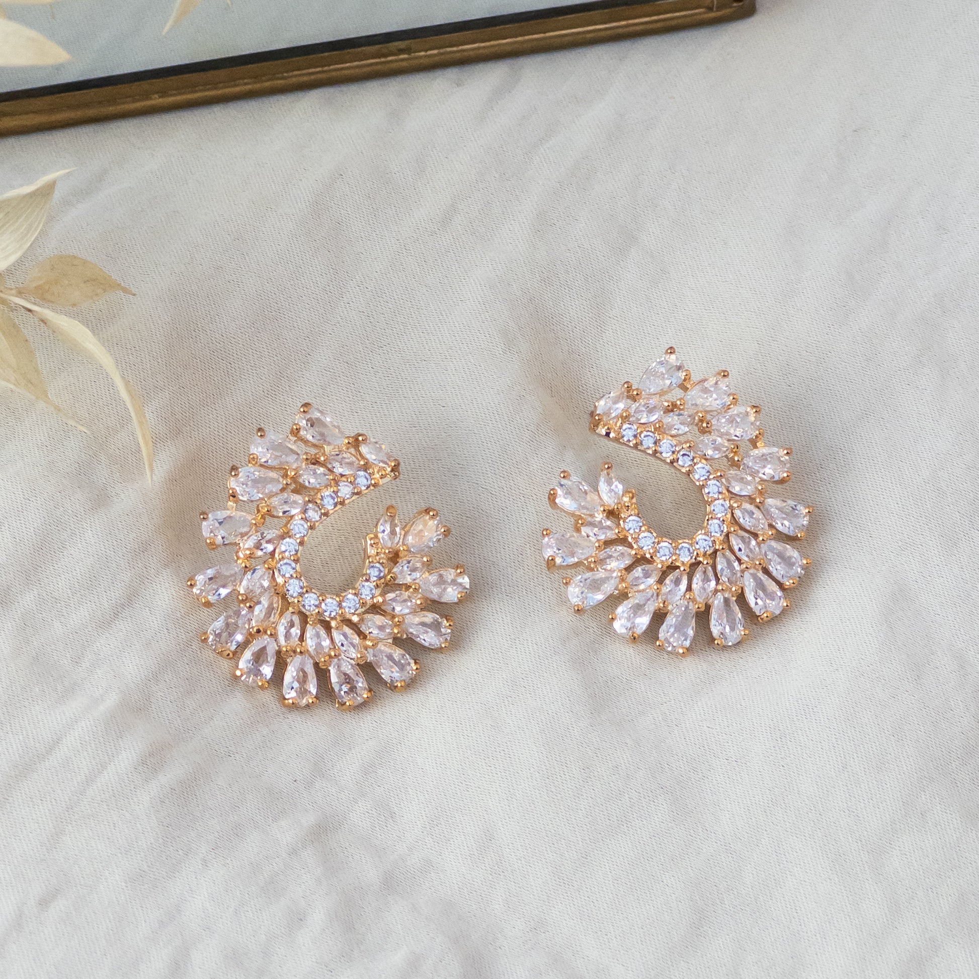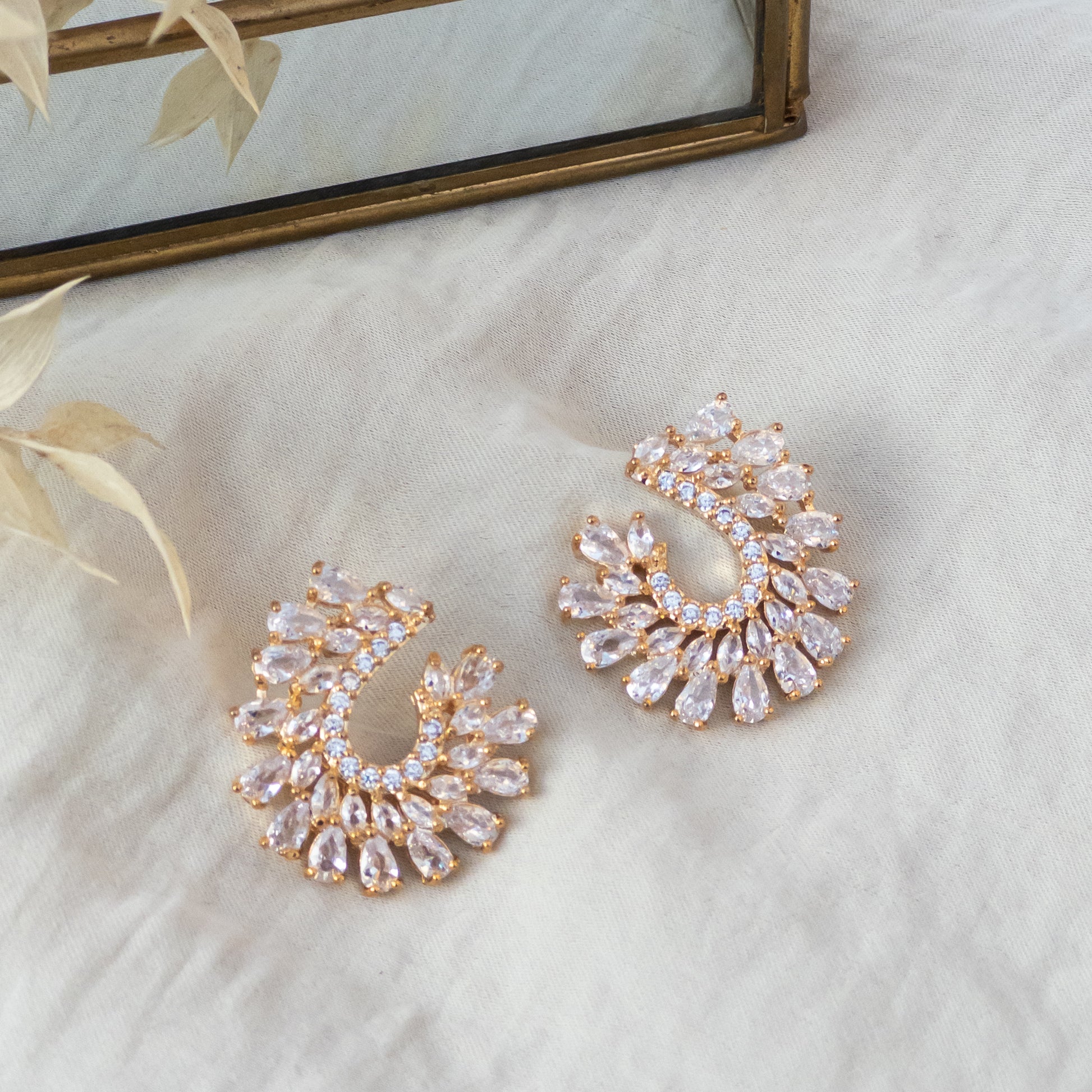 - Cercei din metal placat cu aur, cu cristale de zirconiu aplicate.