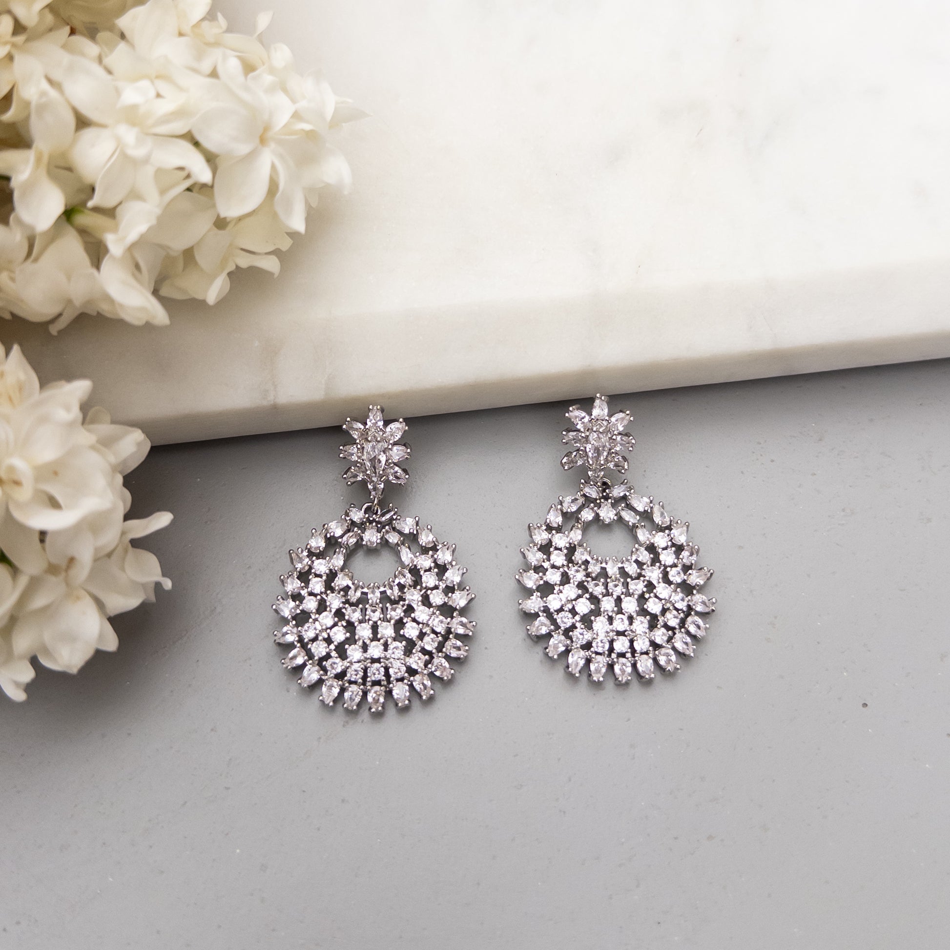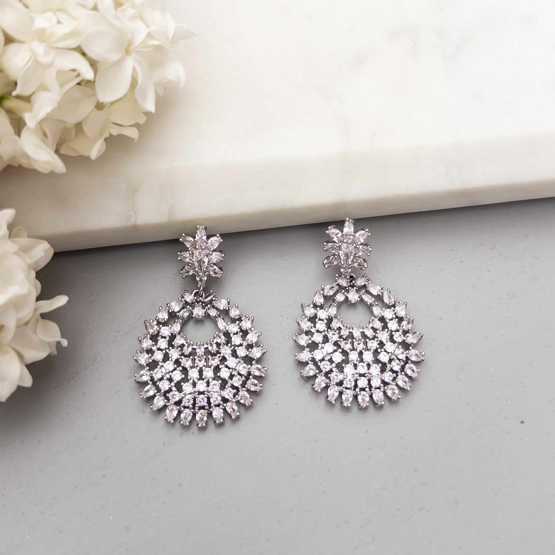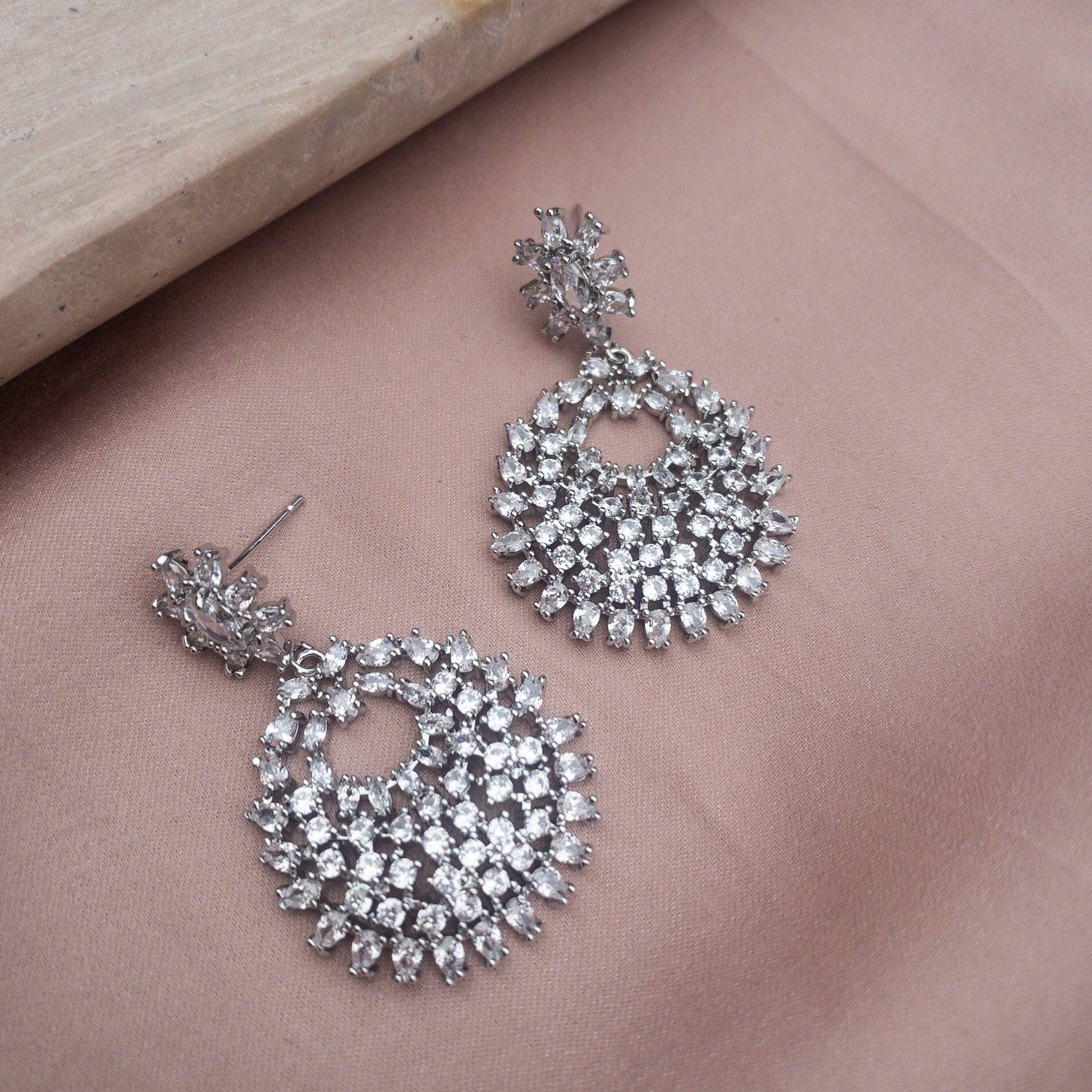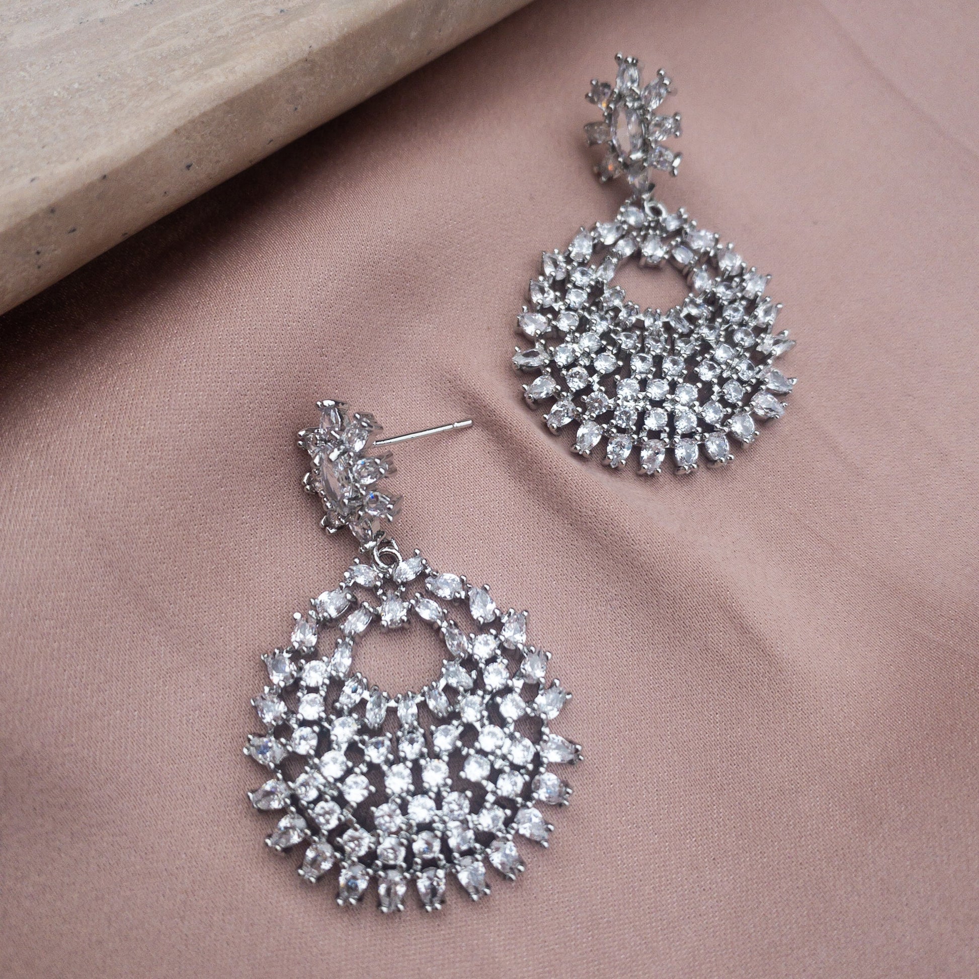 - Cercei fabricati din cupru, cu cristale de zirconiu aplicate.