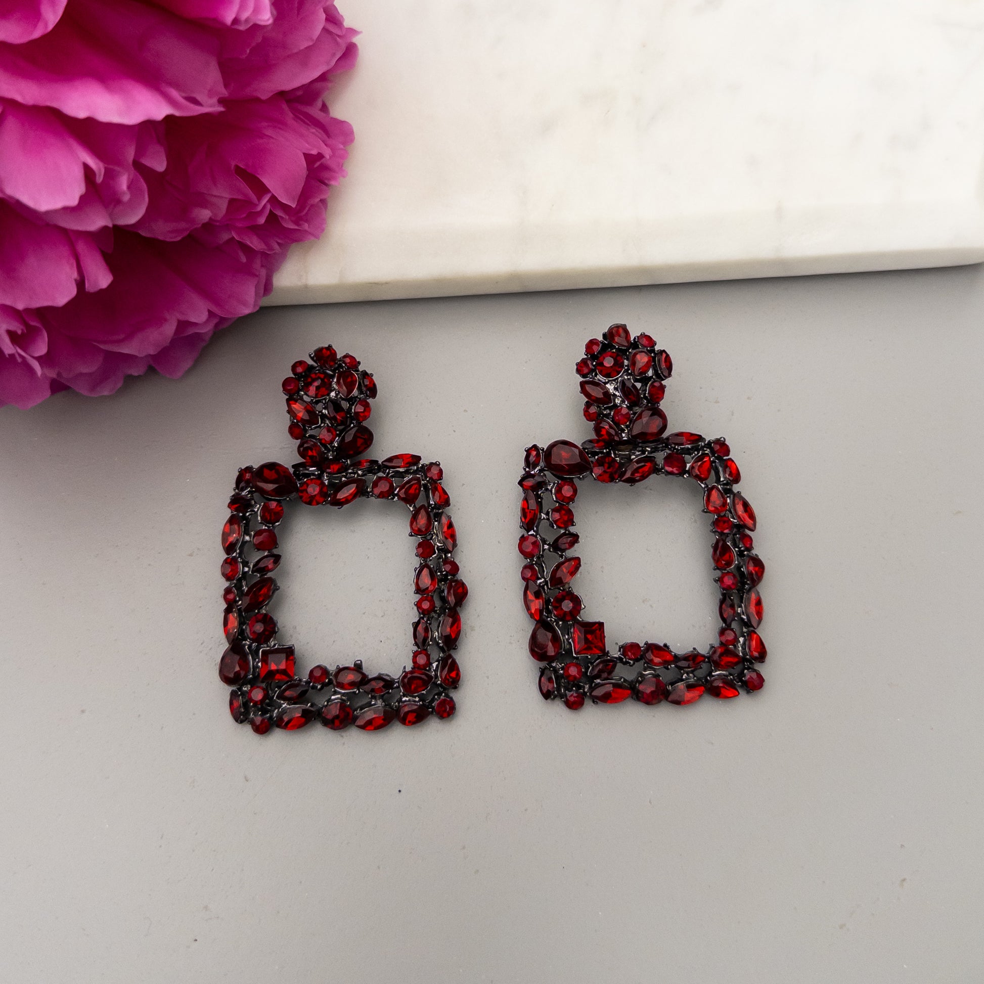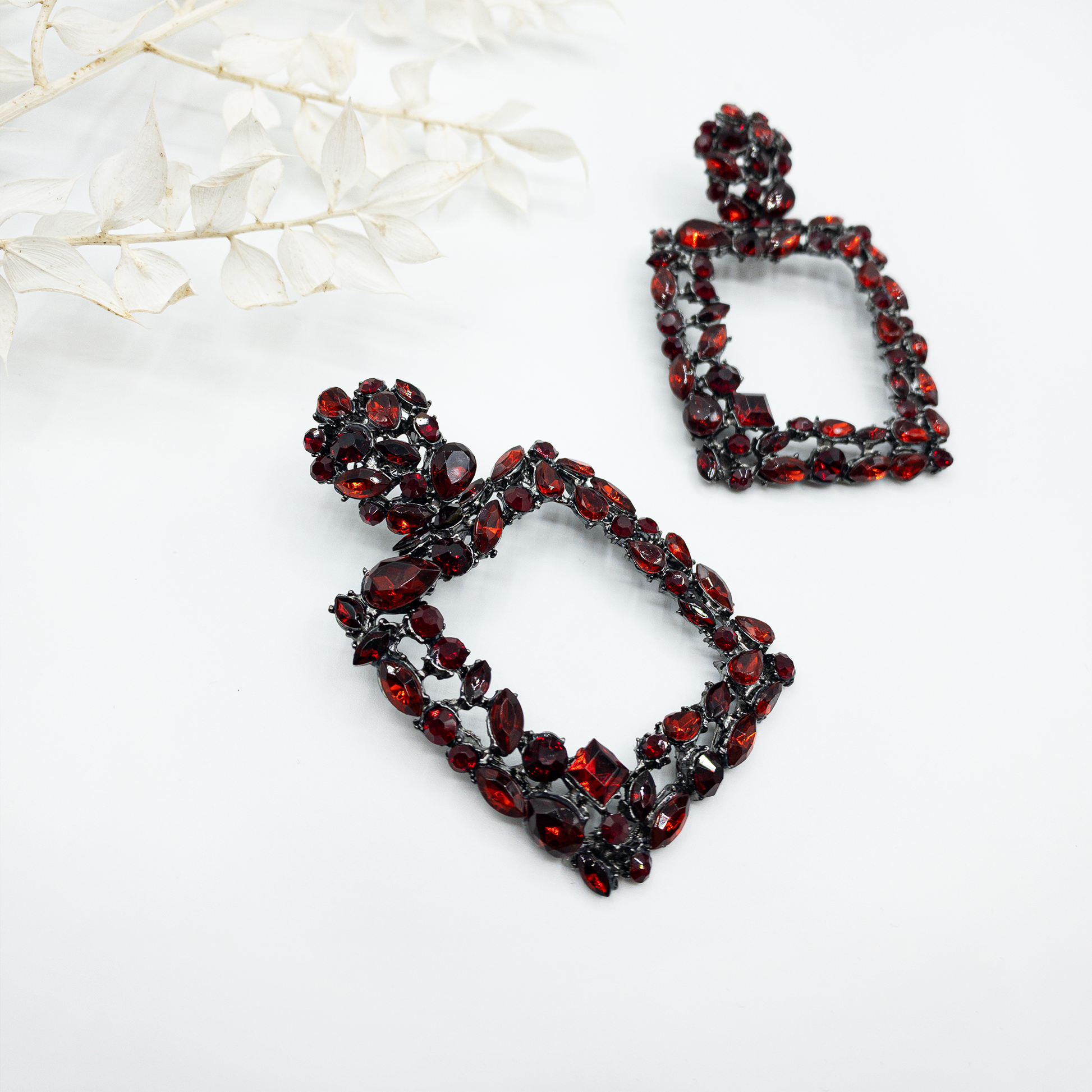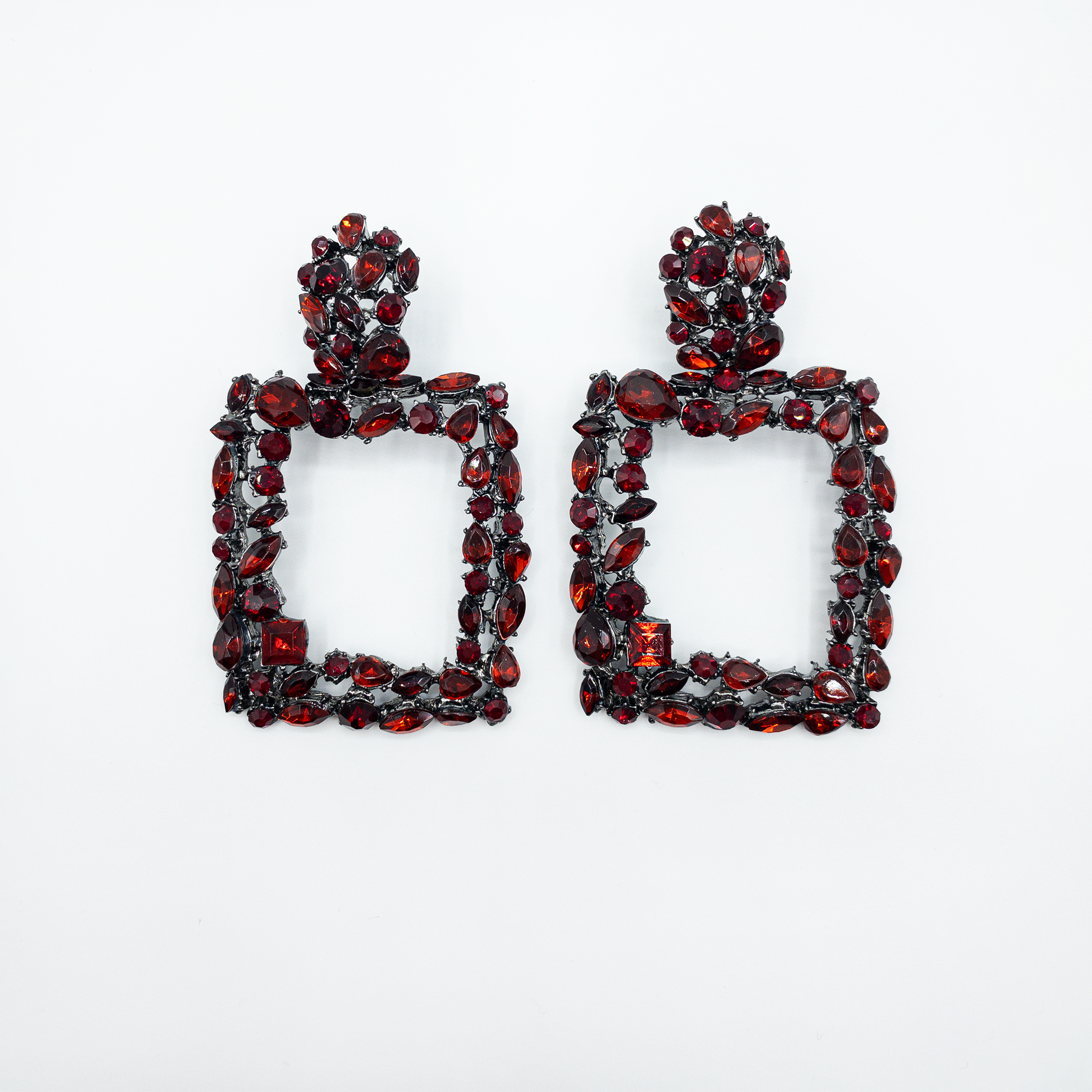 - Cercei din metal cu cristale de sticla aplicate, aliaj zinc, fara nichel.