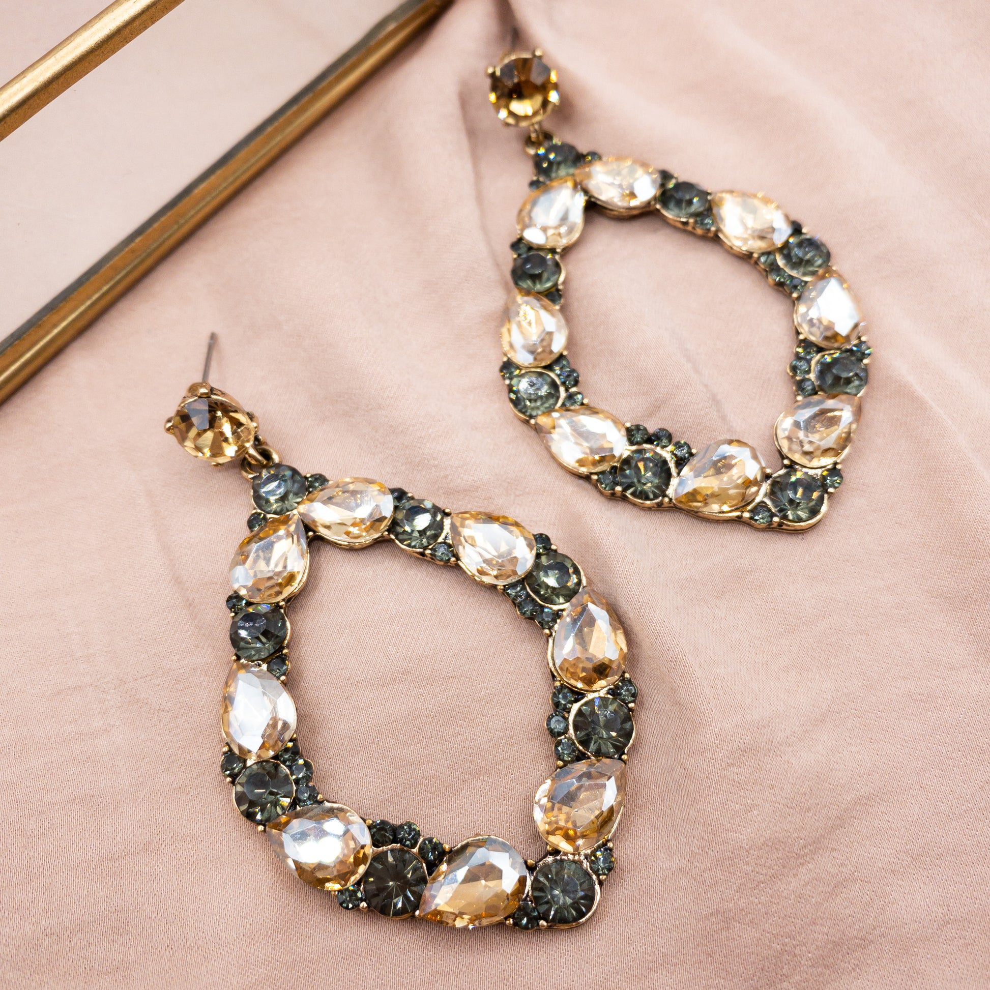- Cercei fabricati din metal, cu cristale de sticla aplicate, aliaj zinc, fara nichel.