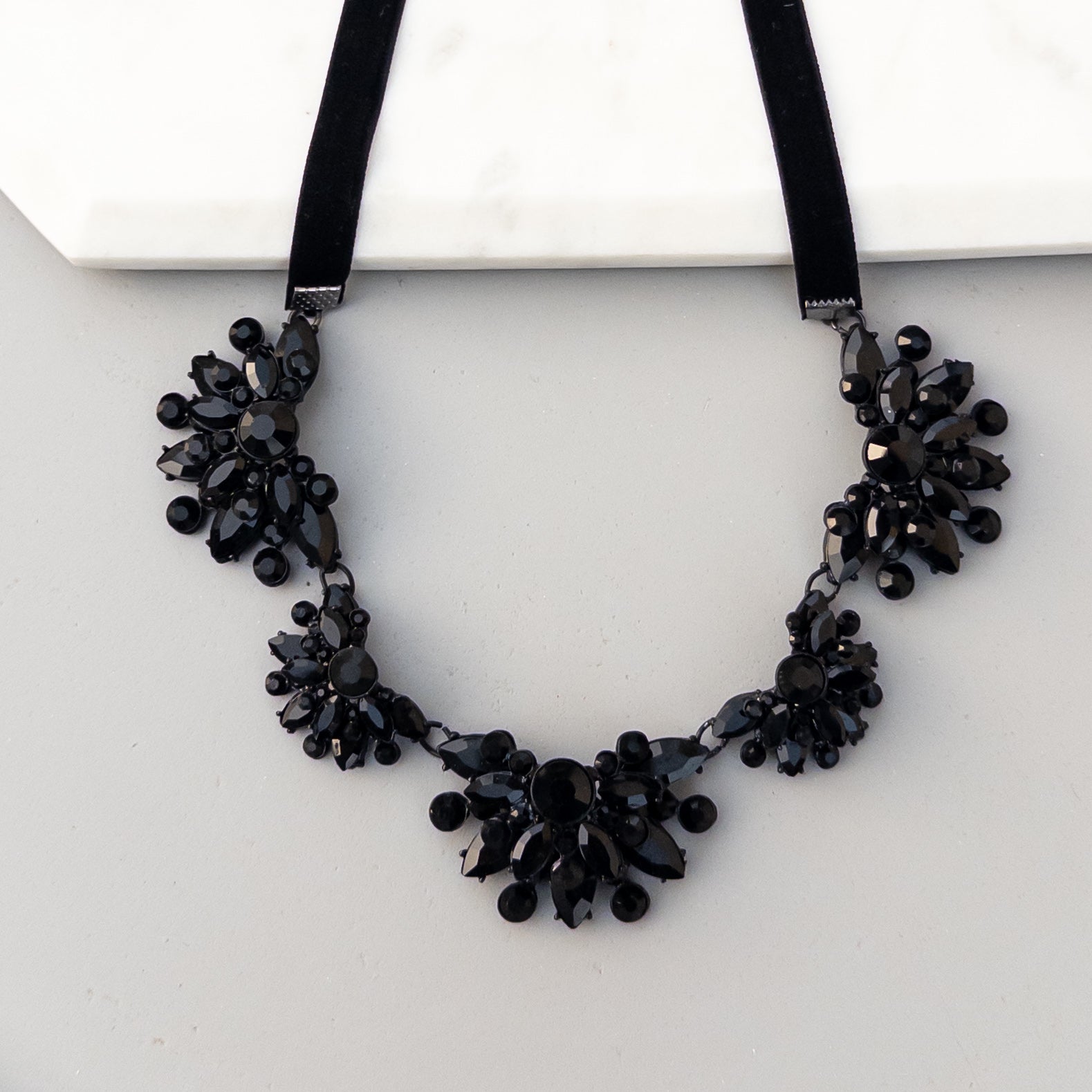 - Colier fabricat din metal, cu cristale de sticla aplicate și material textil.