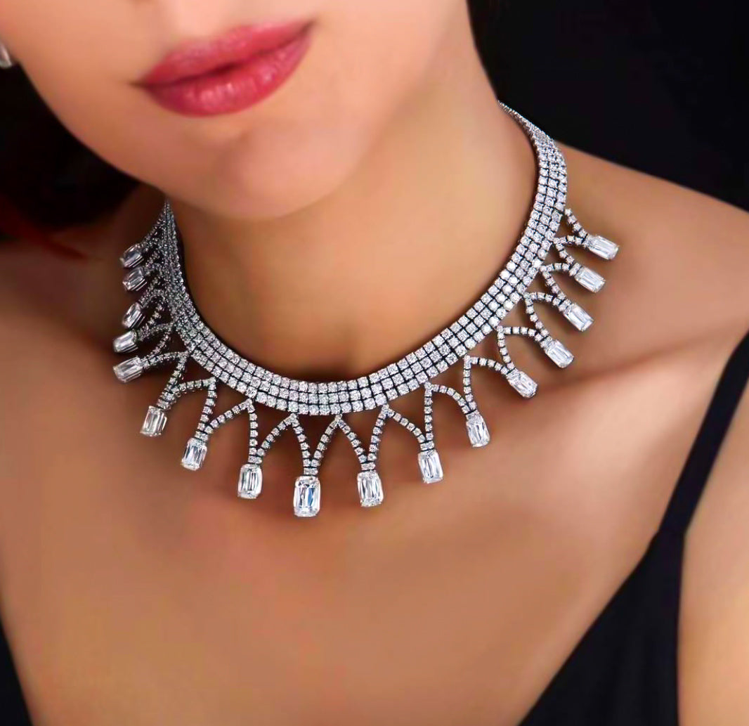 - Colier fabricat din metal, cu cristale de sticla aplicate.
