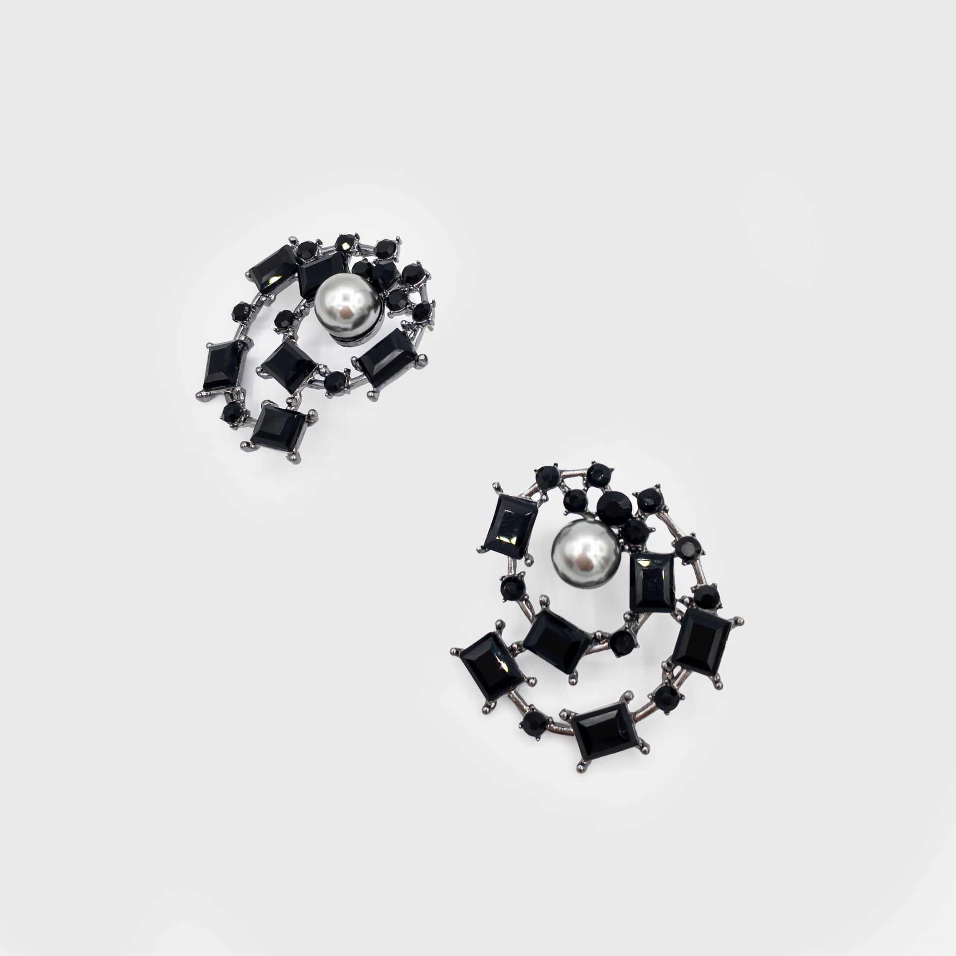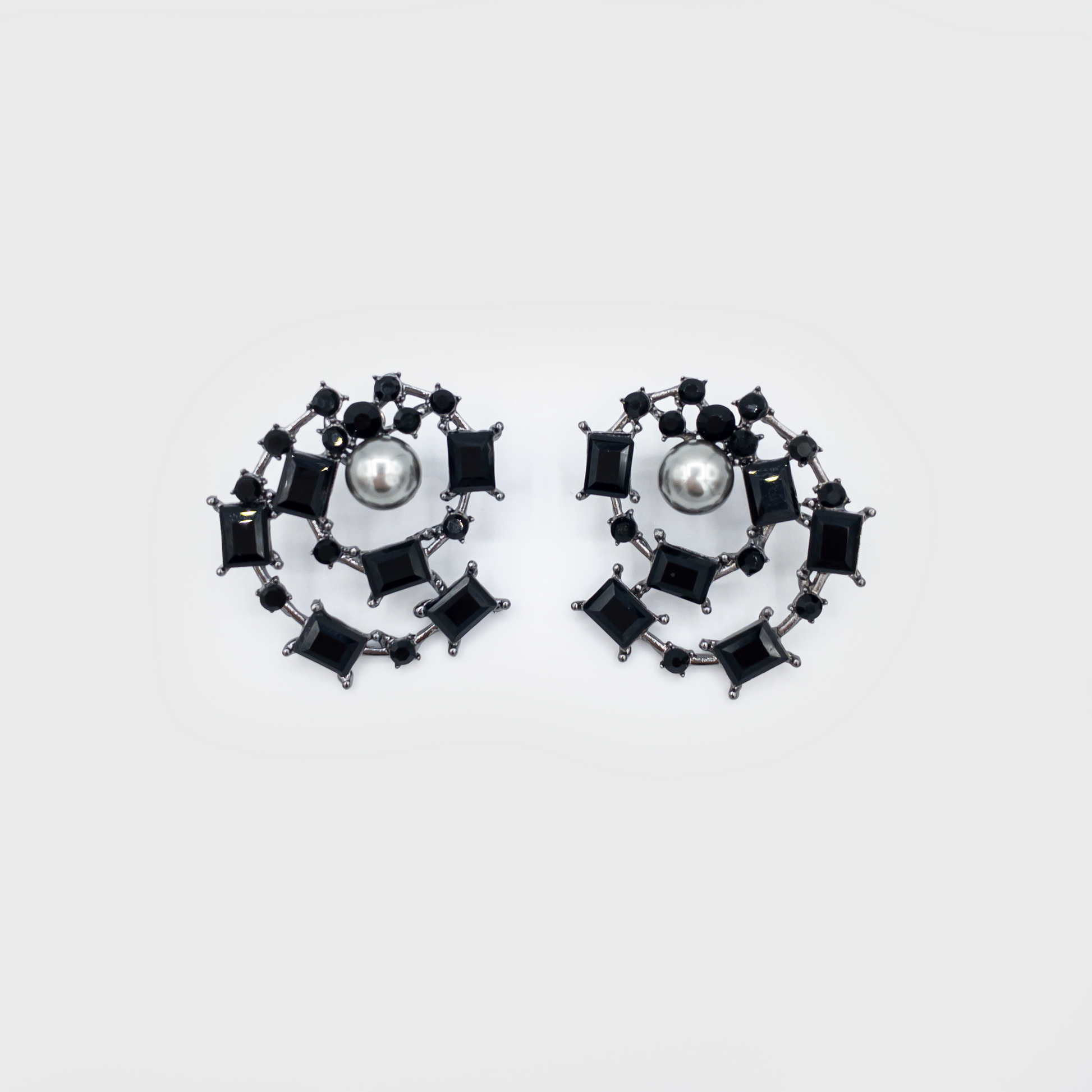 - Cercei din metal cu perla sintetica si cristale de sticla negre