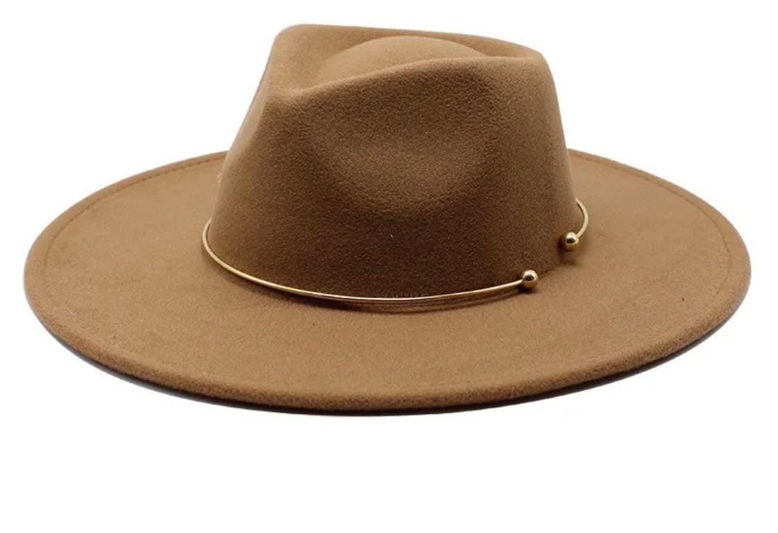 - Pălărie stil Fedora, cu accesoriu decorativ aplicat.