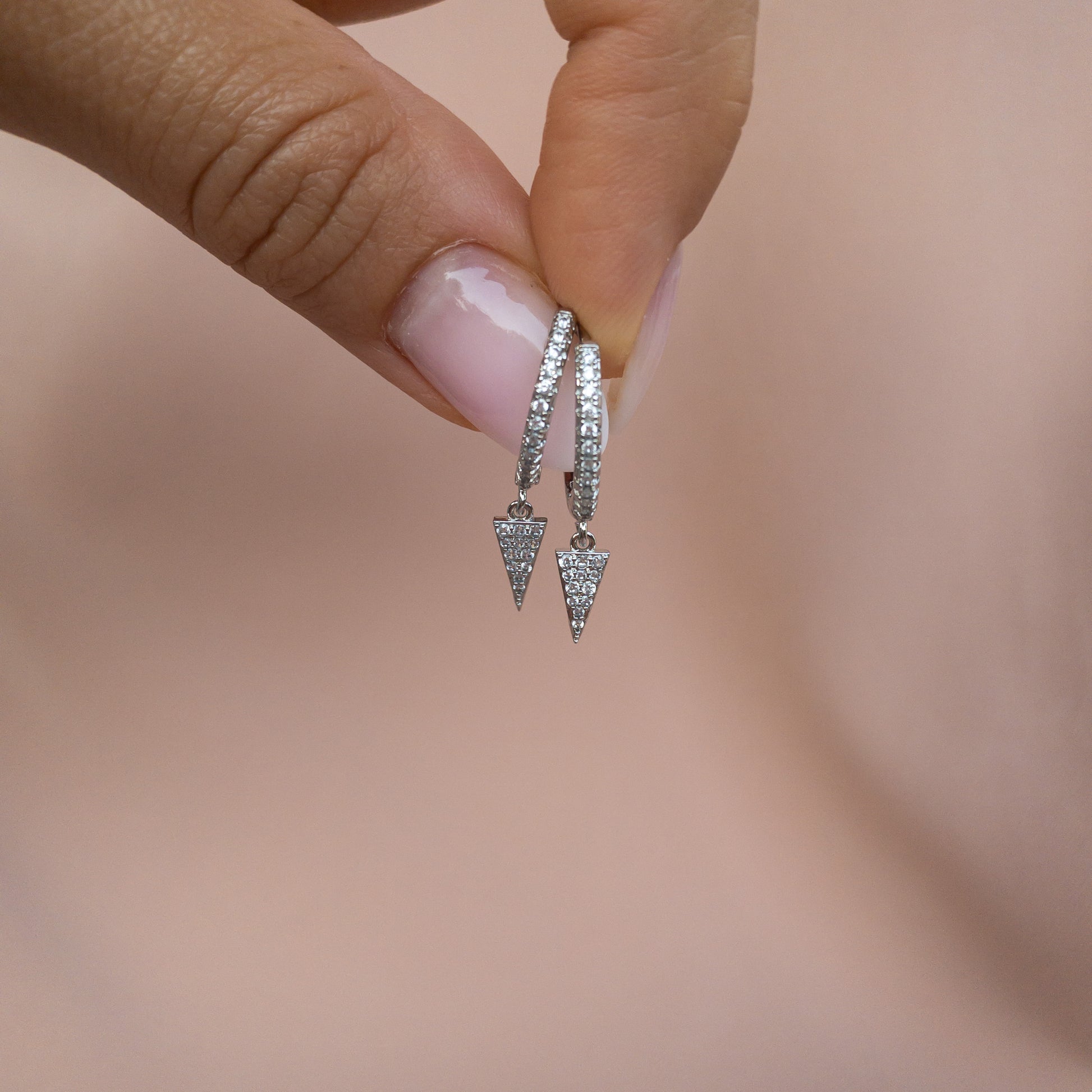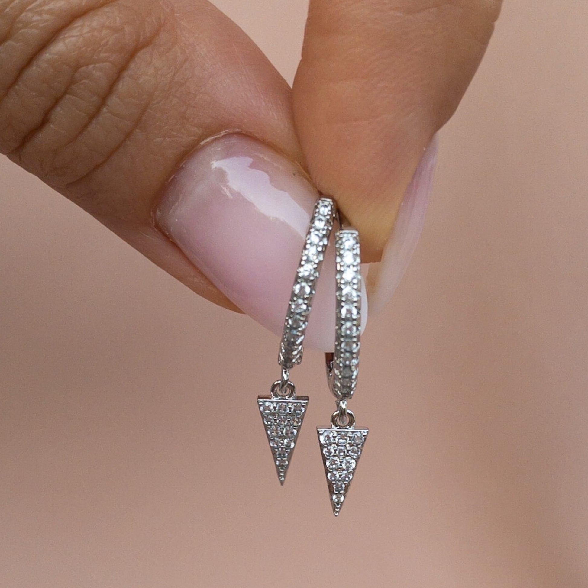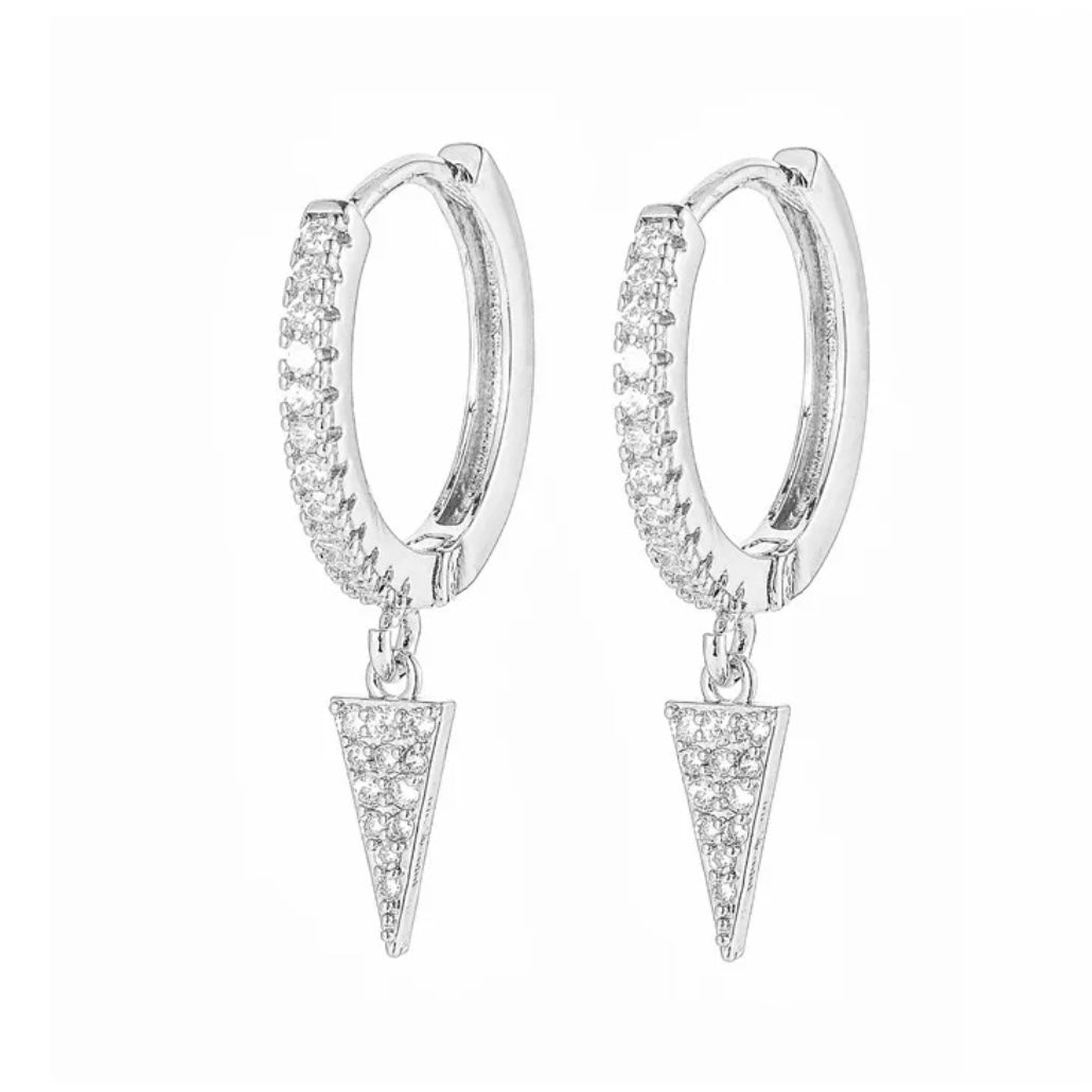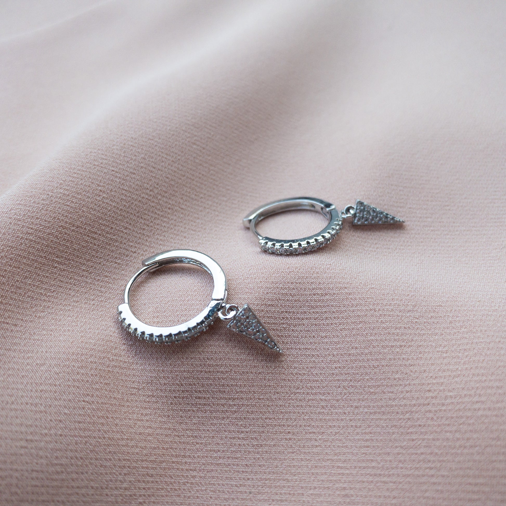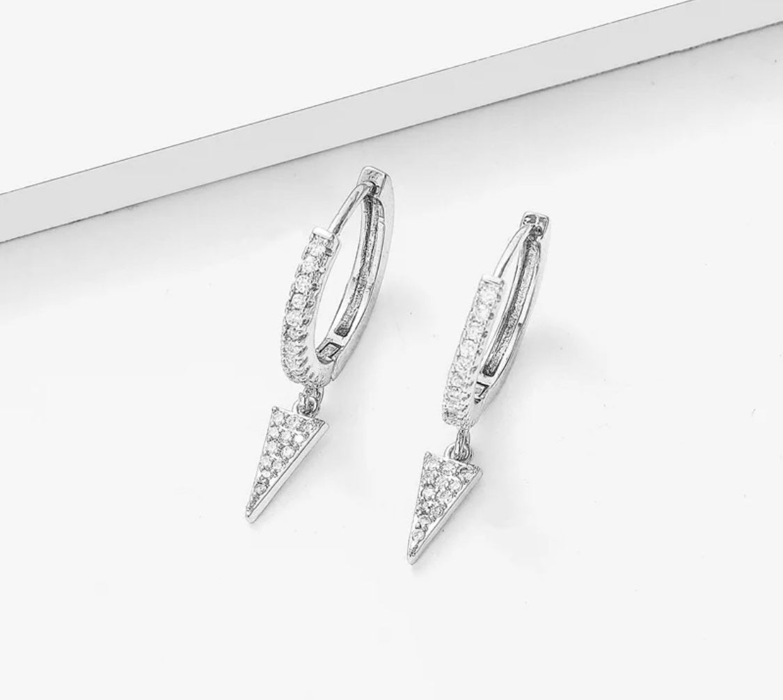 - Cercei fabricati din cupru, placat cu rodiu, cu cristale de zirconiu aplicate.