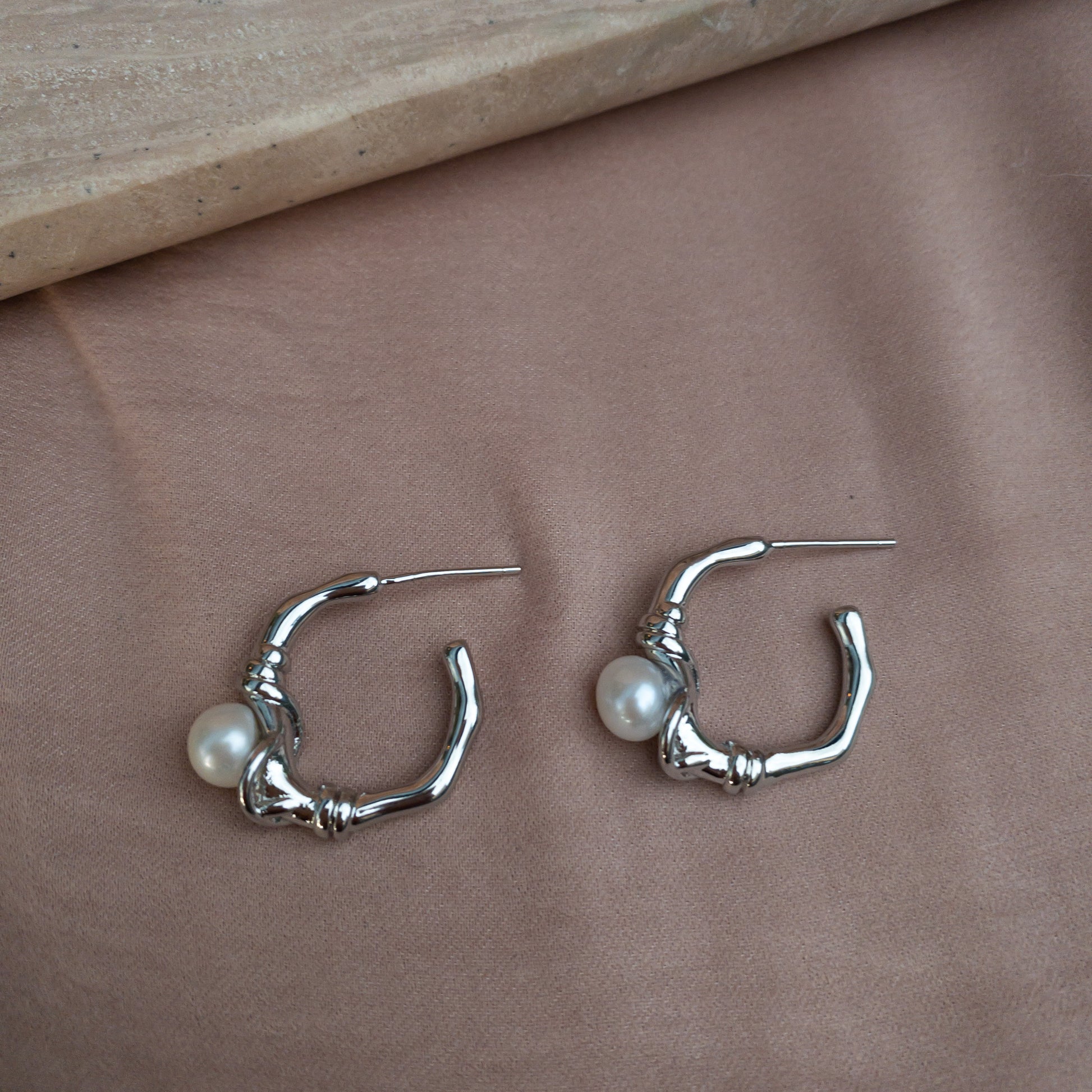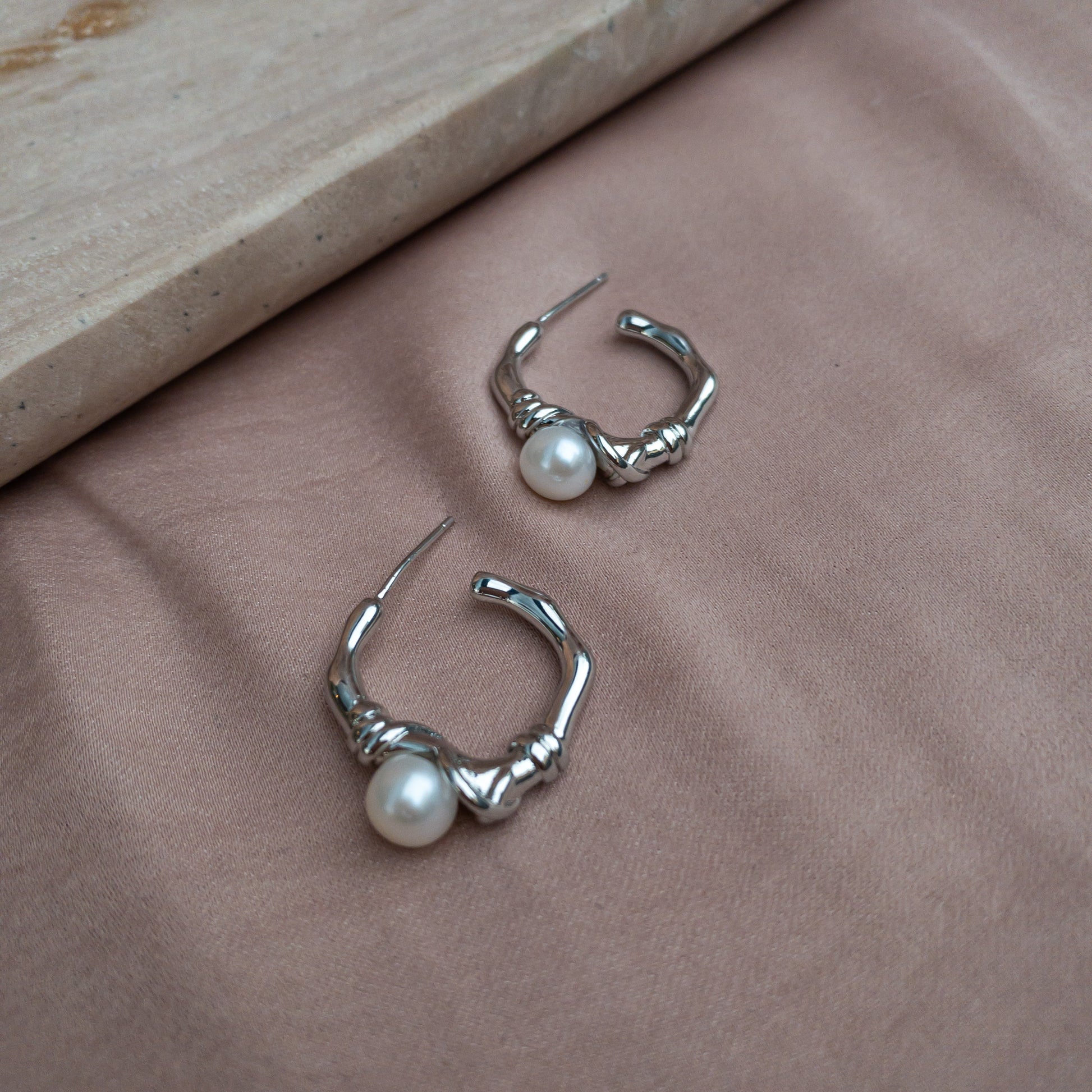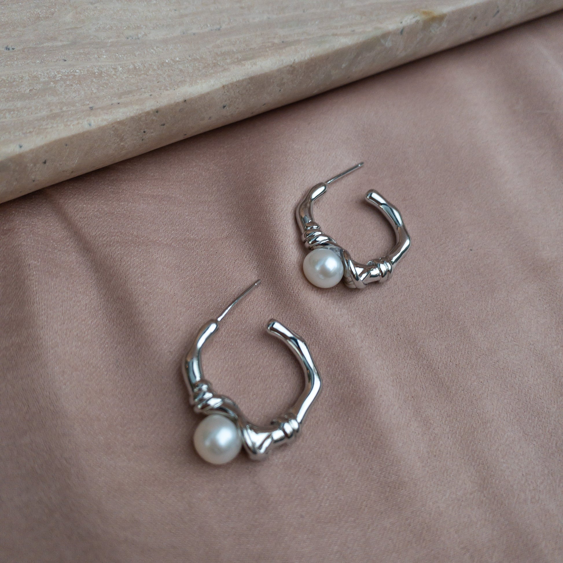 - Cercei fabricati din cupru, placati cu rodiu, cu perle aplicate.