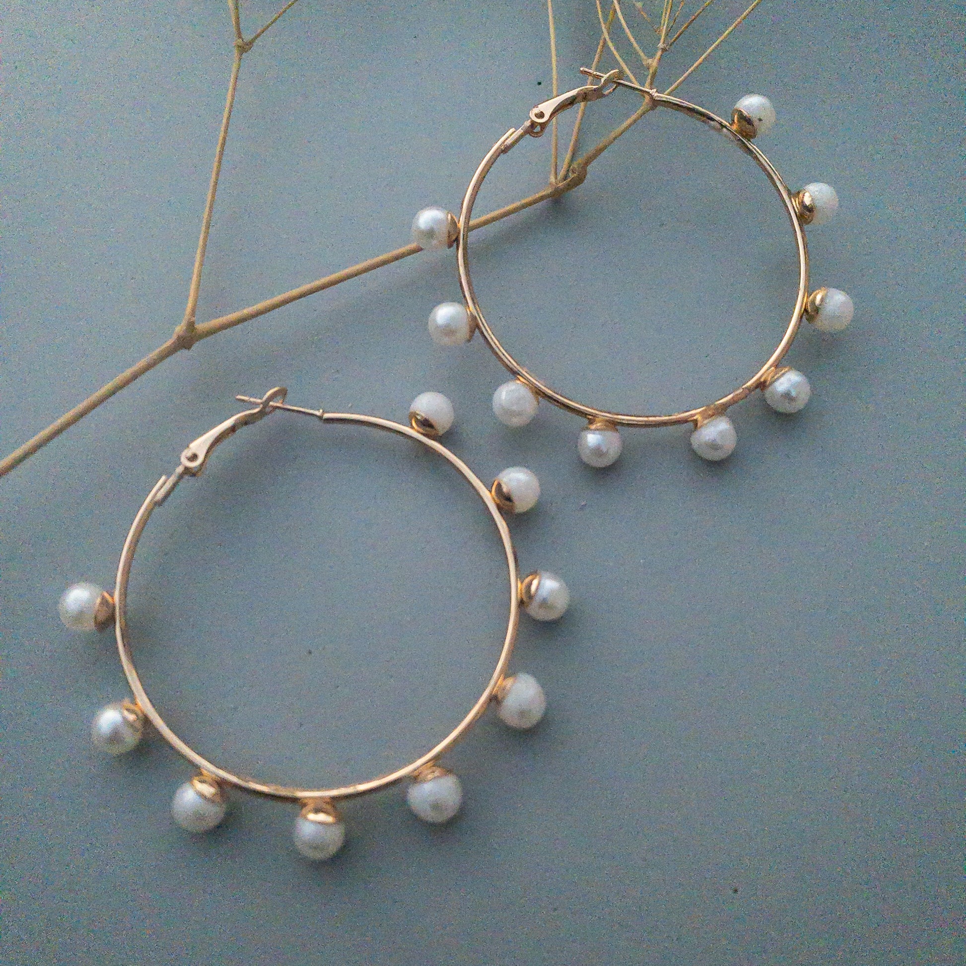 - Cercei fabricati din metal, cu perle sintetice aplicate.